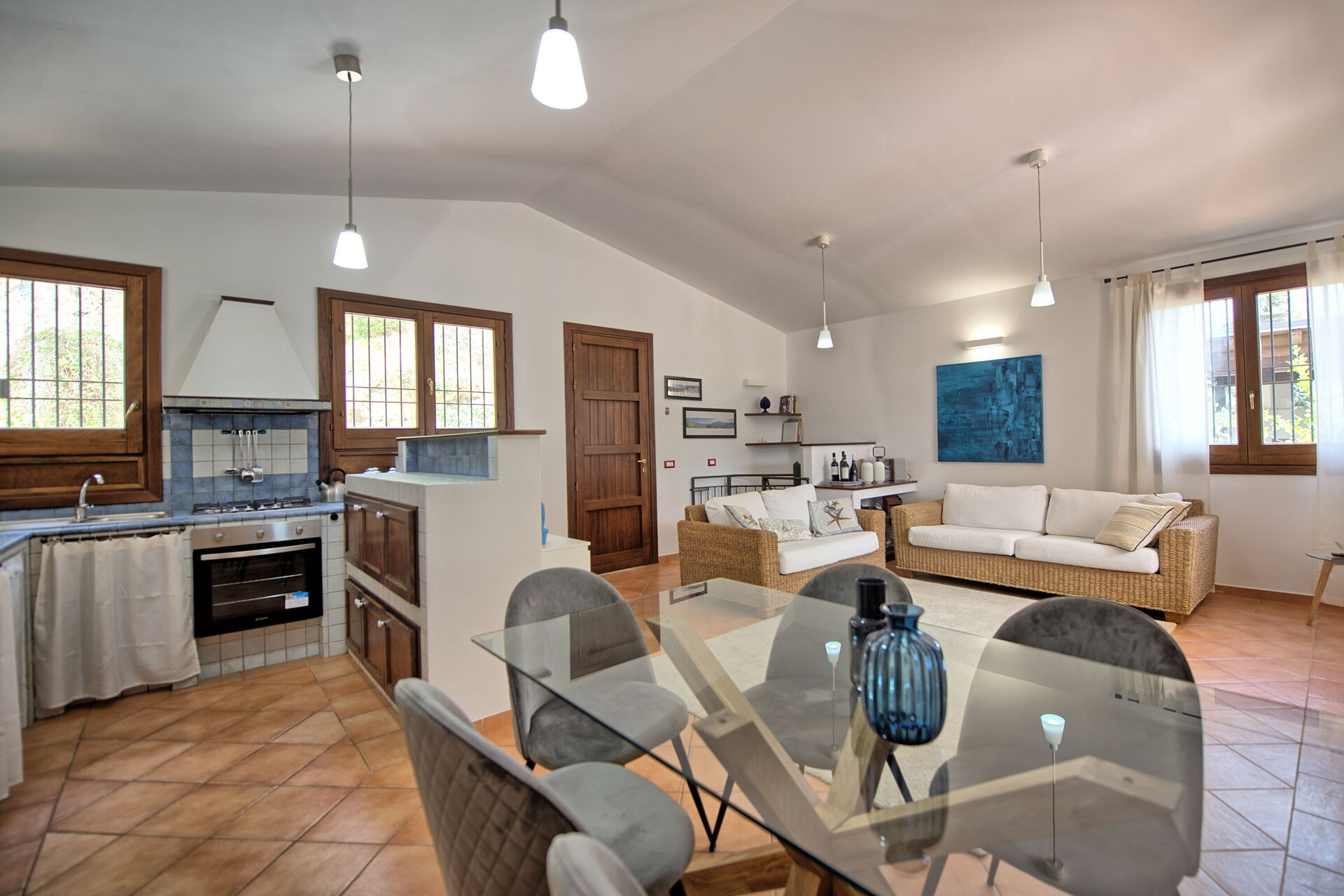 Deze mooie vakantievilla op Sicilië heeft ruime gemeenschappelijke ruimtes binnen en buiten, 3 slaapkamers en een slaapbank, voor maximaal 6/8 personen.