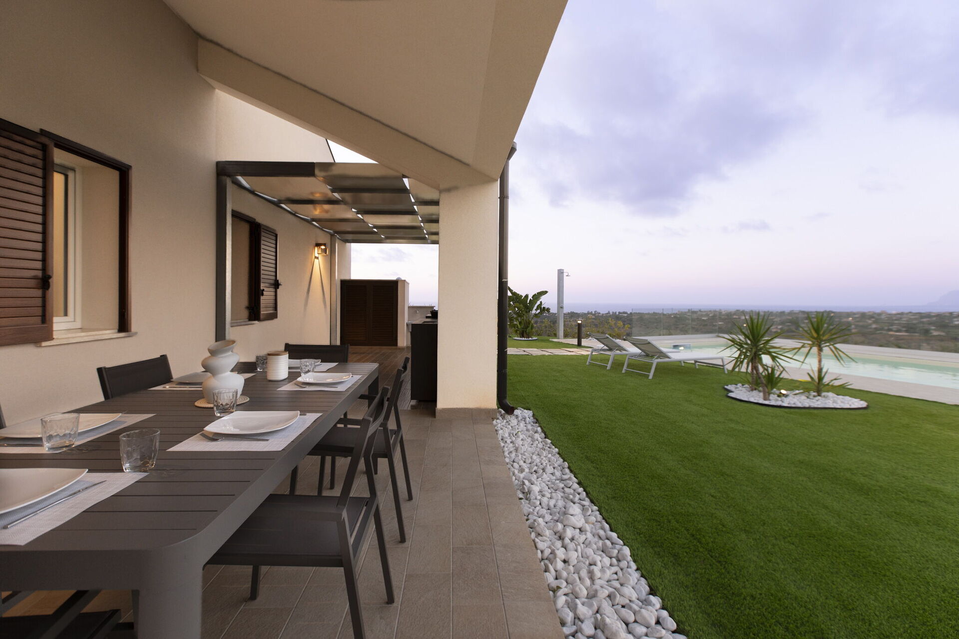 Mooi vakantiehuis met privézwembad aan de noordwestkust van Sicilië, slechts enkele kilometers van het kustplaatsje Castellammare del Golfo. Villa Aversa heeft een spectaculaire ligging met een prachtig uitzicht over de baai van Castellammare vanaf het zwembad en de grote terrassen. De renovatie van deze fantastische villa werd voltooid in augustus 2025: het huis is modern en praktisch ingericht, en voorzien van alle gemakken. Het vakantiehuis beslaat twee verdiepingen met een licht en uitnodigend interieur; gemeenschappelijke ruimtes binnen en buiten; en 5 slaapkamers met plaats voor maximaal 10 personen. Grote buitenruimtes, zoals het zonneterras bij het zwembad, staan ter beschikking van de gasten om in volledige privacy te ontspannen samen met vrienden of familie. De veranda is ingericht met tafel en stoelen zodat men buiten kan dineren met het schitterende uitzicht. Dankzij de strategische ligging van Villa Aversa zijn talrijke stranden eenvoudig te bereiken, zoals het nabijgelegen strand van Guidaloca; steden langs de noordkust van Sicilië zoals Castellammare del Golfo, Scopello met zijn beroemde rotszuilen in zee, San Vito lo Capo en het natuurreservaat Zingaro. Steden zoals Palermo en Trapani; het middeleeuwse stadje Erice (aan de westkust van het eiland); en de wereldberoemde Griekse tempel van Segesta zijn eveneens gemakkelijk per auto bereikbaar.