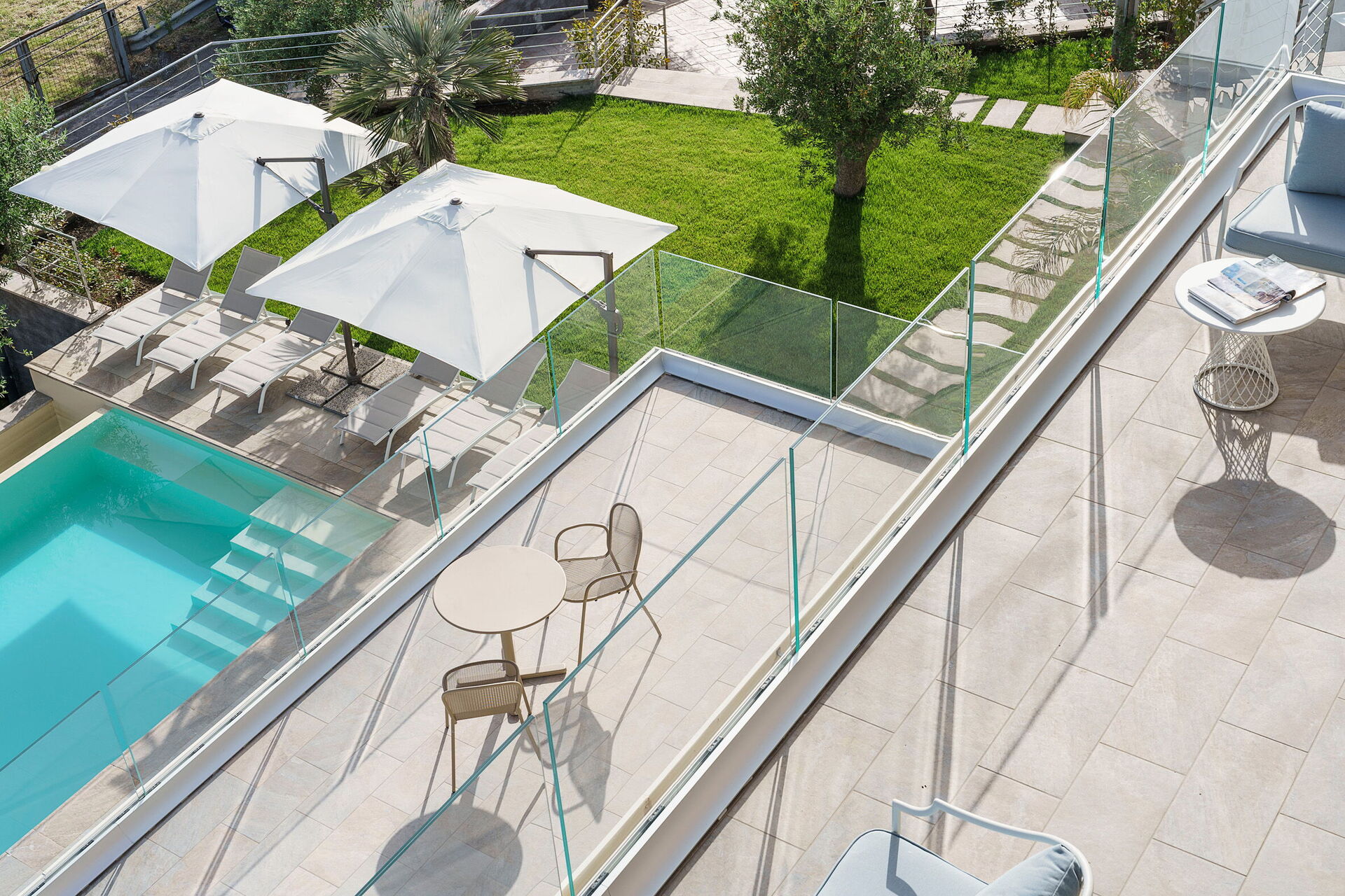 Er zijn veel buitenruimtes met een panoramisch uitzicht waar gasten kunnen genieten van tijd met familie of vrienden. Ontspan in de Siciliaanse zon op de schilderachtige terrassen, of bij het grote zwembad met uitzicht op zee.