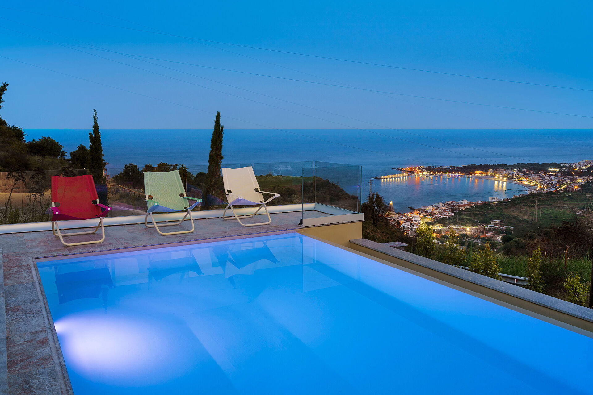 Deze exclusieve vakantievilla op Sicilië ligt op een schilderachtige plek met een adembenemend uitzicht op de zee en de baai van Taormina, zowel vanaf het zwembad als vanaf de ruime terrassen.