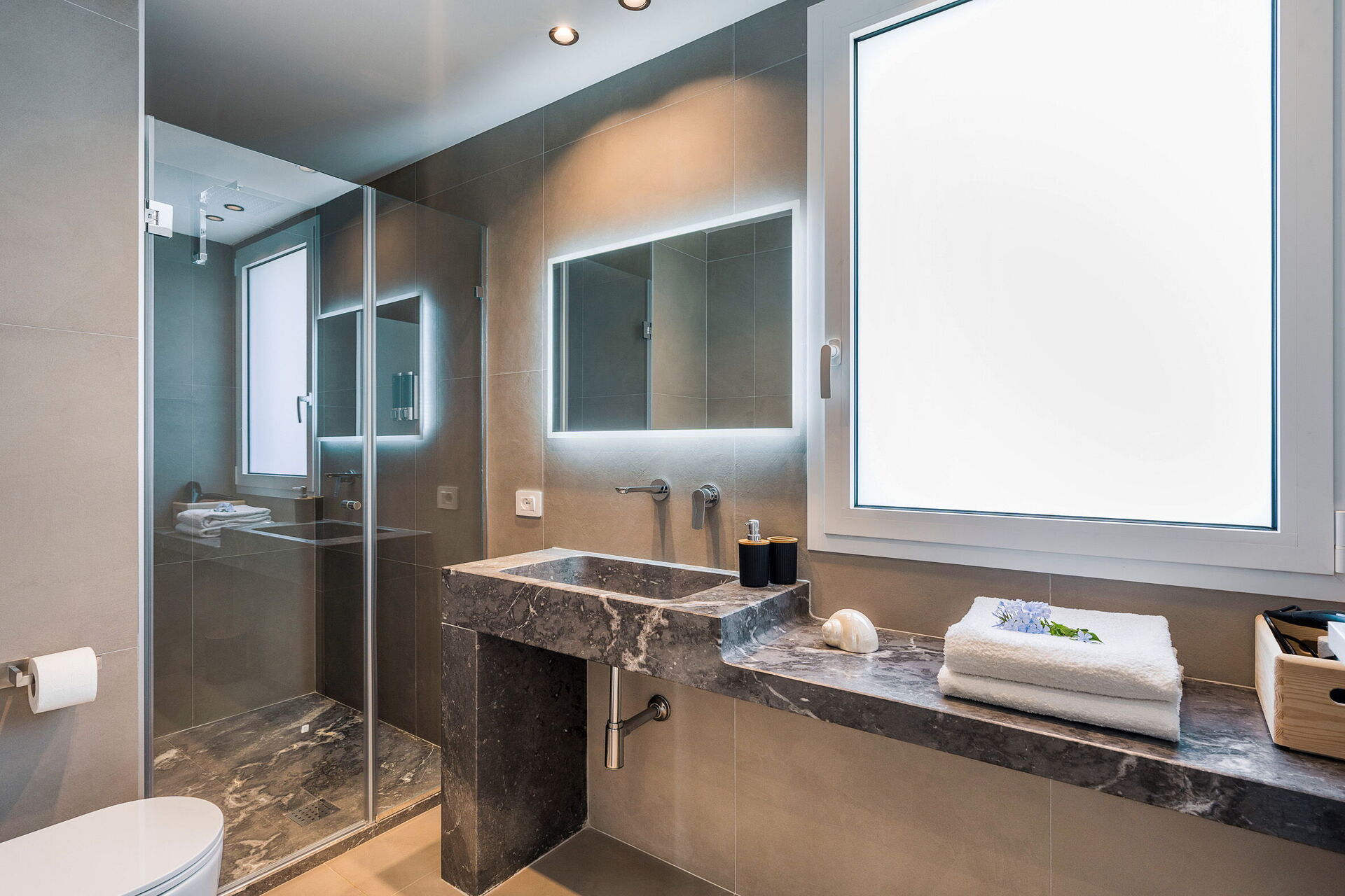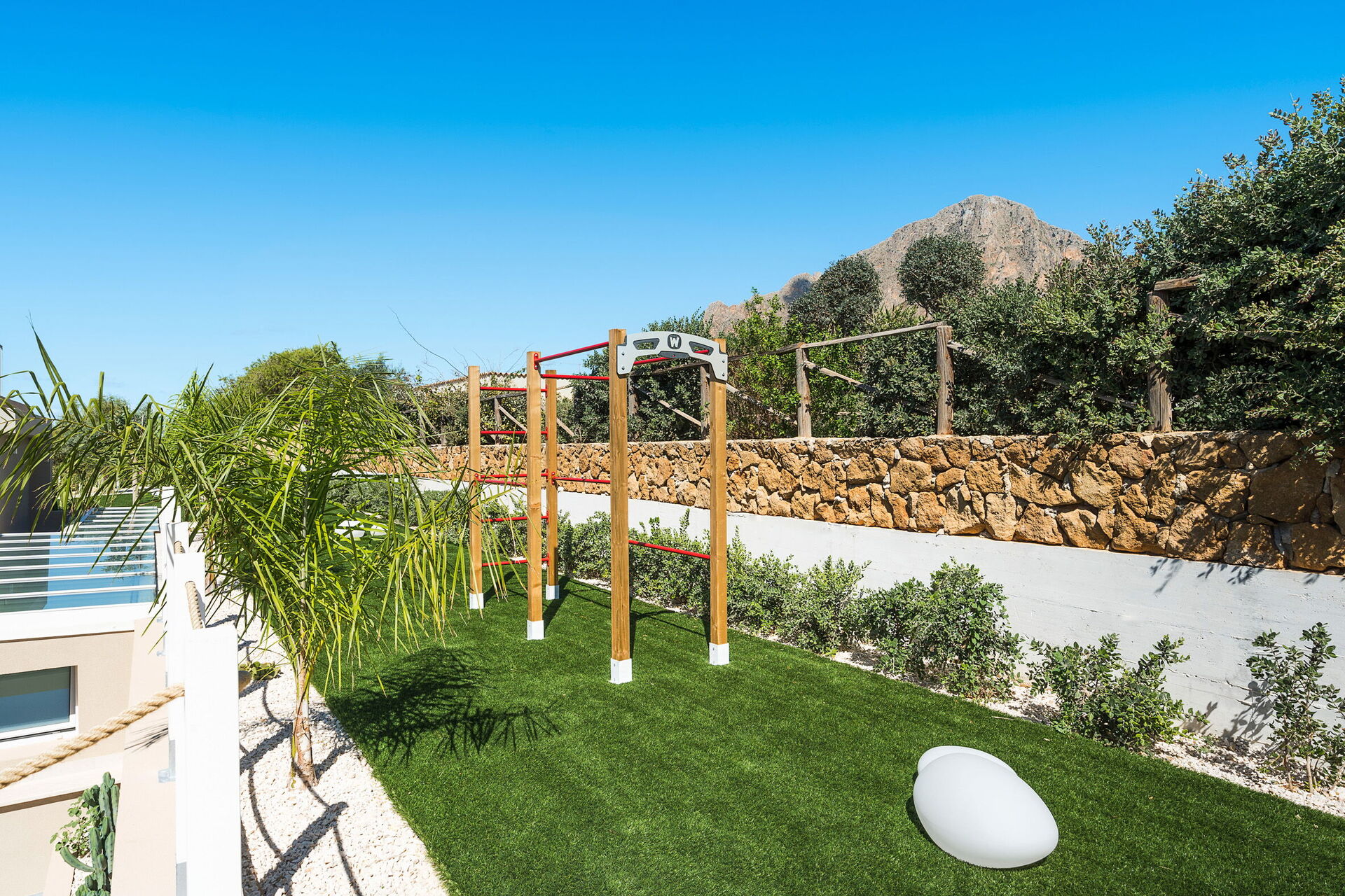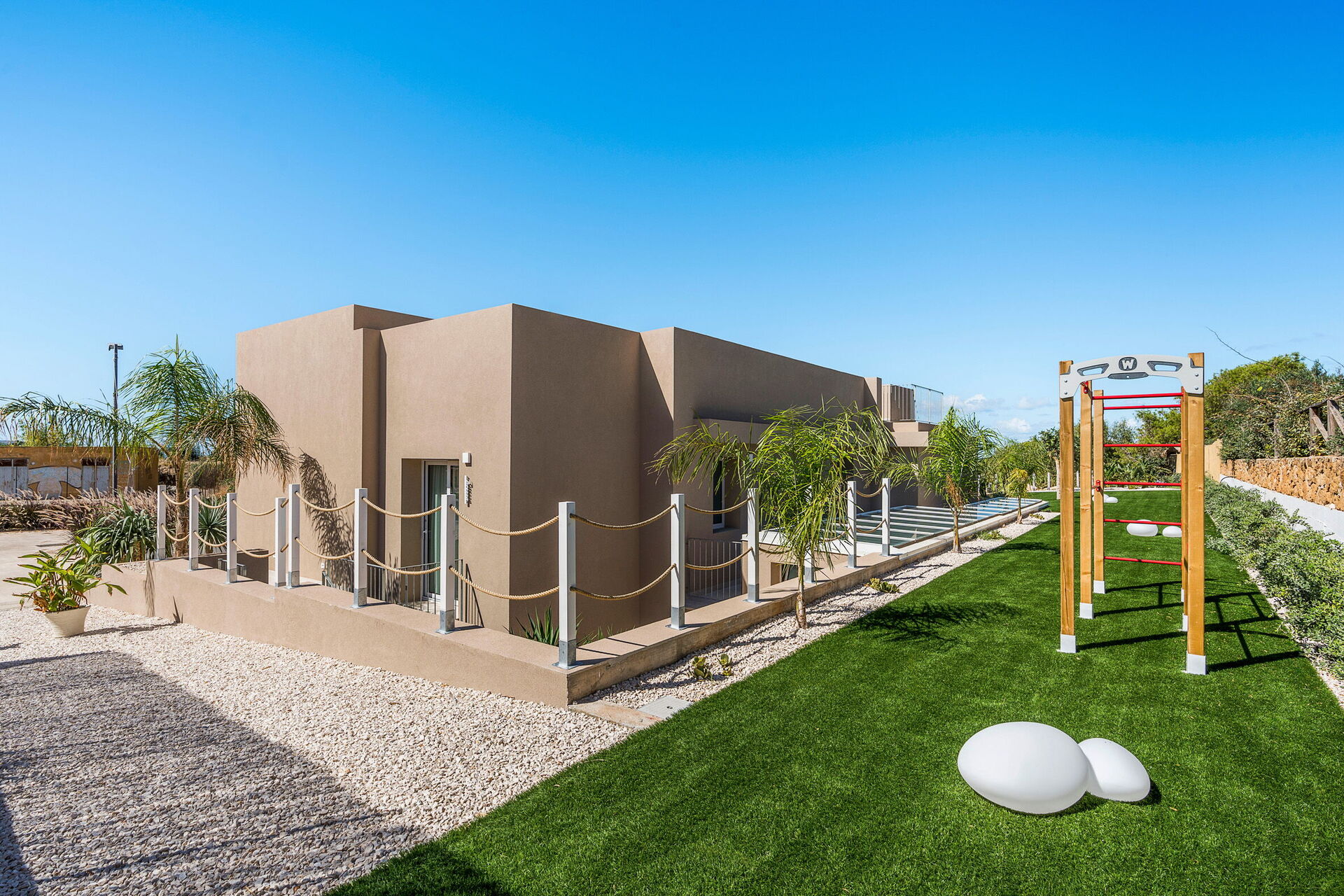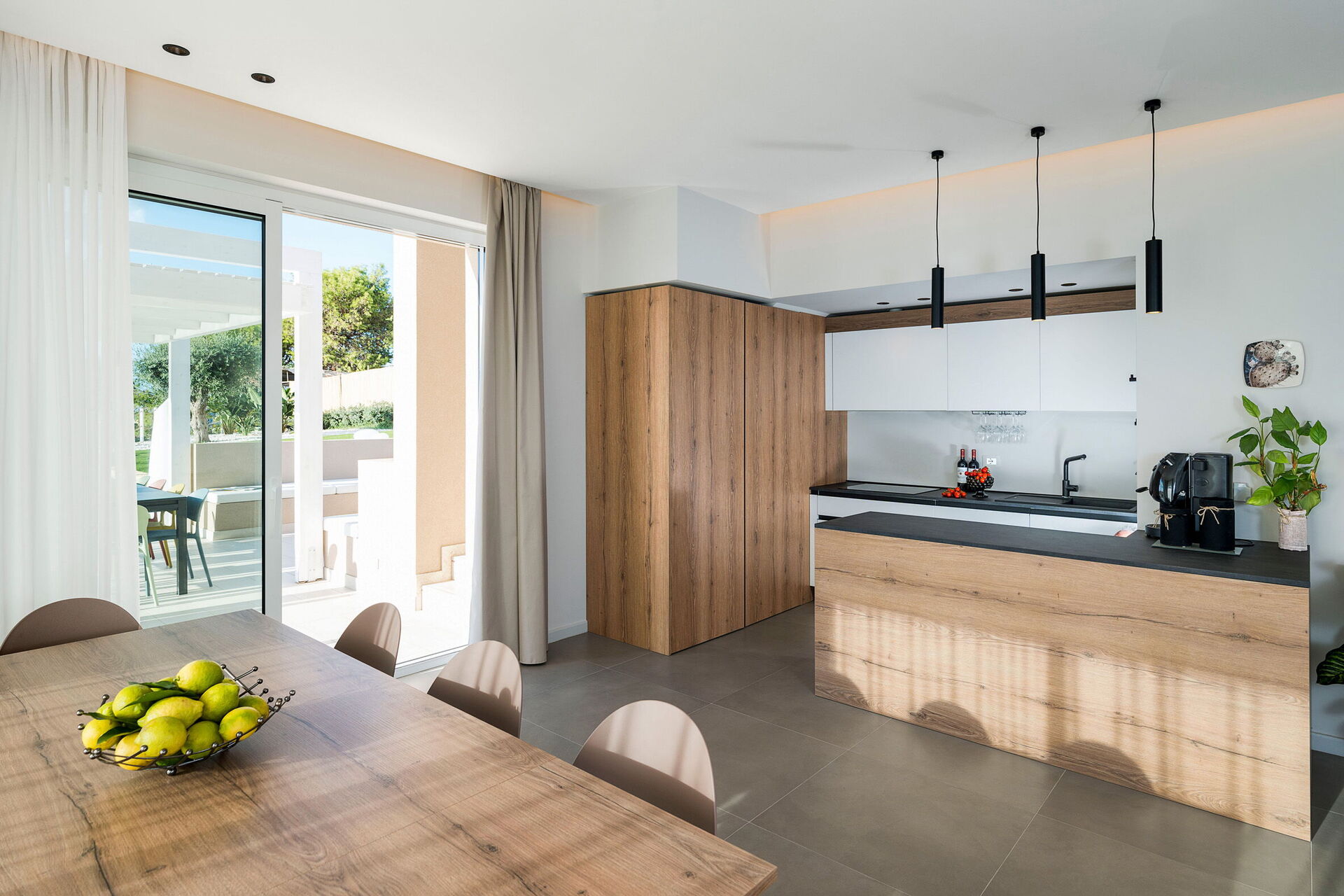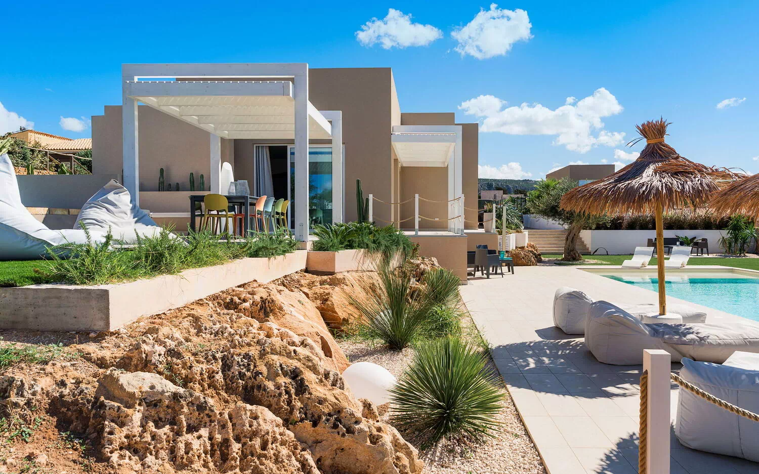 De schilderachtige buitenruimtes bieden voldoende plekken om tijd door te brengen met uw familie of vrienden, of u nu buiten eet of ontspant bij het zwembad en de ligweide. Gasten hebben ook de beschikking over een buitenjacuzzi op het terras, met een panoramisch uitzicht op de zee en de zonsondergang.