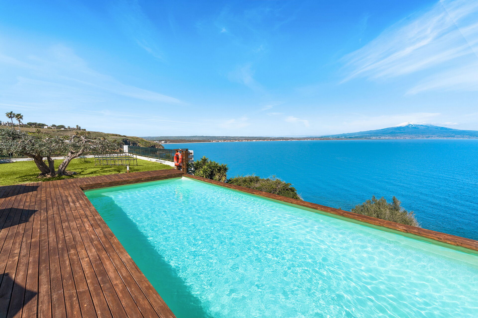 Deze vakantiewoning ligt tussen Catania en Syracuse, langs de oostkust van Sicilië. Gelegen op een klif boven de zee, biedt de villa absolute rust en een spectaculair uitzicht op de zee en de Etna.