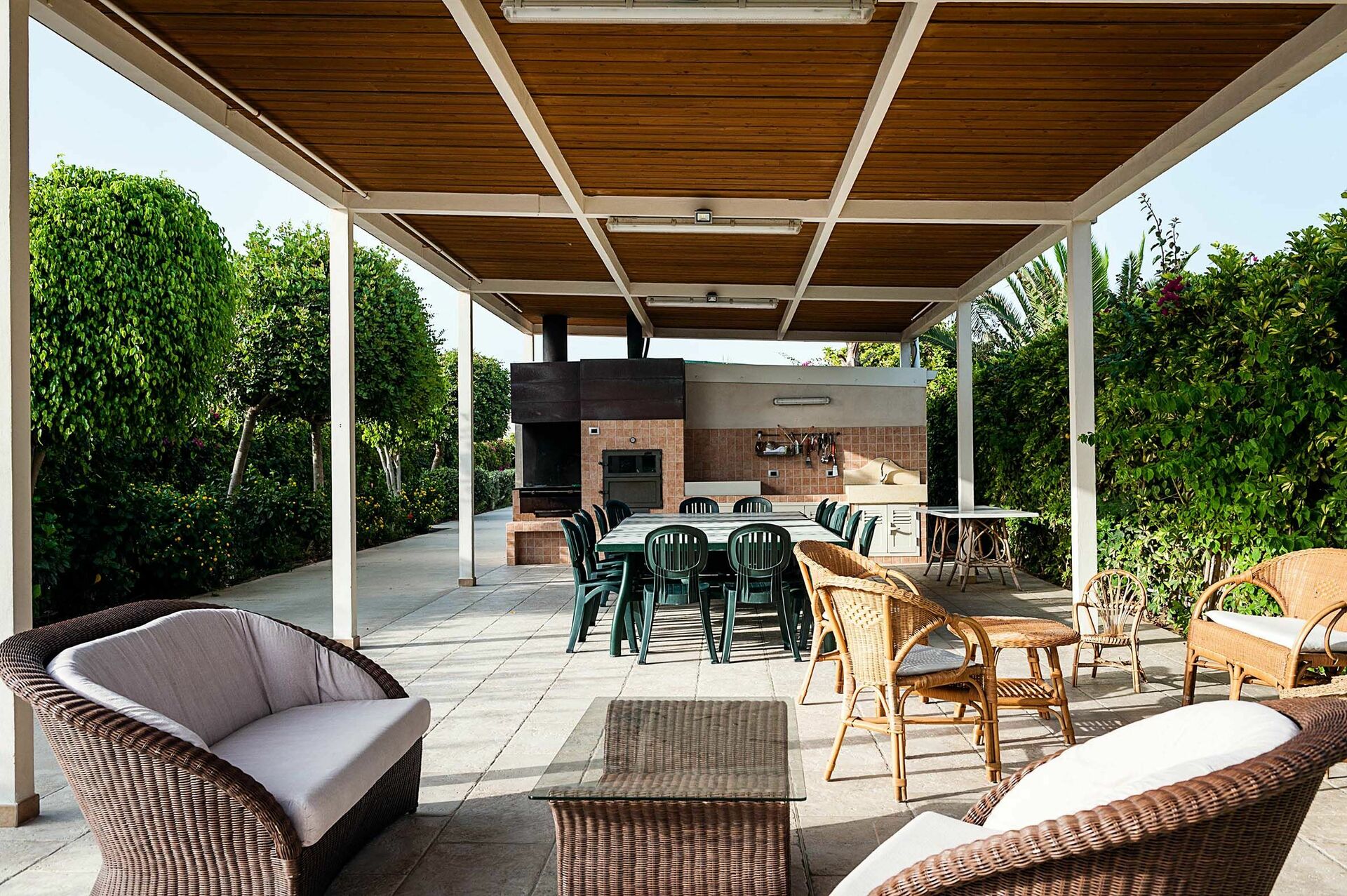 De appartementen, elk voor vier personen, hebben directe toegang tot het strand en een eigen terras met uitzicht op de zee. Aan de achterzijde van de villa is er ook een groot terras, gedeeld met de andere gasten, uitgerust met buitenkeuken en barbecue.