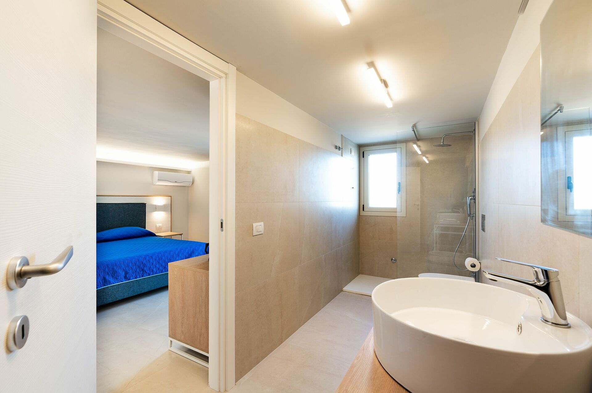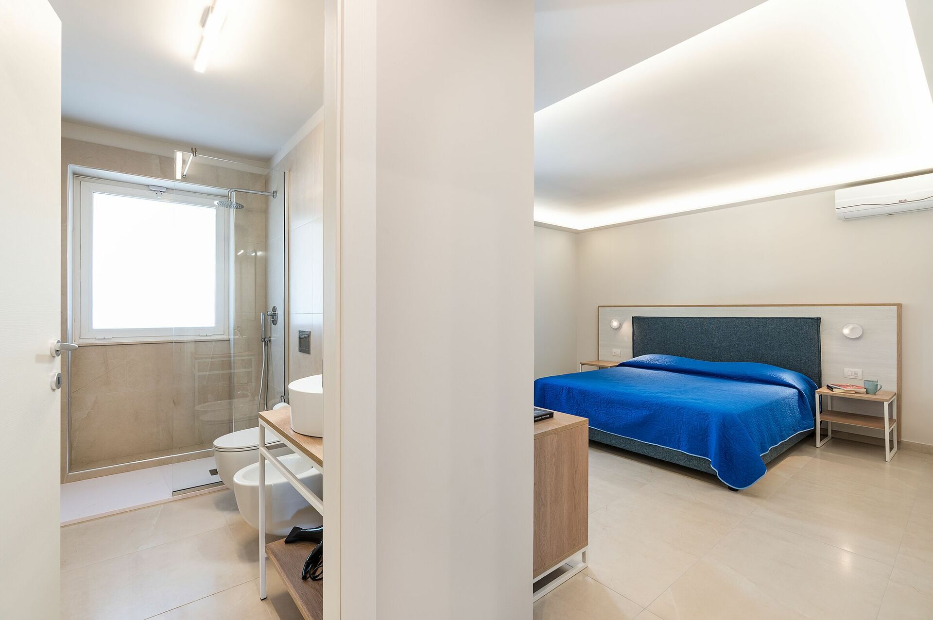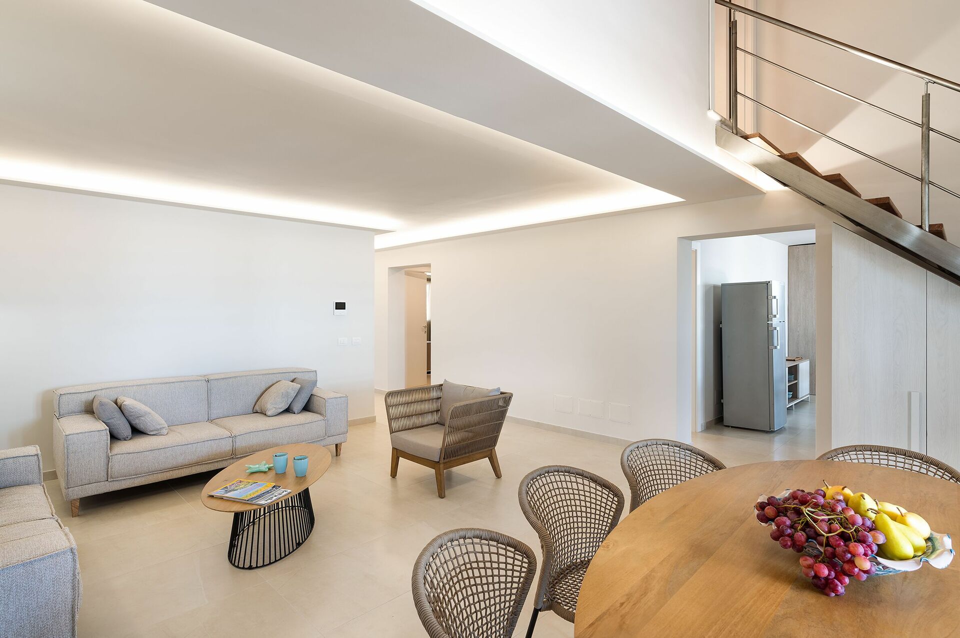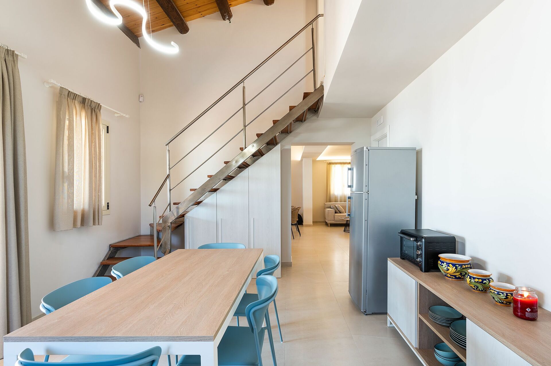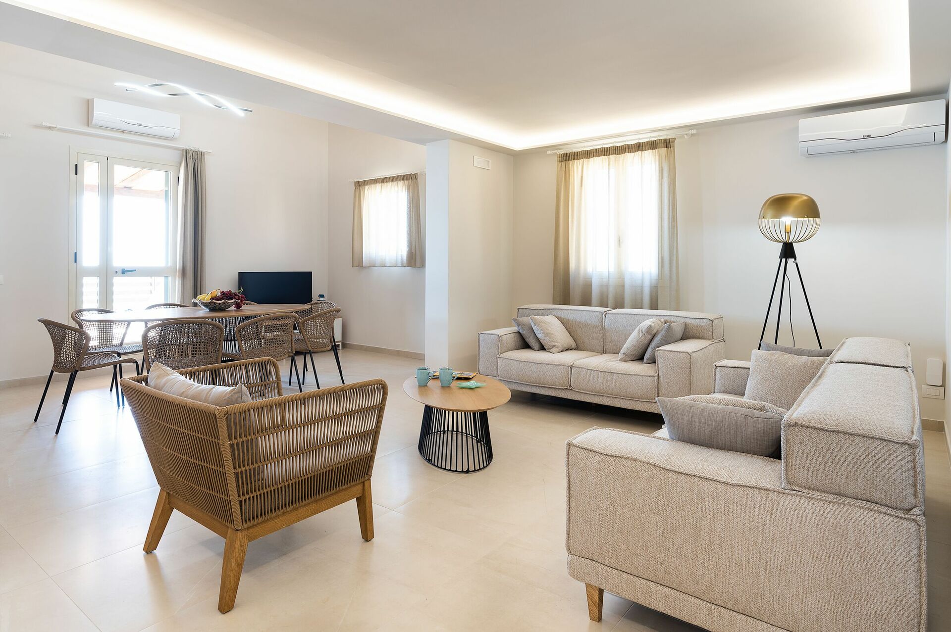 Mare del Sud is perfect voor een grote familie of een kleine groep vrienden. De villa beschikt over een ruime woonkamer en vijf comfortabele tweepersoonsslaapkamers, elk met een eigen badkamer.