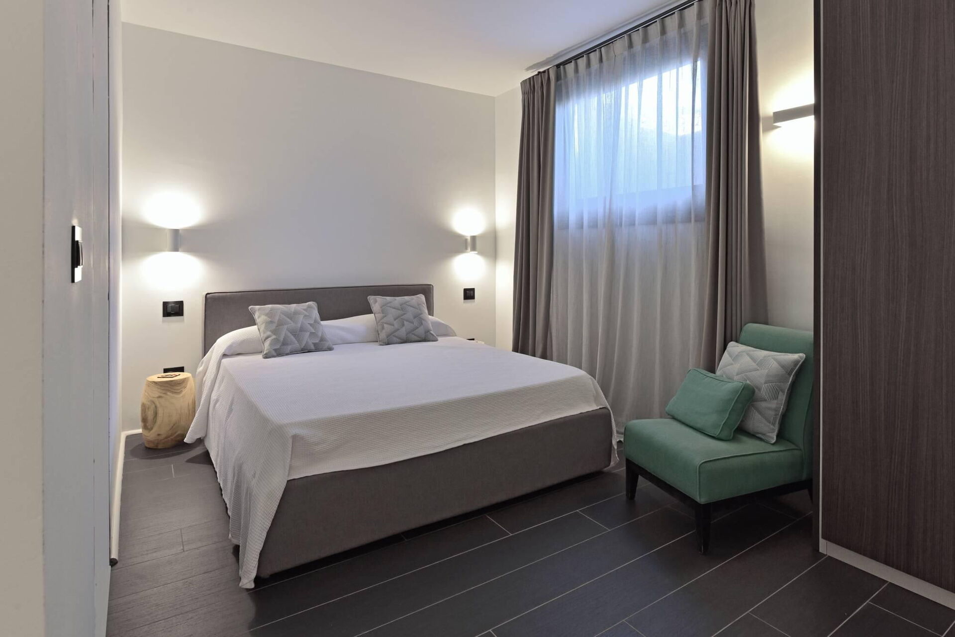 Verhoogde begane grond is alleen toegankelijk van buitenaf en niet intern verbonden met de rest van de villa: tweepersoons slaapkamer (airconditioning) met eigen badkamer met douche.