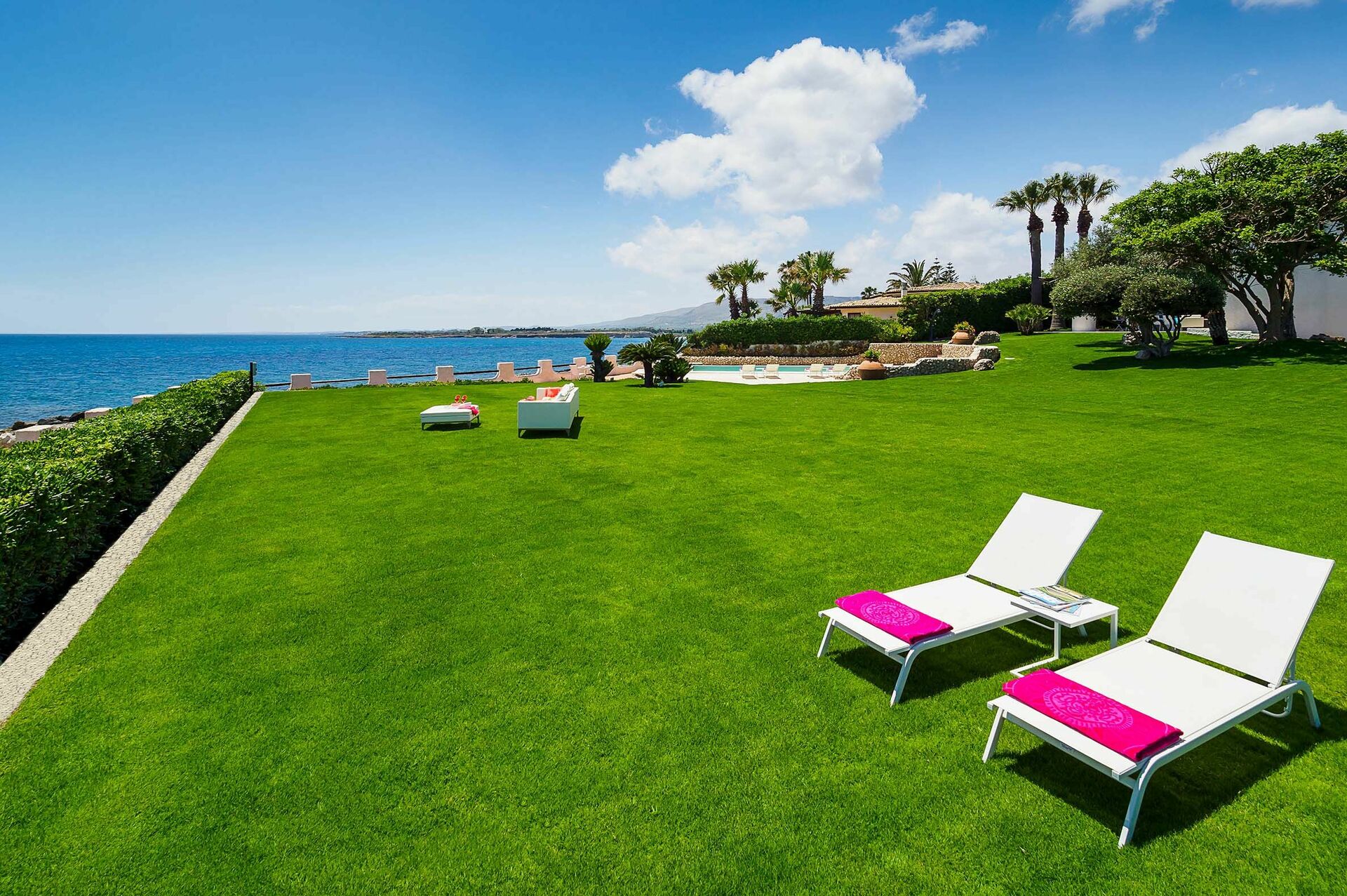 Blue Moon is een exclusieve vakantievilla te huur met privézwembad op Sicilië met een prachtige ligging aan de kust in Fontane Bianche, een populaire badplaats in de buurt van Syracuse, aan de zuidoostkust van Sicilië.