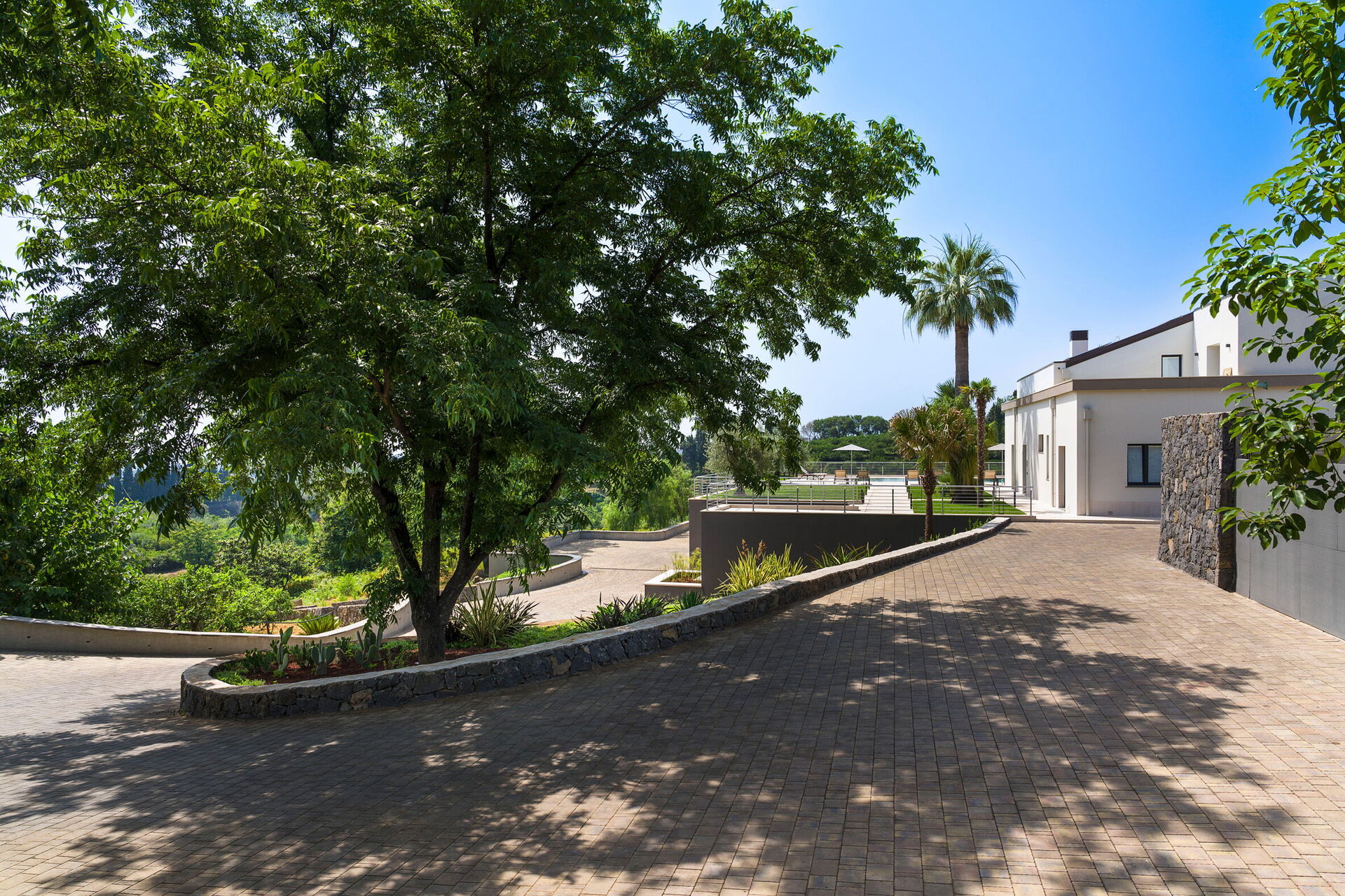 De buitenruimtes, met panoramisch uitzicht, bieden tal van ruimtes waar gasten een aangenaam verblijf kunnen doorbrengen met familie of vrienden; u kunt buiten eten, ontspannen bij het zwembad (met een zoutzuiveringssysteem) of in het solarium, ideaal voor onvergetelijke momenten onder de Siciliaanse zon.