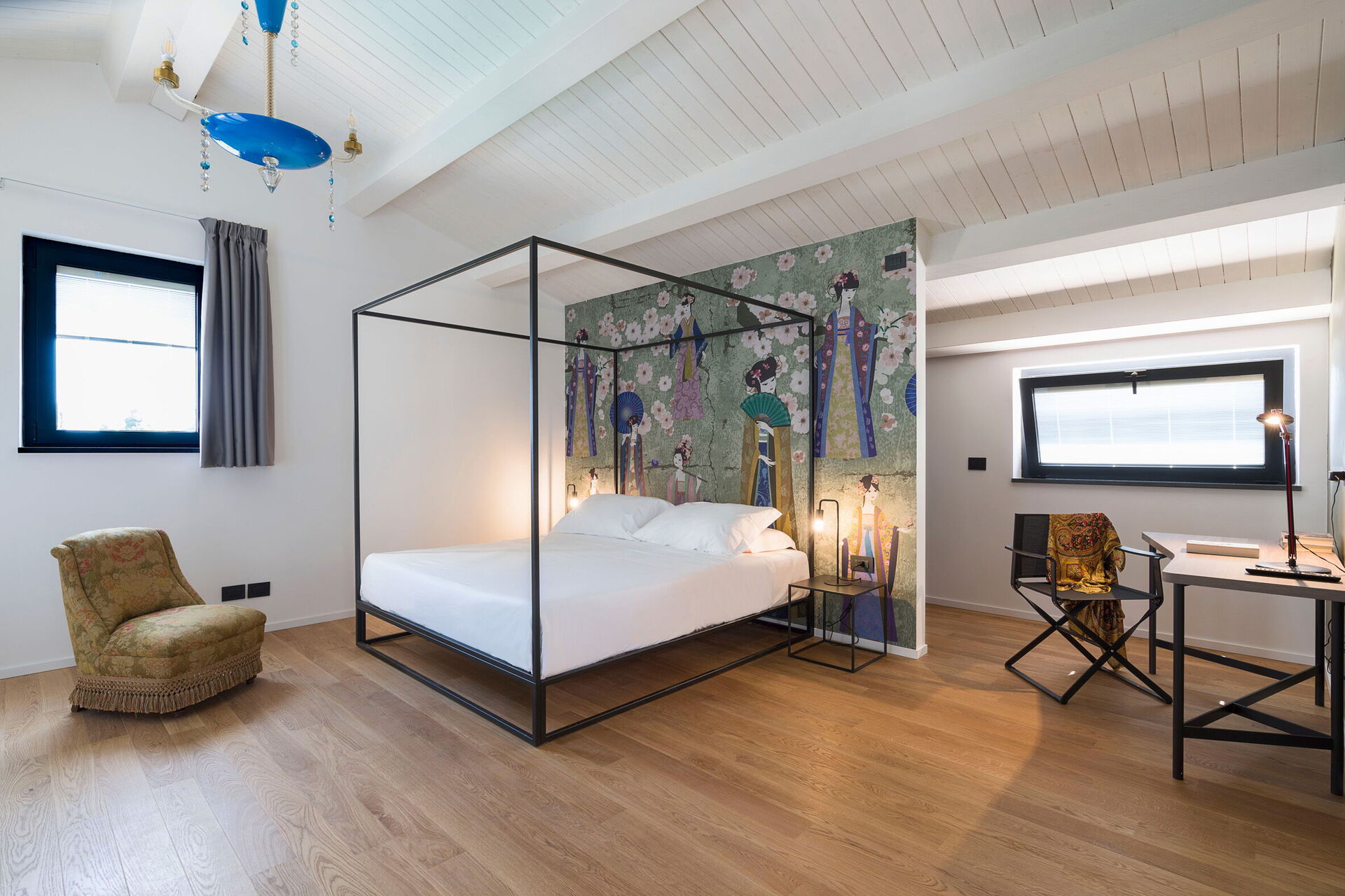 Eerste verdieping: woonkamer (airconditioning, Smart TV), 2 tweepersoonsslaapkamers (airconditioning, kingsize bedden) elk met eigen badkamer met douche en toegang tot het terras, slaapkamer met tweepersoonsbed ( airconditioning), slaapkamer met queensize bed (airconditioning), 1 badkamer met douche.