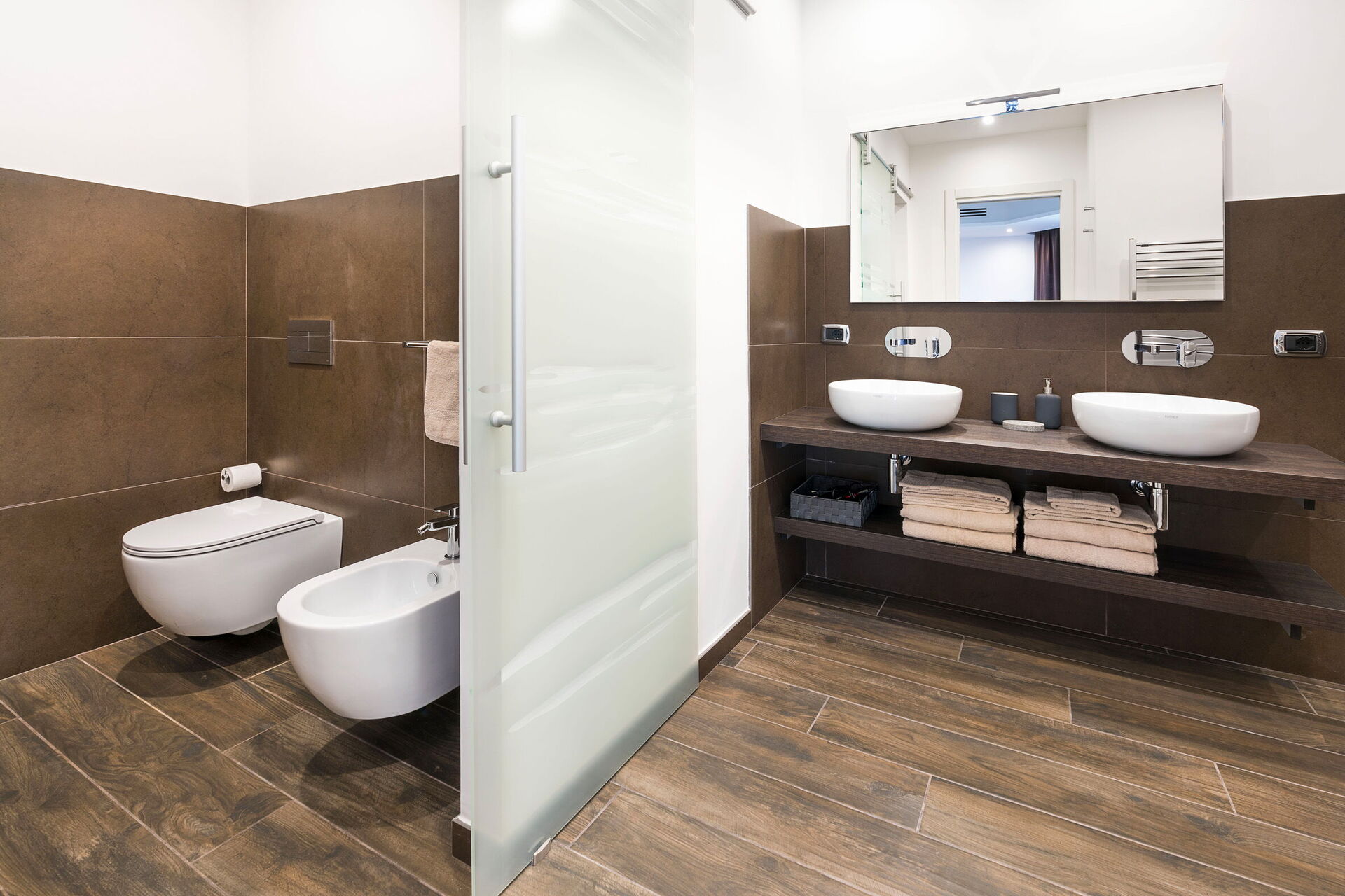 Begane grond: grote woonkamer (piano-tv); eetkamer; keuken; WC; wasruimte met wasmachine en droger; 3 tweepersoonskamers, elk met eigen badkamer met douche.