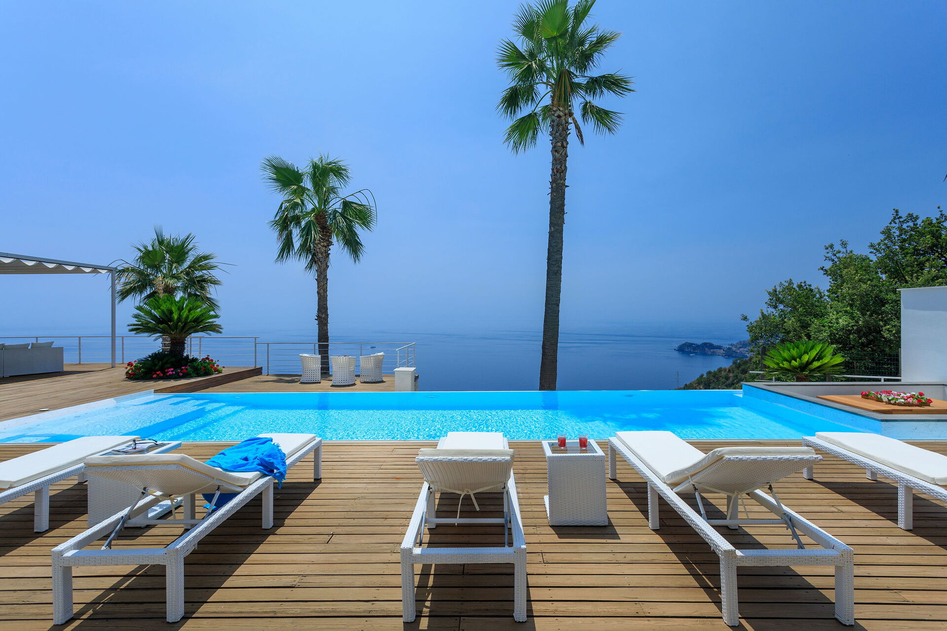 De vele schilderachtige buitenruimtes bieden de mogelijkheid om onvergetelijke momenten door te brengen in de Siciliaanse zon, te ontspannen met familie en vrienden op het gemeubileerde terras en buiten te dineren, of in het grote zwembad met spectaculair uitzicht op zee.