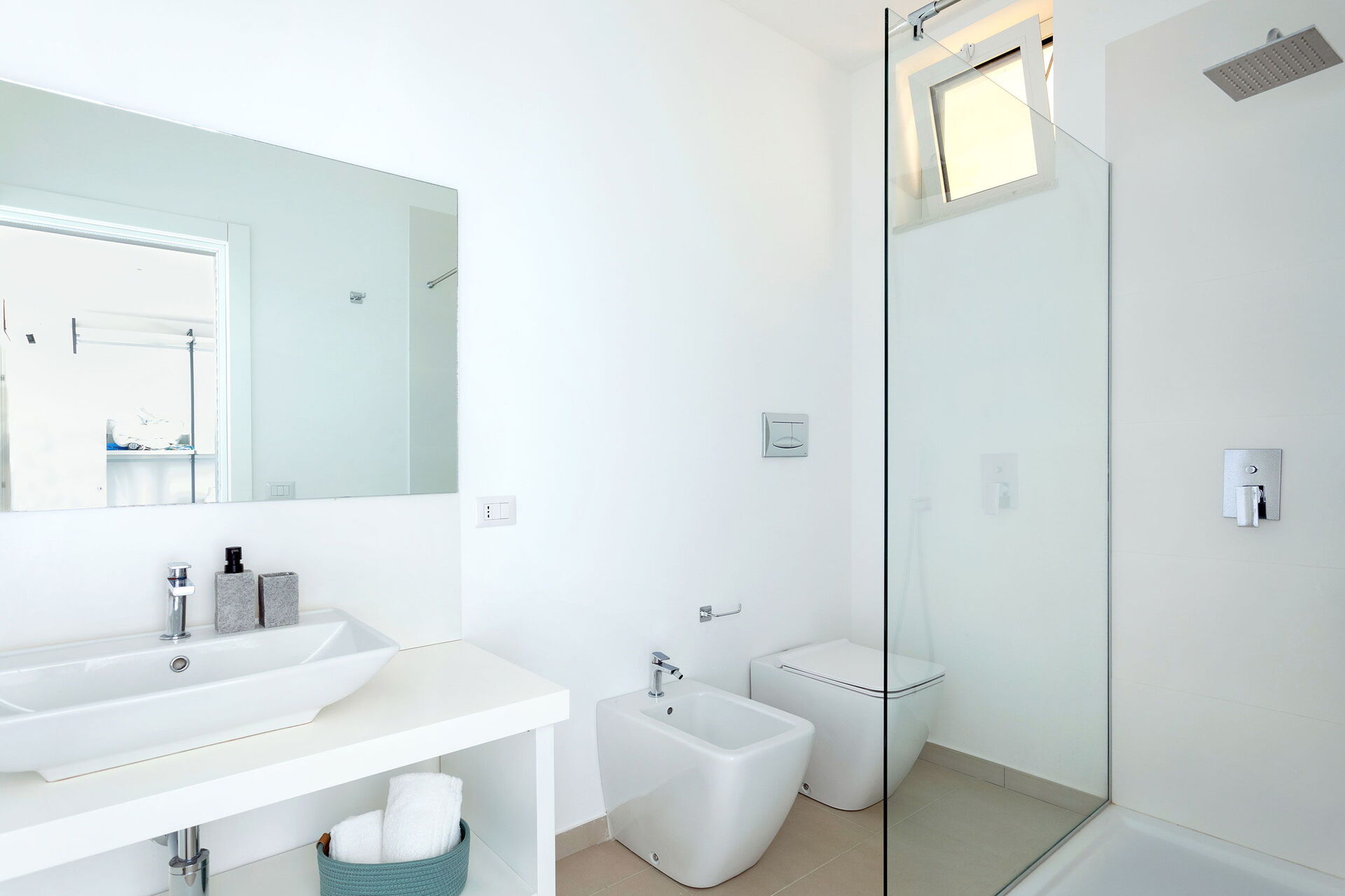 Begane grond: grote open woonkamer en keuken (kookplaat, oven, koelkast, vriezer, vaatwasser, magnetron, broodrooster, espresso-koffiezetapparaat) met eethoek en toegang tot het schilderachtige terras uitgerust om buiten te eten, Toilet, fitnessruimte met sauna en badkamer met douche, wasruimte, slaapkamer met tweepersoonsbed (airconditioning) met eigen badkamer met douche.