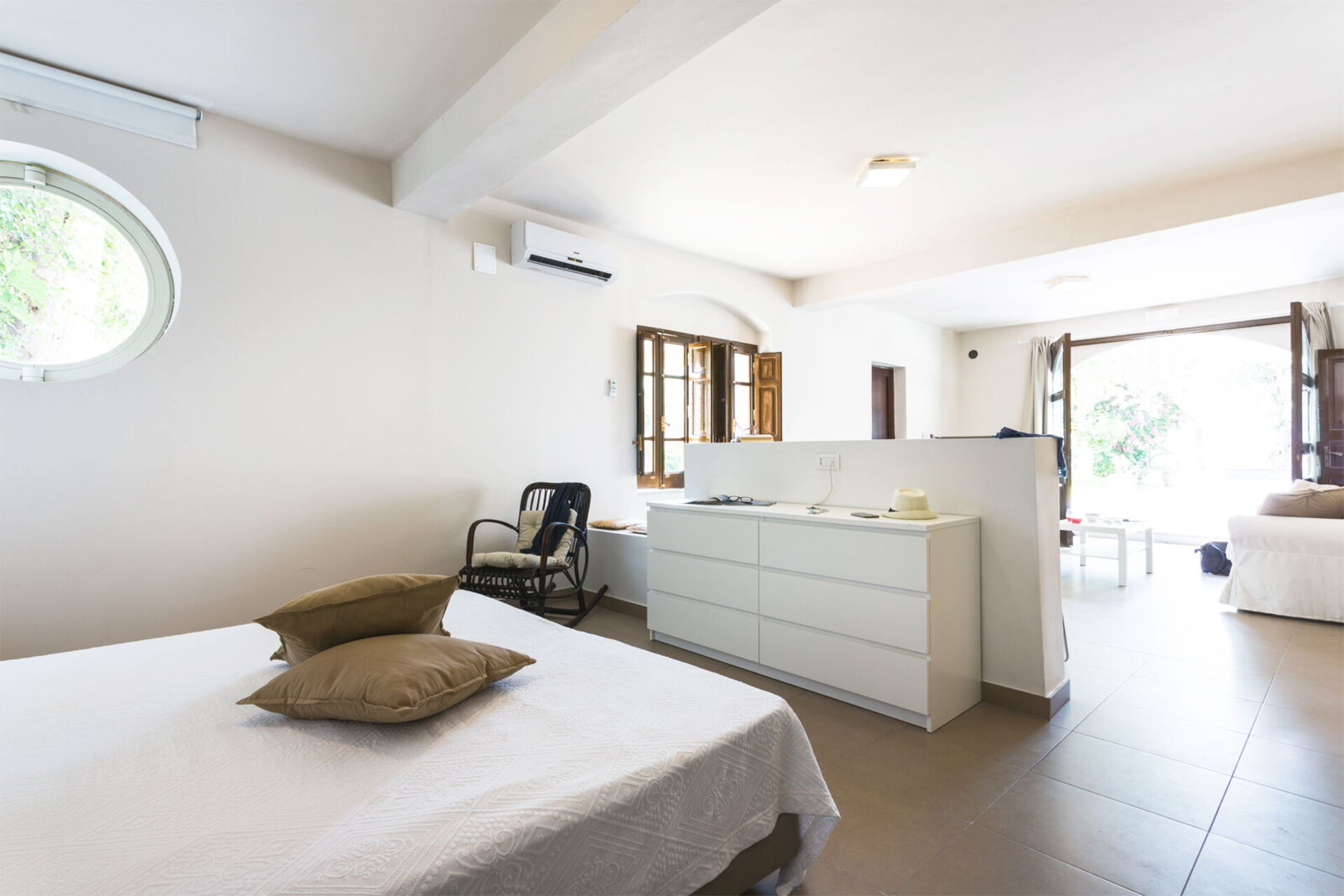 First floor: (only accessible from outside, and not connected on the inside): passageway bedroom with 2 single beds, double bedroom (air conditioning) and private bathroom with shower.