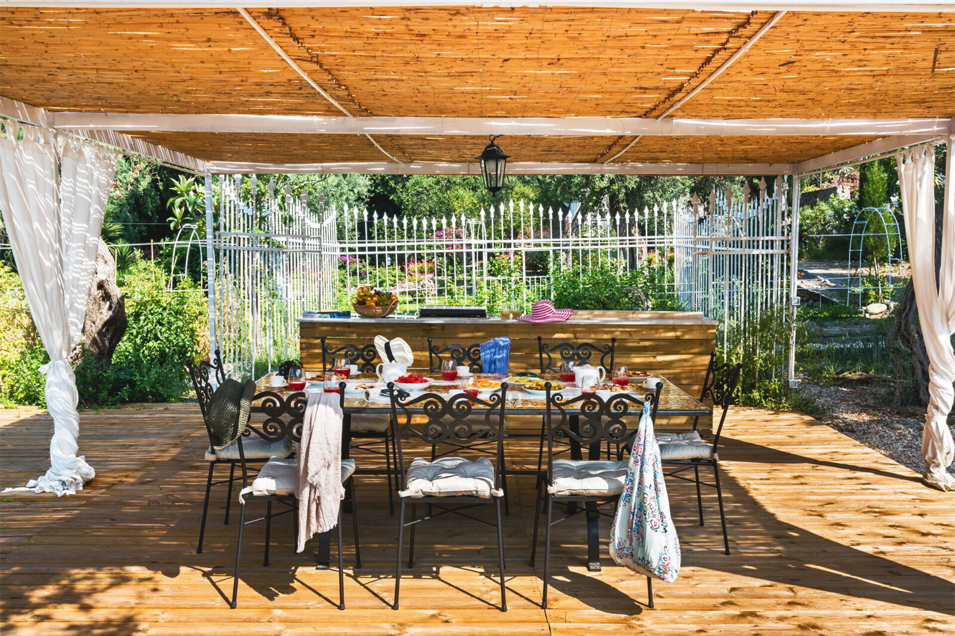- 2 paviljoens ingericht voor buitenmaaltijden