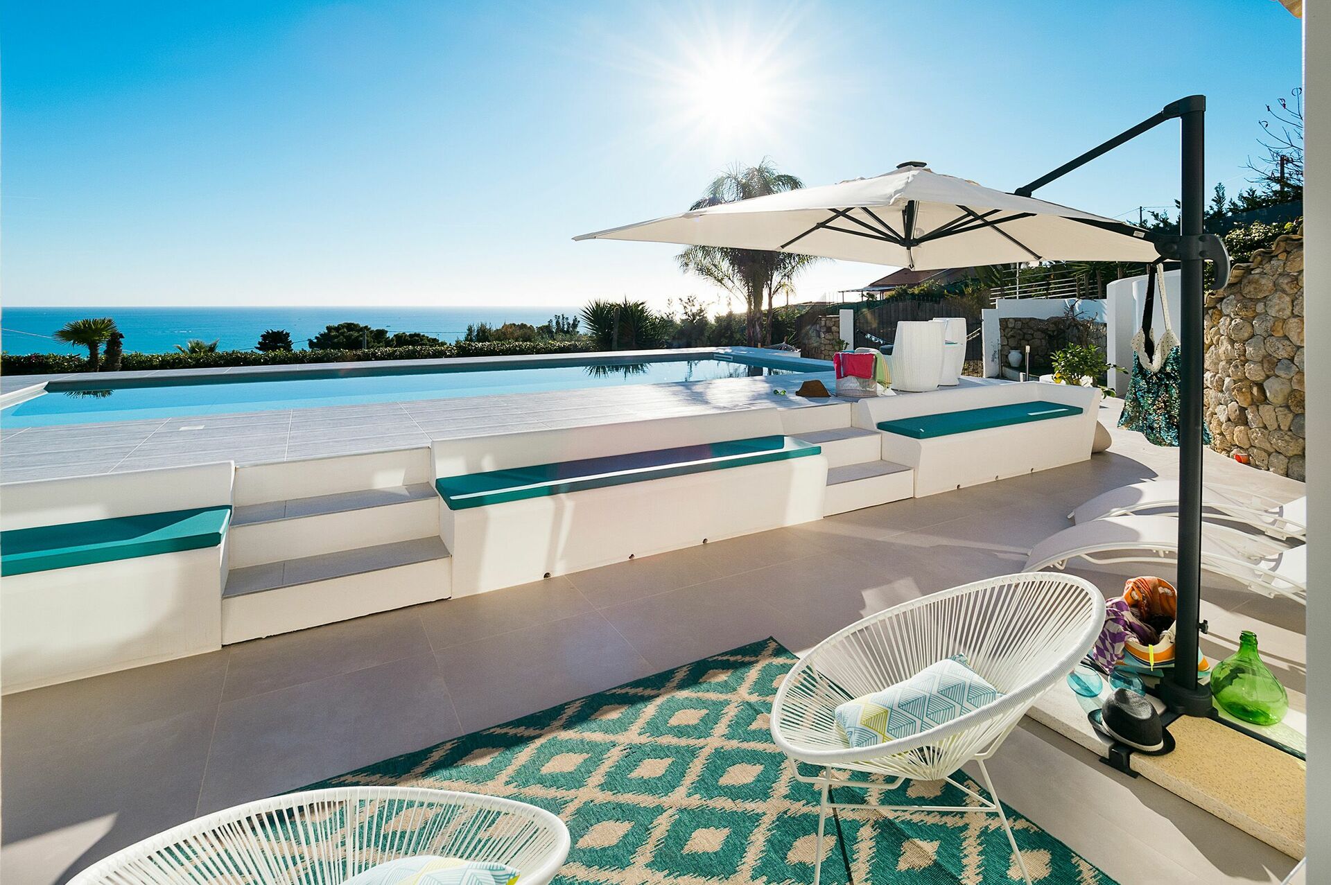 Villa Pales wordt omgeven door een weelderige en goed onderhouden tuin en beschikt over een prachtig zoutwaterzwembad en ruime terrassen met tuinmeubelen en een betoverend uitzicht op zee.