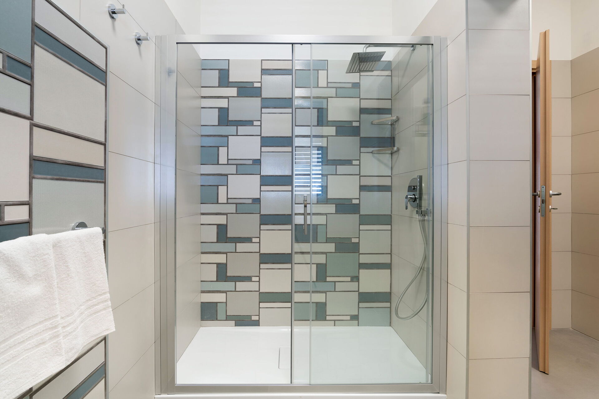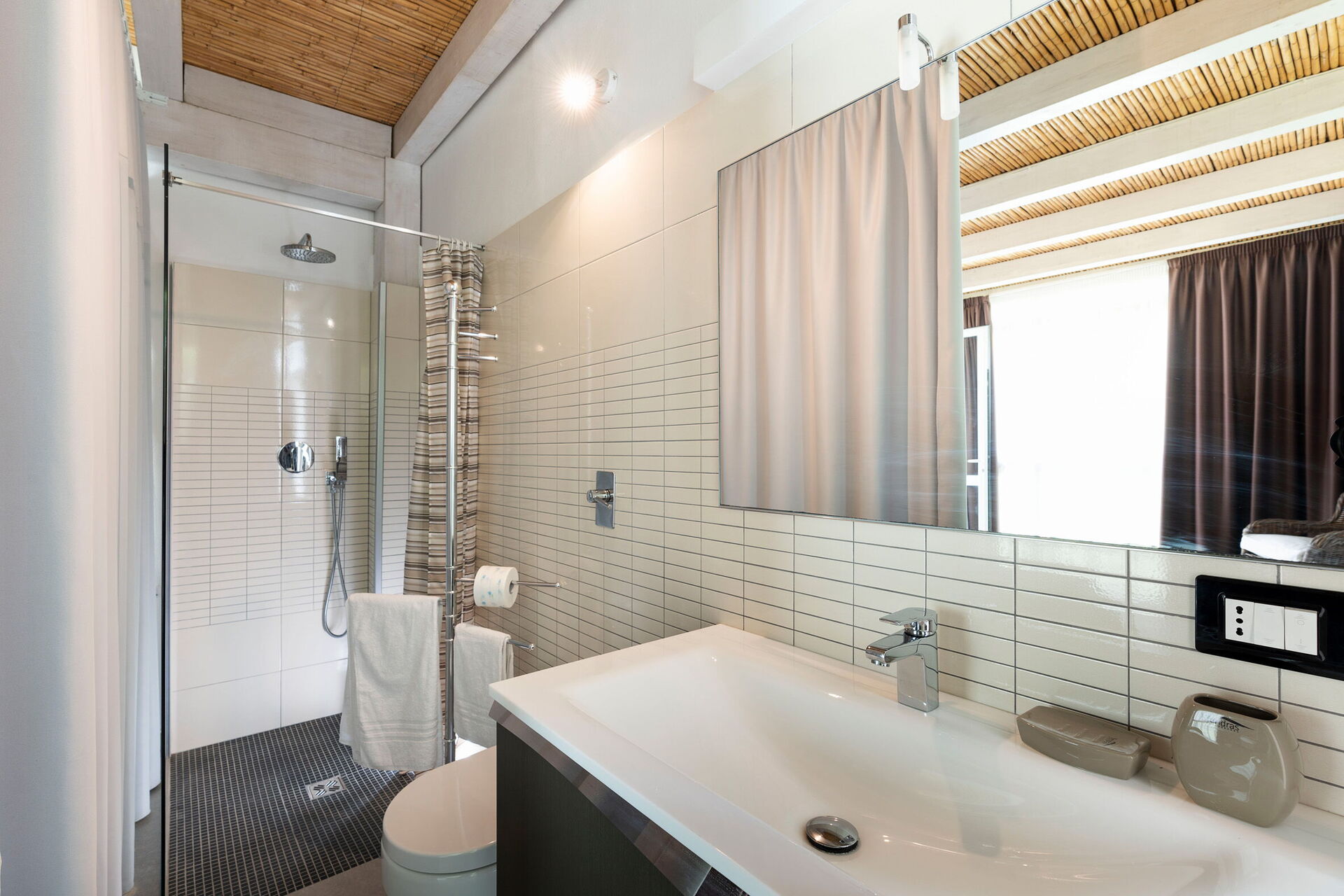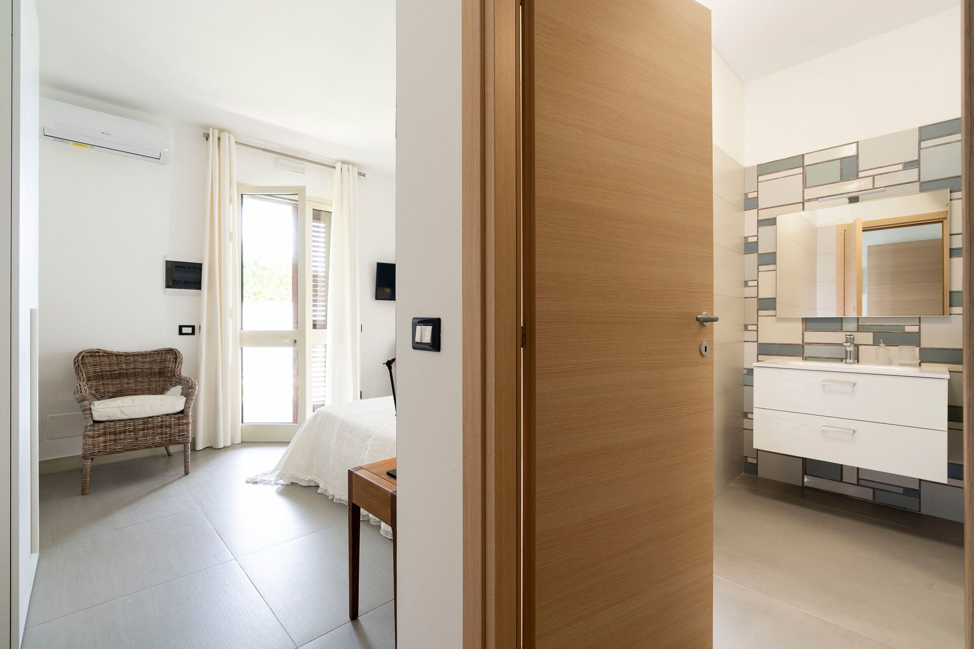 Begane grond (alleen van buitenaf toegankelijk, en binnen niet verbonden met de rest van de villa): slaapkamer met tweepersoonsbed (airconditioning, scherm) met eigen badkamer met douche.