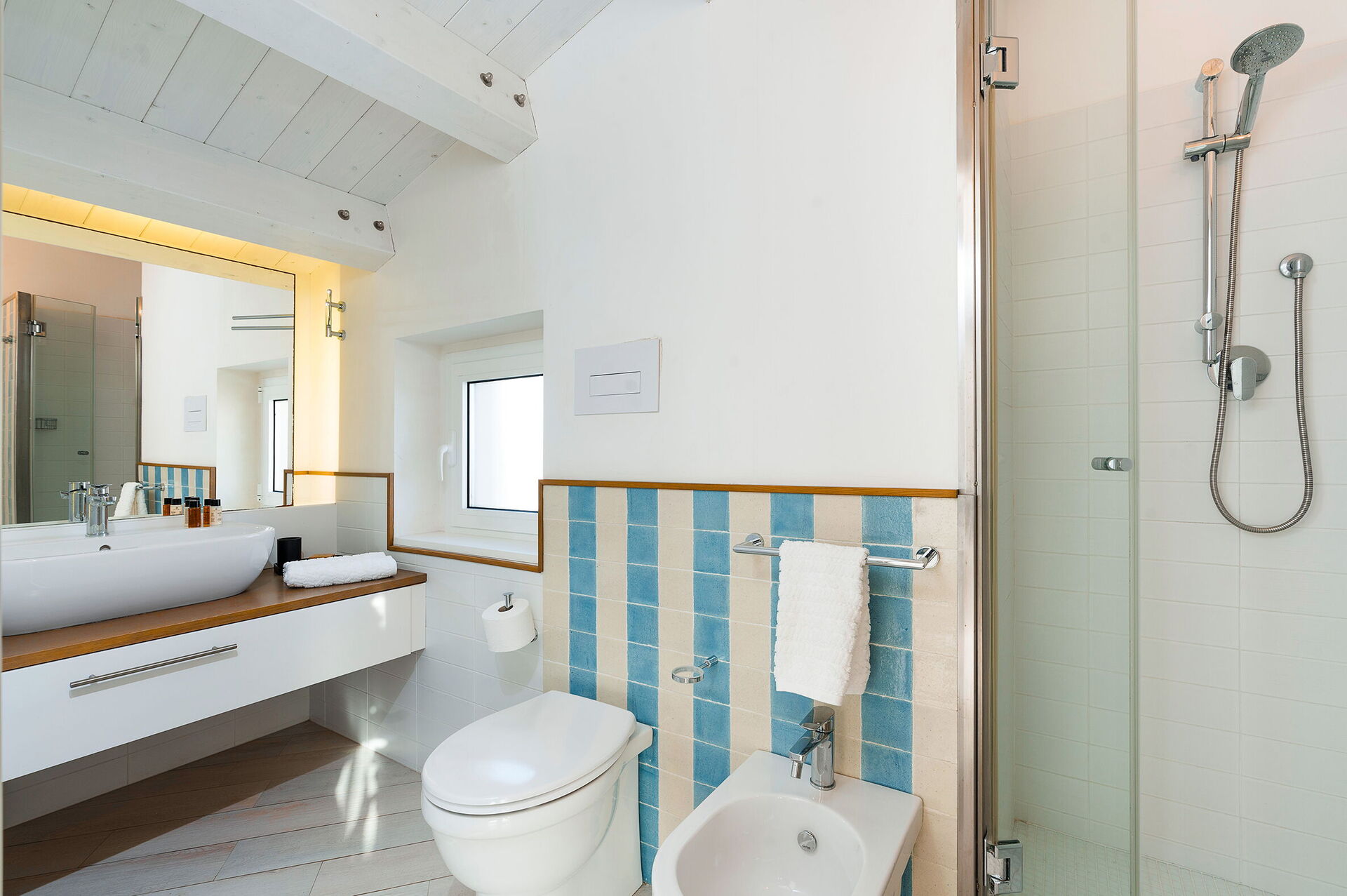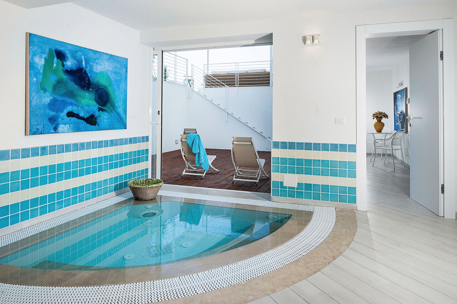 Villa Blumarine is verdeeld over drie verdiepingen en heeft een gezellig interieur.