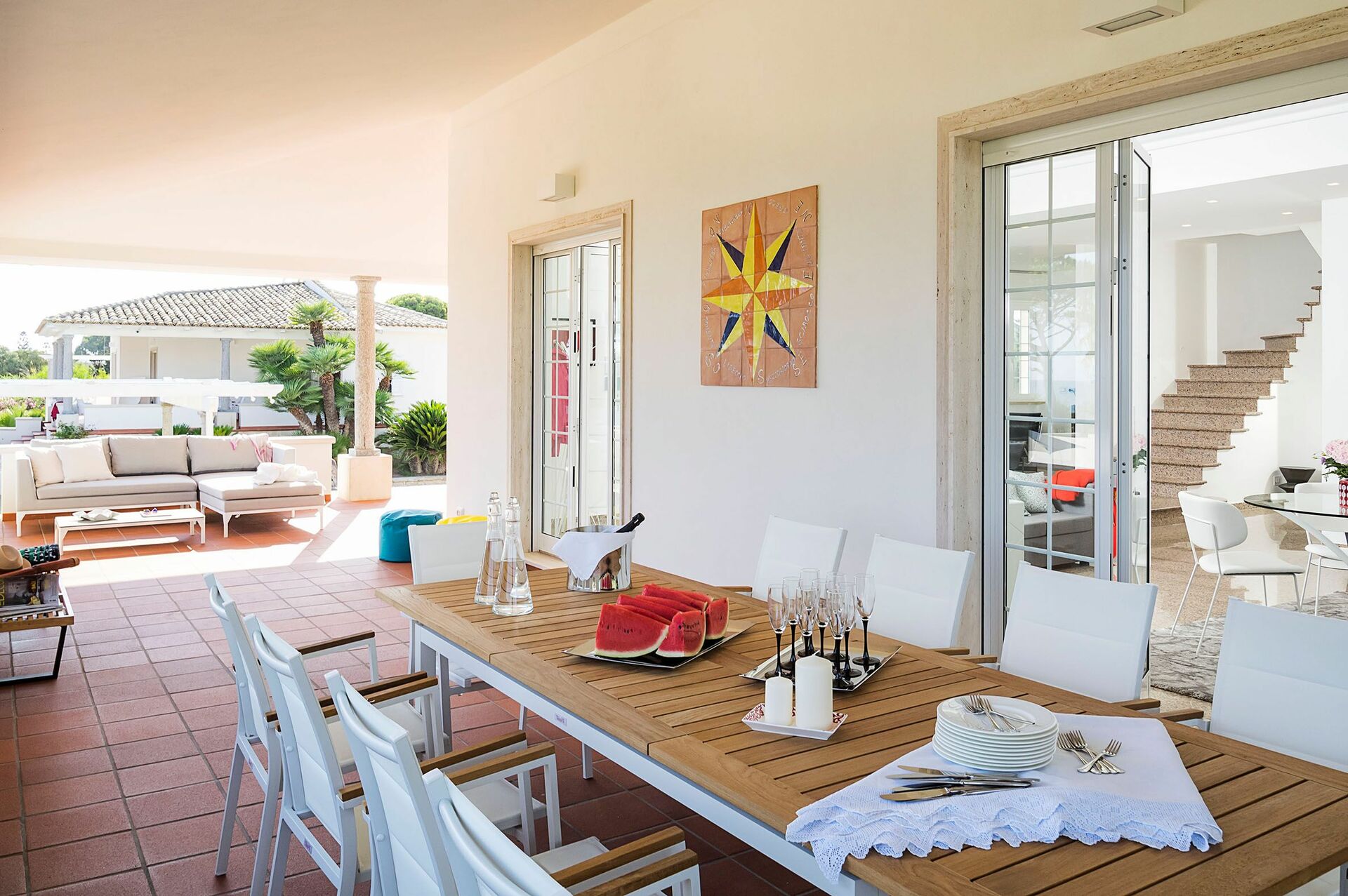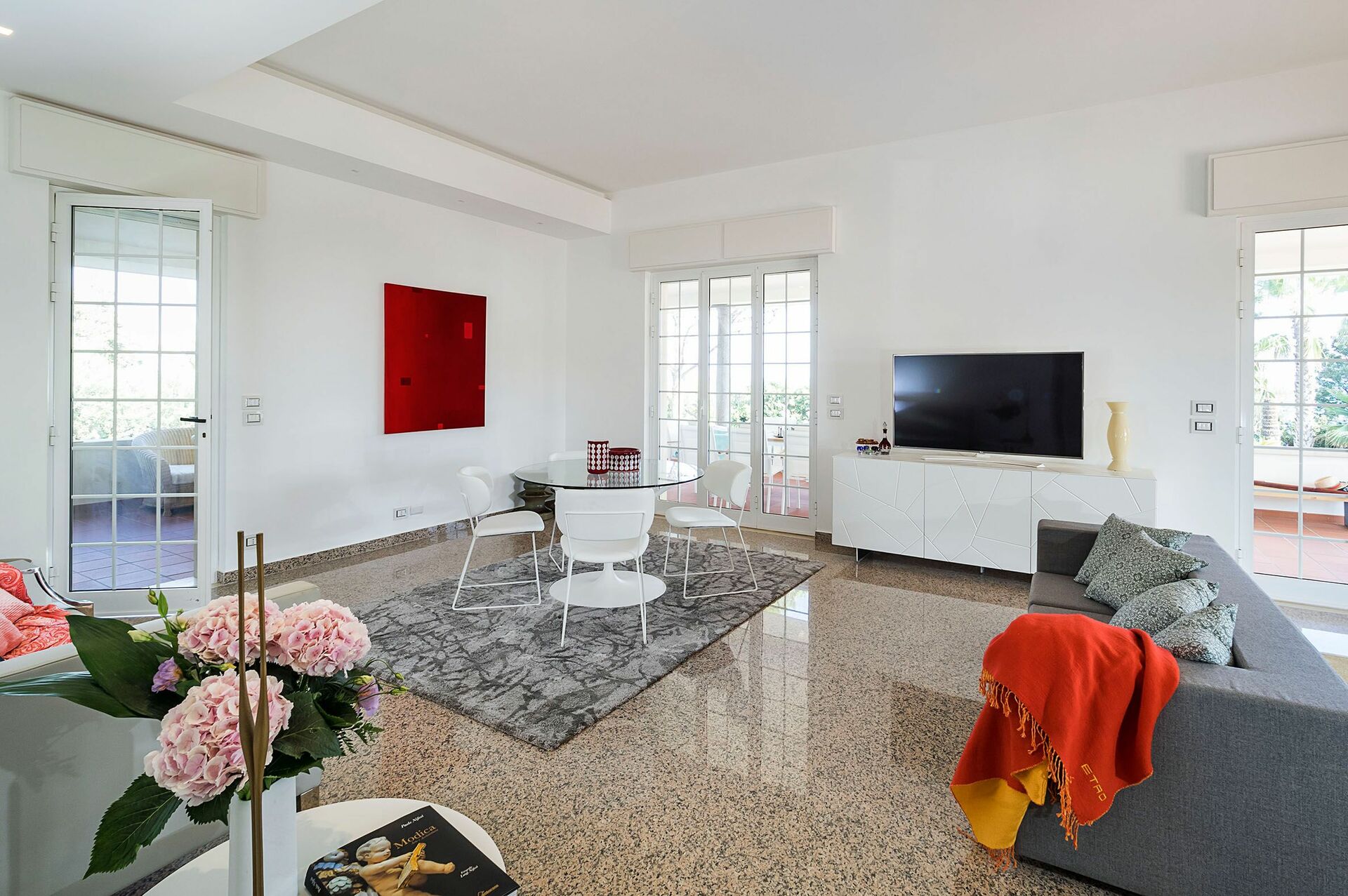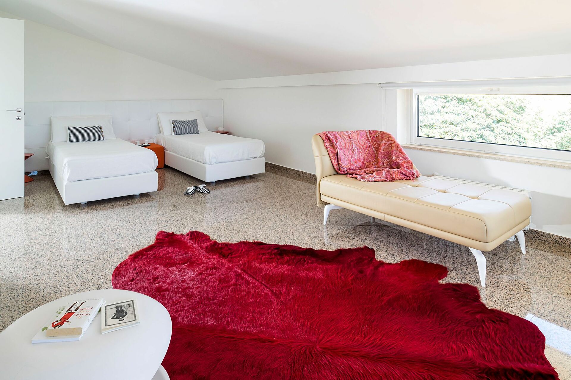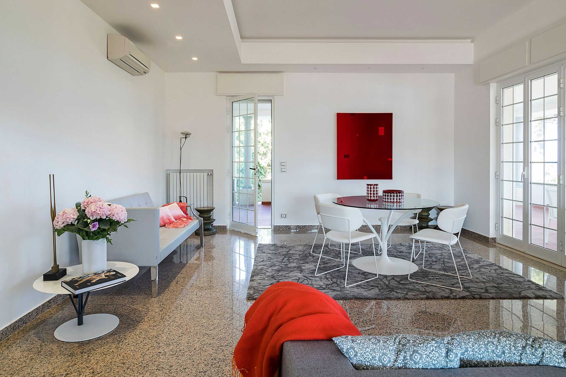 Surrounded by a lush garden, this large villa offers large, well-equipped terraces with enchanting sea views. In addition to the magnificent outdoor spaces, the property offers welcoming interiors in two units that face the large pool.