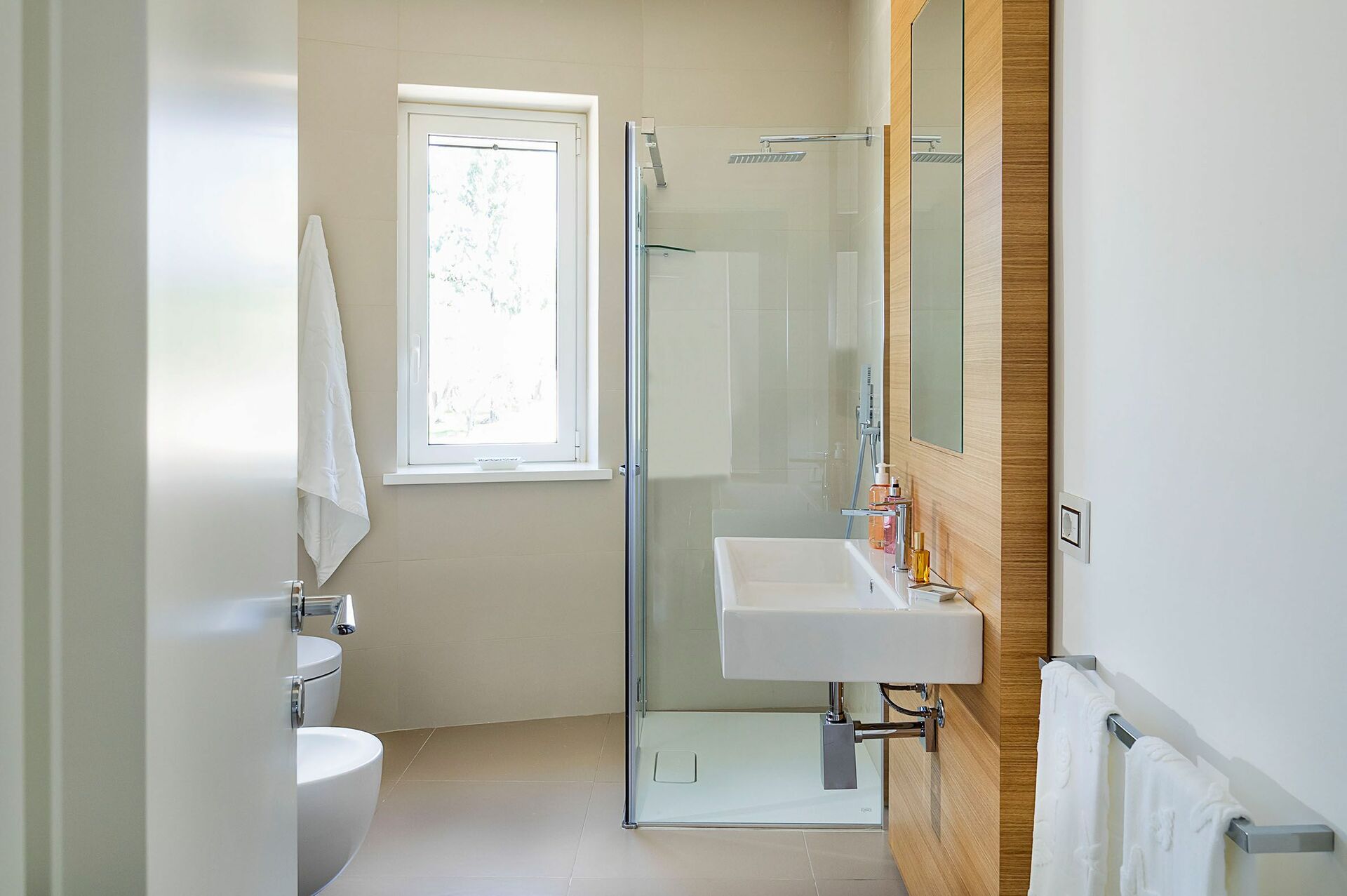 First floor: living room; kitchen (oven, freezer, dishwasher, coffee maker) with dining area; 1 double bedroom with private bathroom with shower; 1 bedroom with 2 single beds; 1 bathroom with shower; veranda.