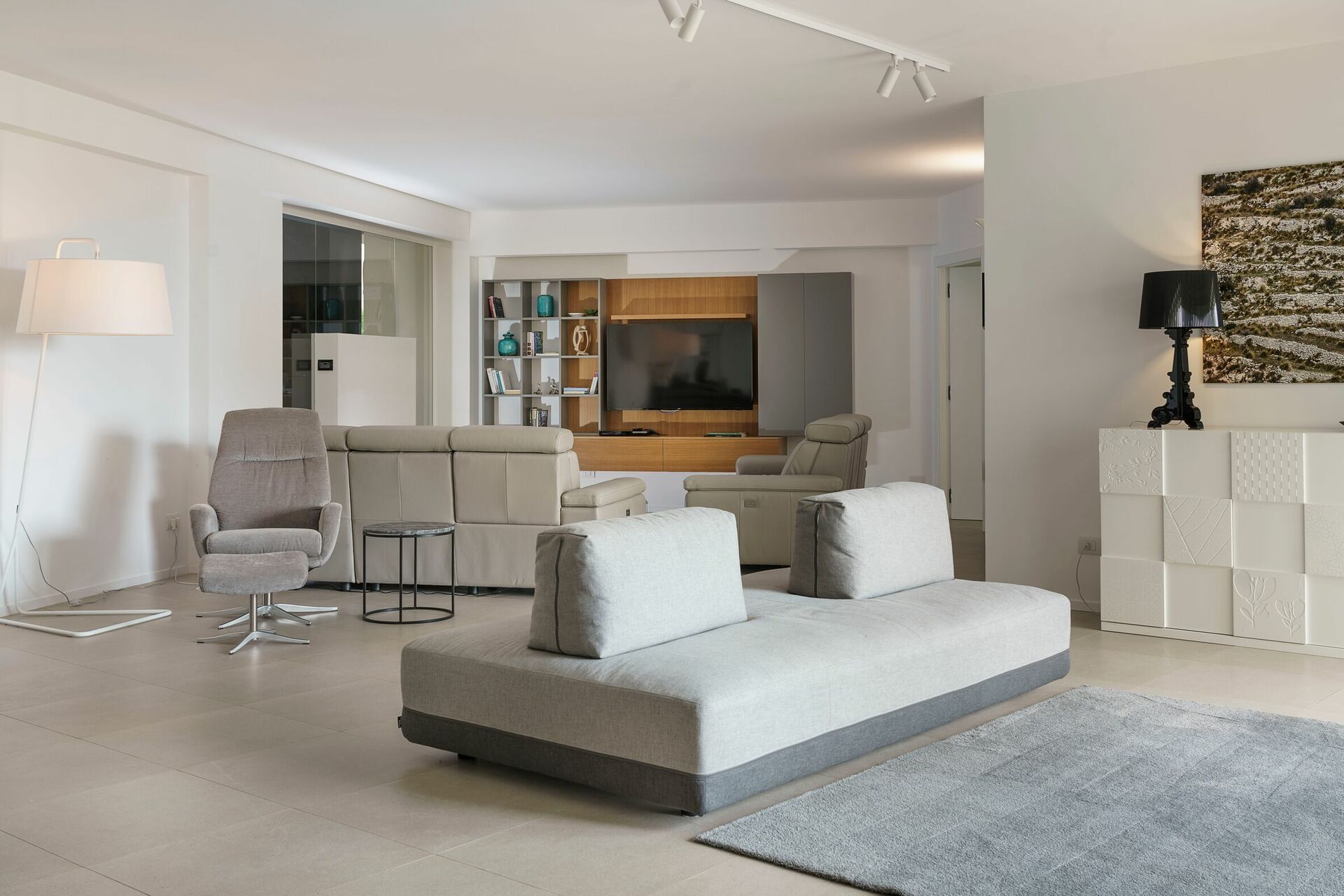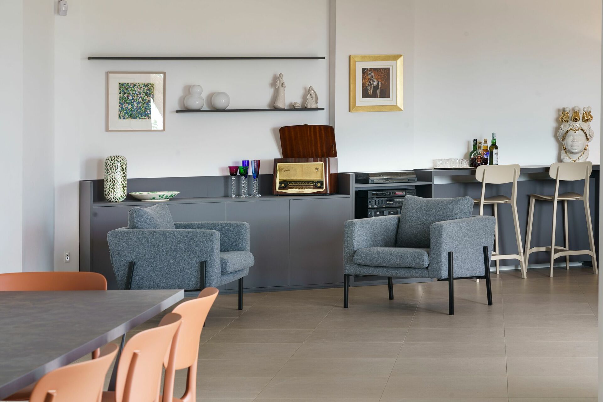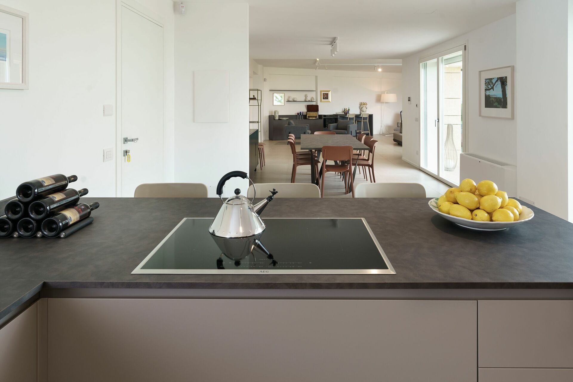 Op de bovenste verdieping van de villa bevindt zich een volledig onafhankelijk appartement, waar de eigenaren verblijven tijdens het midden- en laagseizoen. Om de privacy van de gasten te waarborgen, is dit appartement gesloten tijdens het hoogseizoen.
