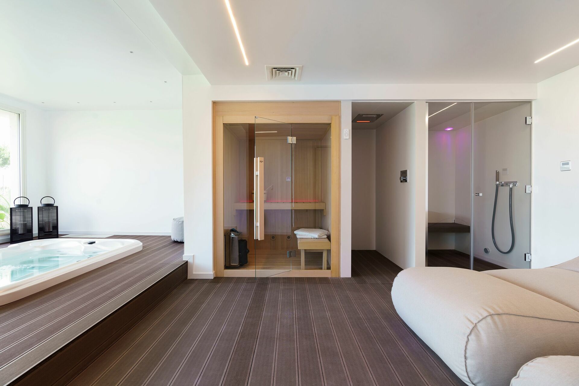 • Spa-ruimte met sauna, stoombad, whirlpool en sensoriële douche (sauna en stoombad beschikbaar op aanvraag)