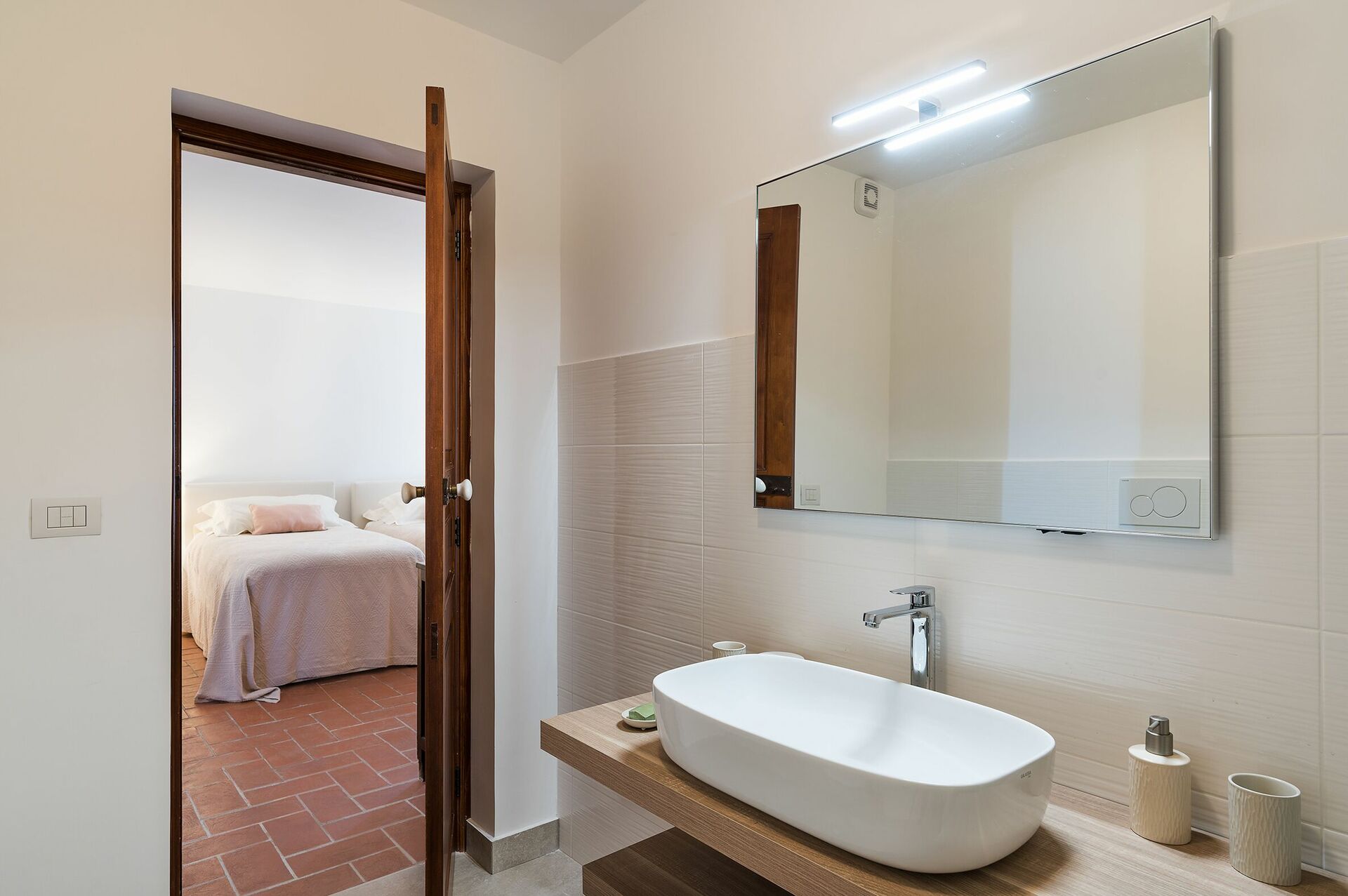 Binnen biedt de villa 4 slaapkamers, elk met eigen badkamer, om comfortabel plaats te bieden aan maximaal 8 personen.