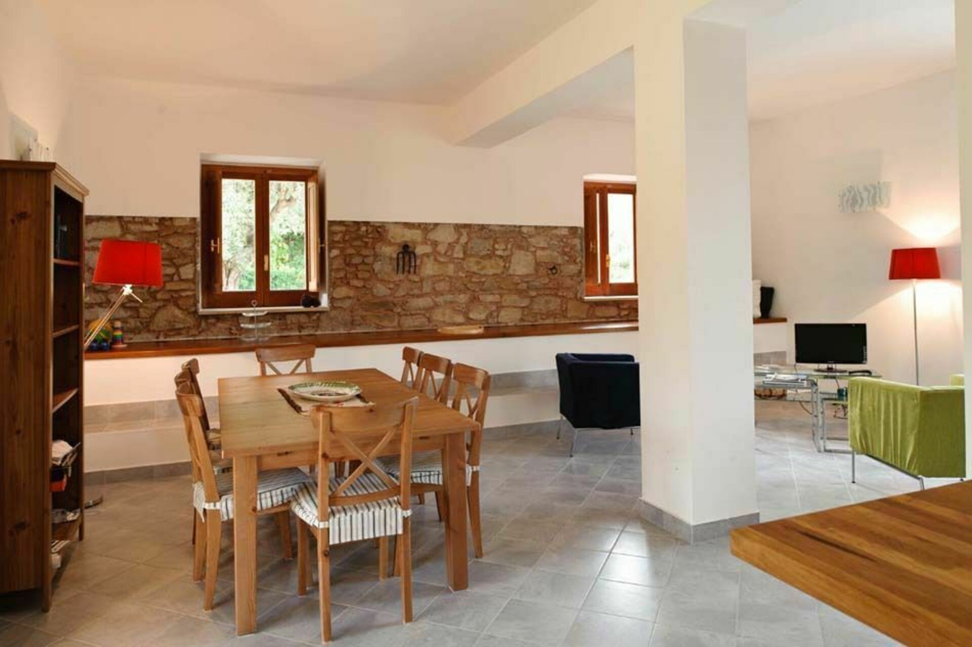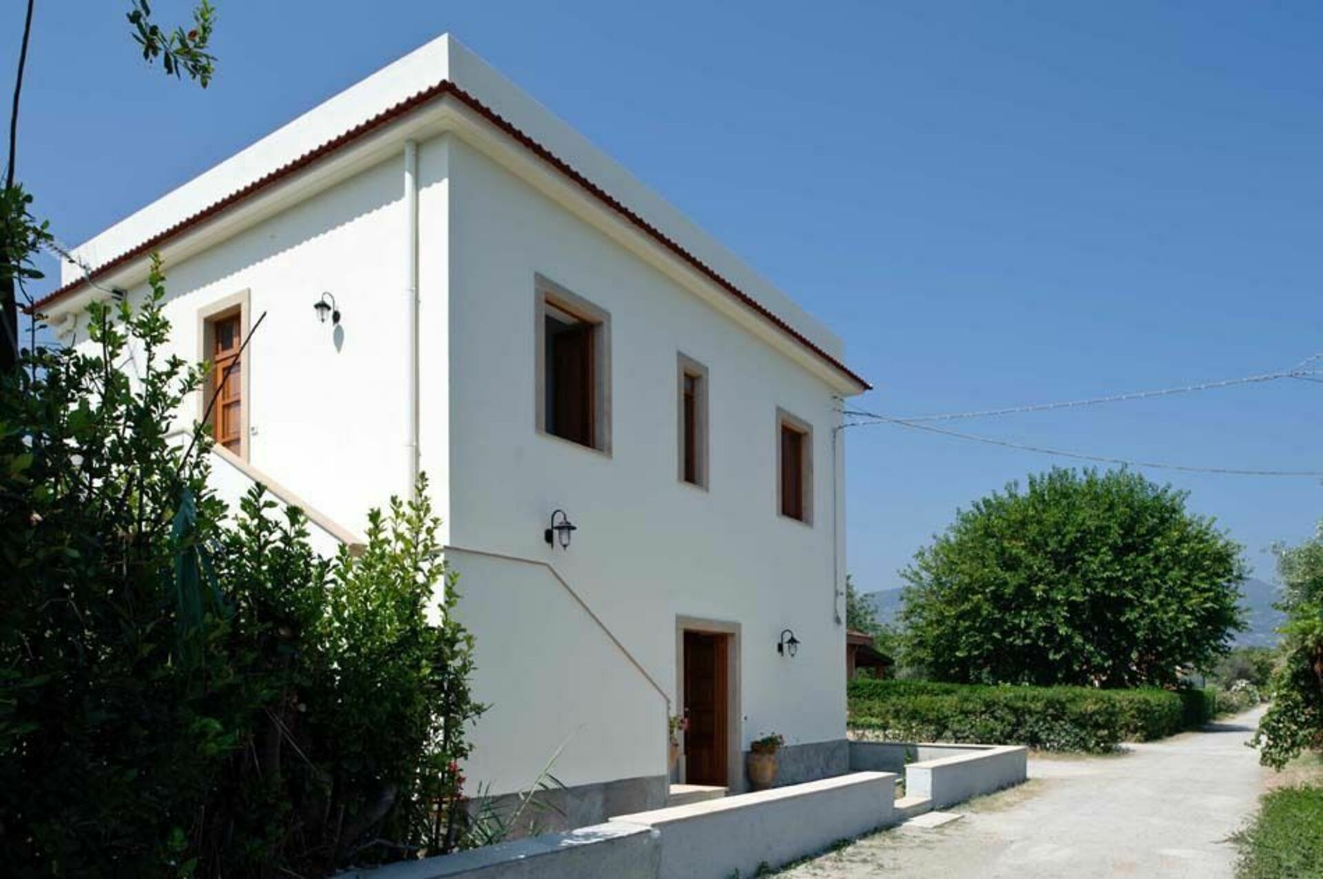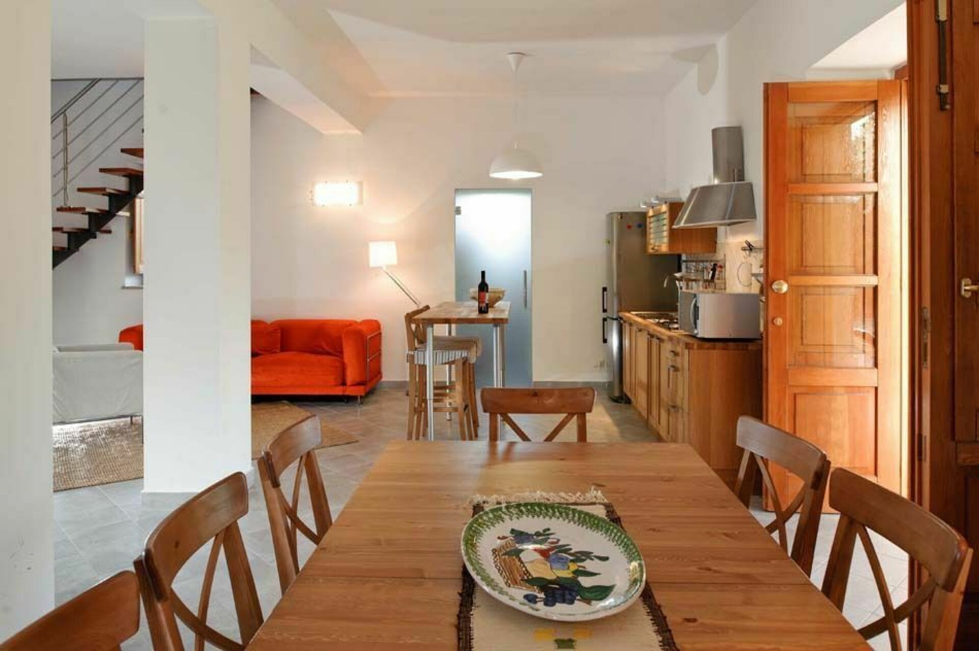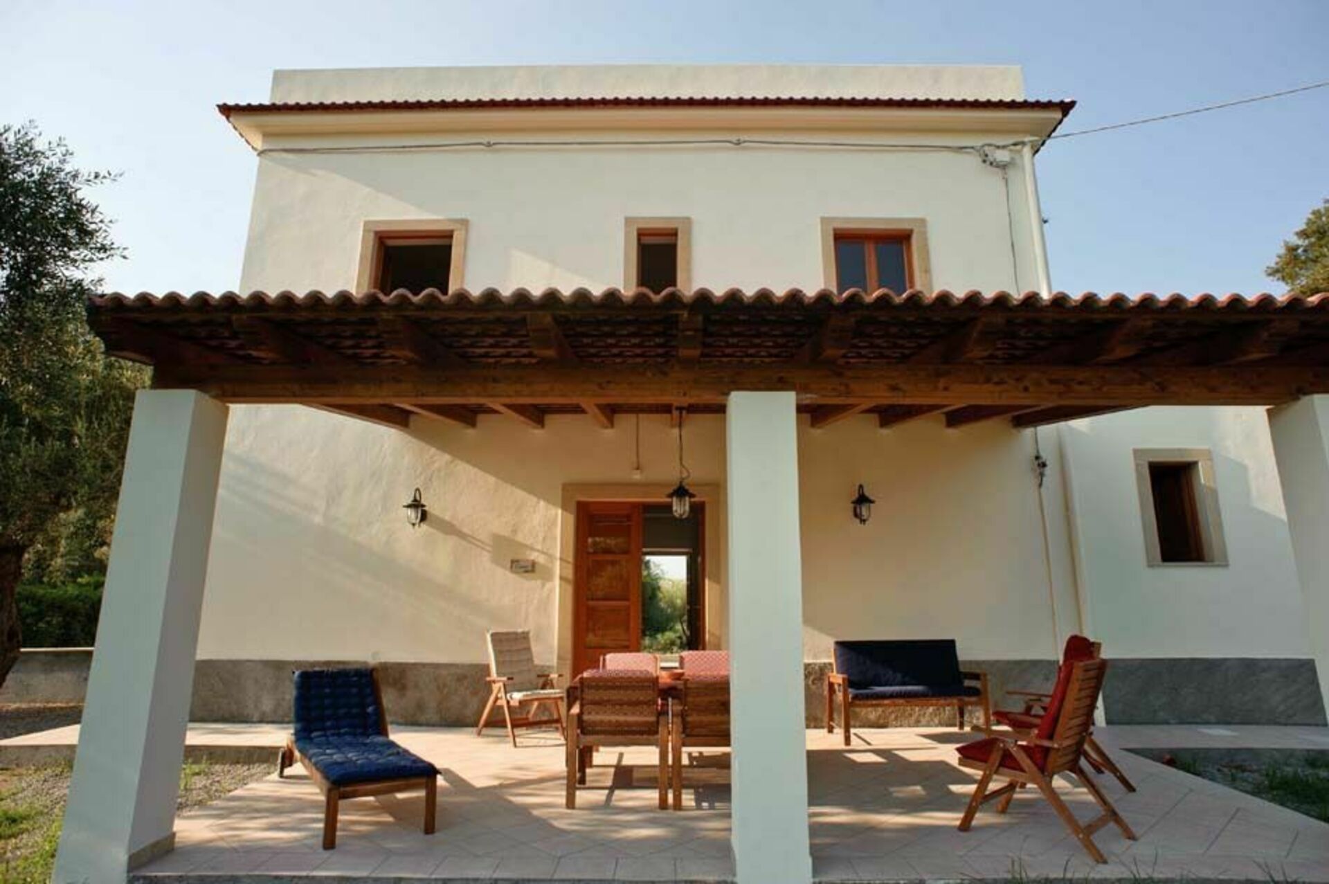 De begane grond is eenvoudig, maar elegant ingericht en beschikt over een ruime woon-/eetkamer met een keuken en een badkamer. Op de eerste verdieping, ook toegankelijk via een externe trap, zijn drie slaapkamers en twee badkamers. Buiten het huis wacht de gasten een schaduwrijk terras omgeven door olijf- en citrusbomen.