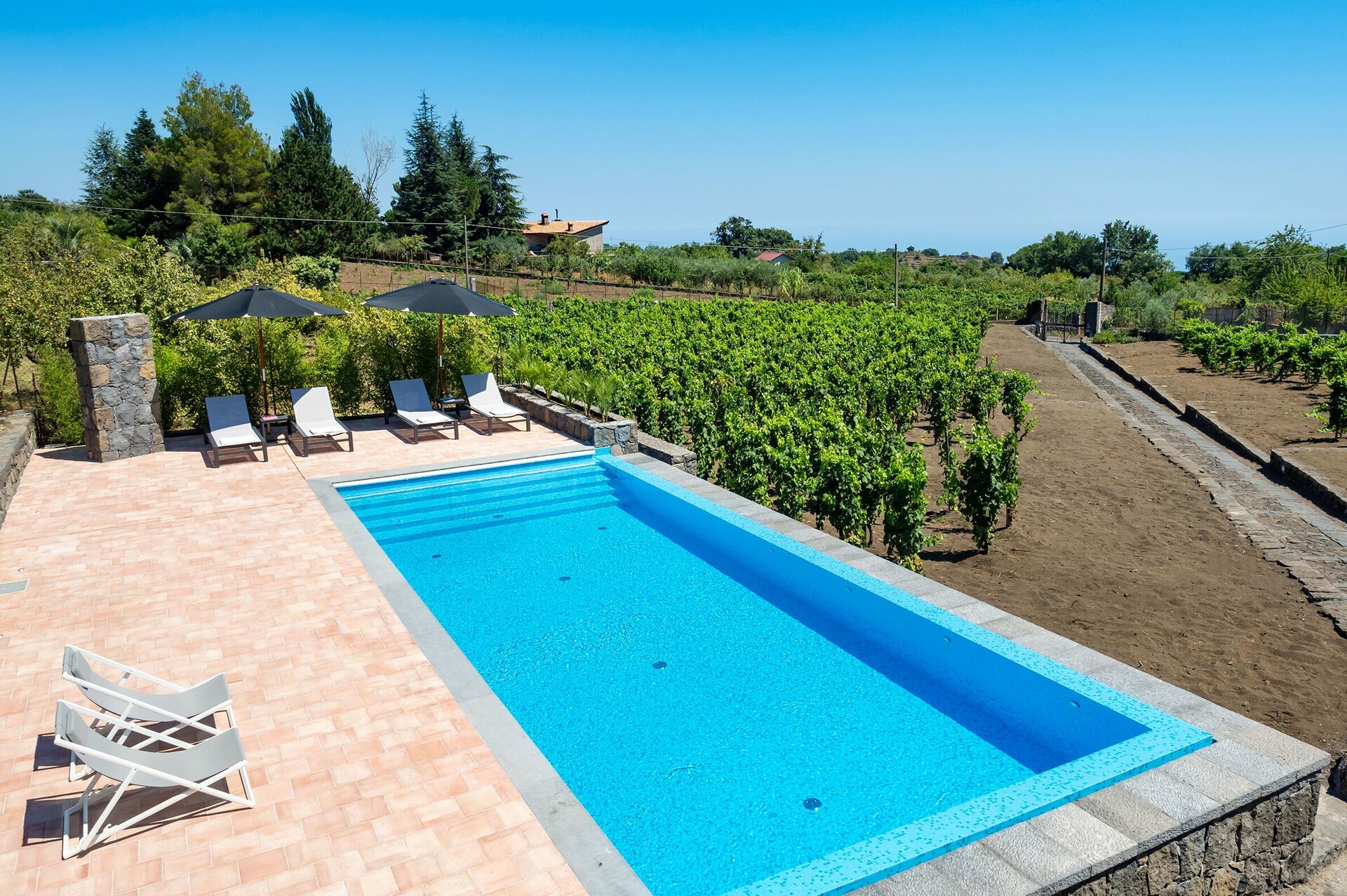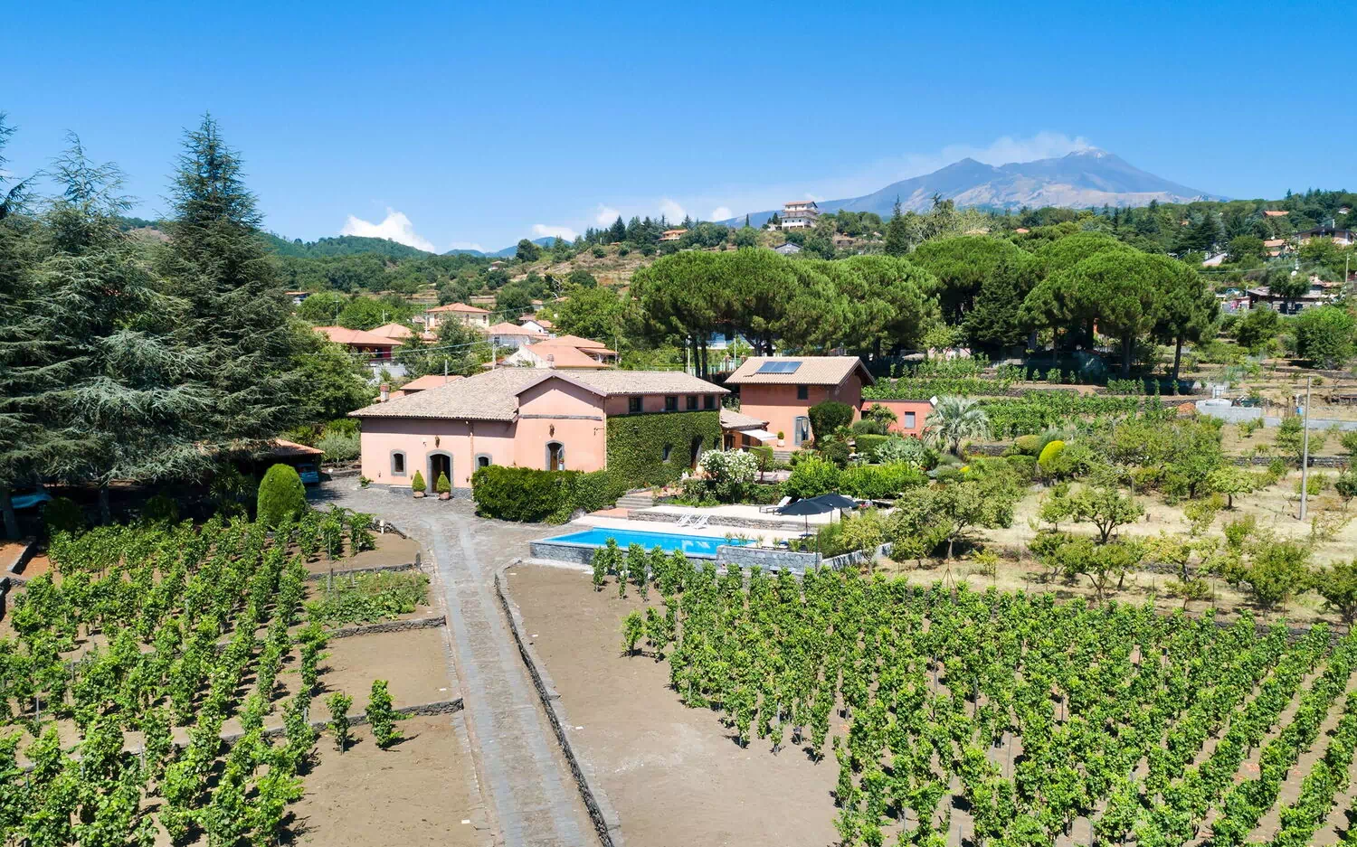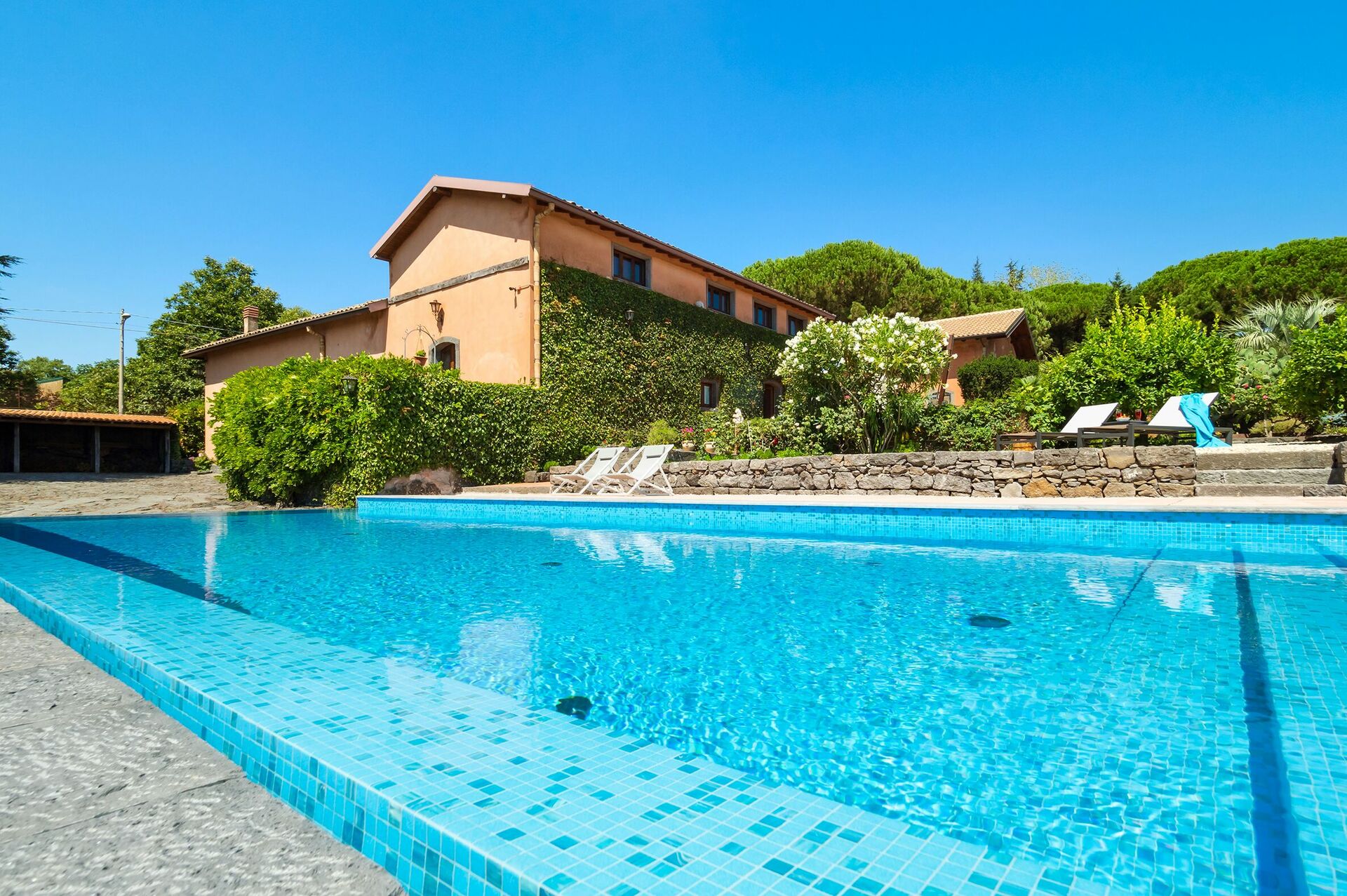Villa Palmento Rosa is a fantastic villa vacation rental with private pool in Sicily on the slopes of Etna, between the characteristic hamlets of Pedara and Trecastagni.