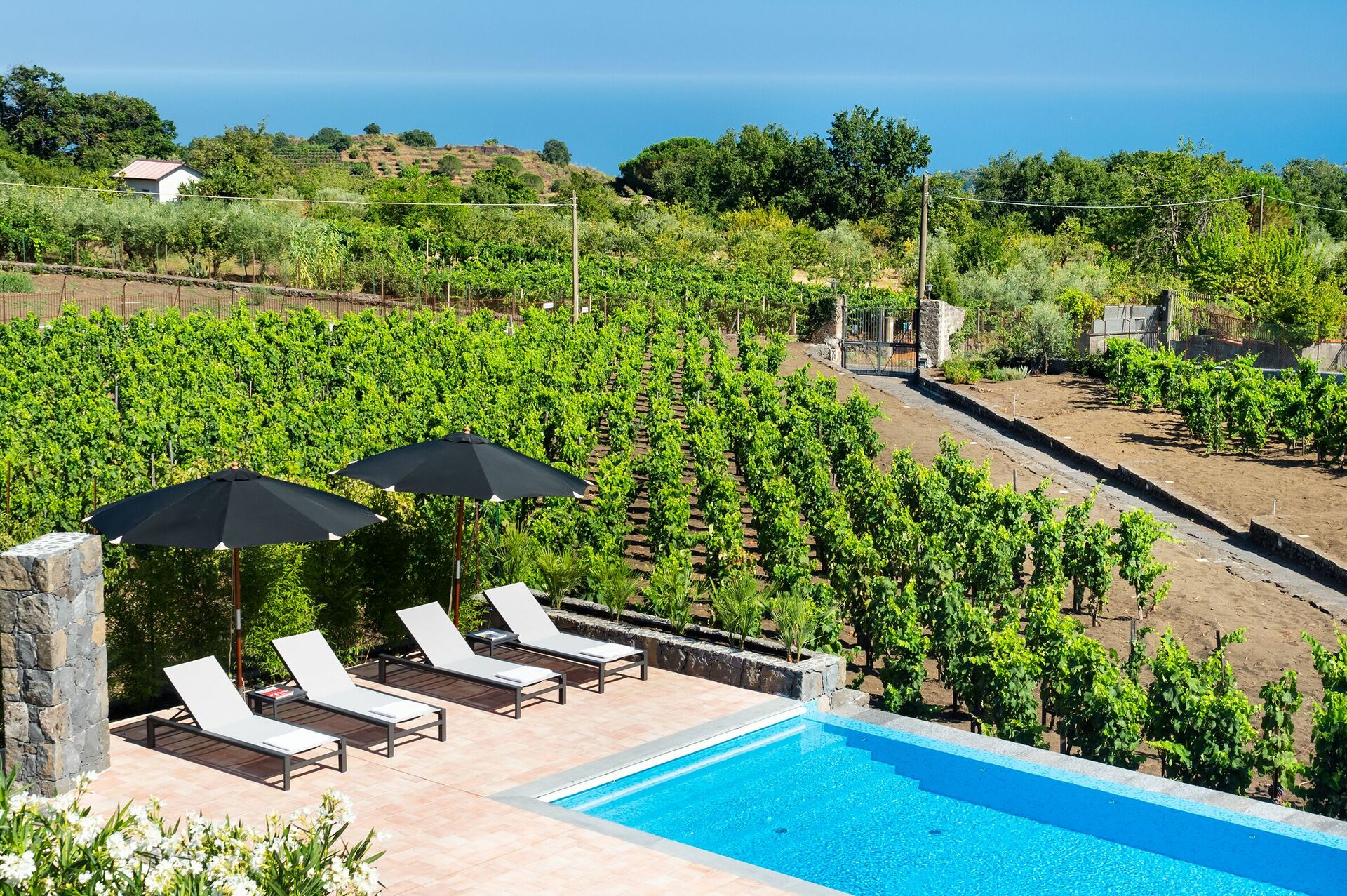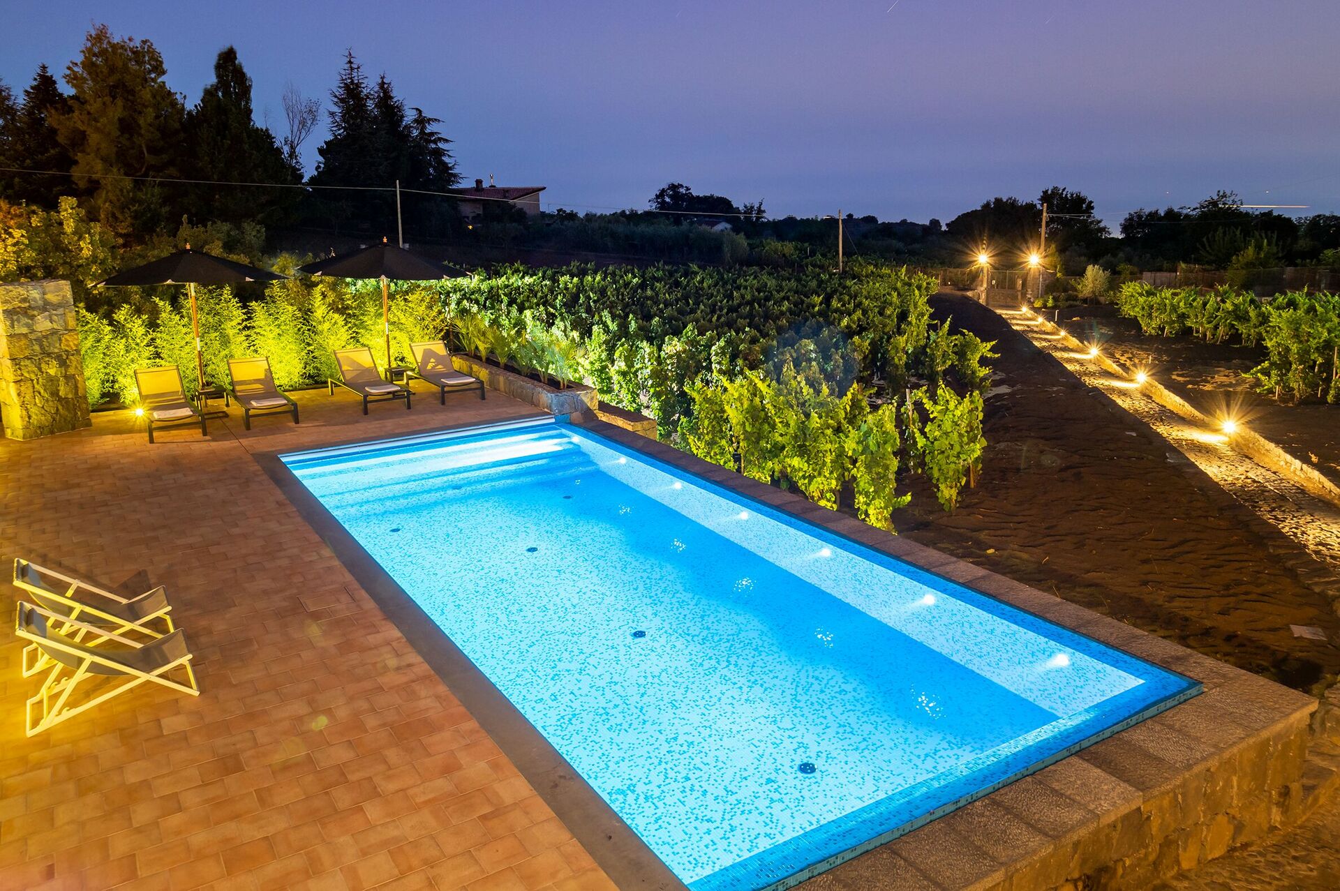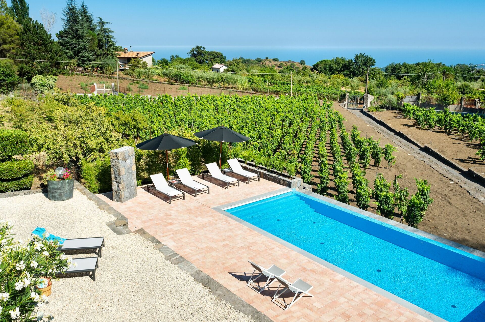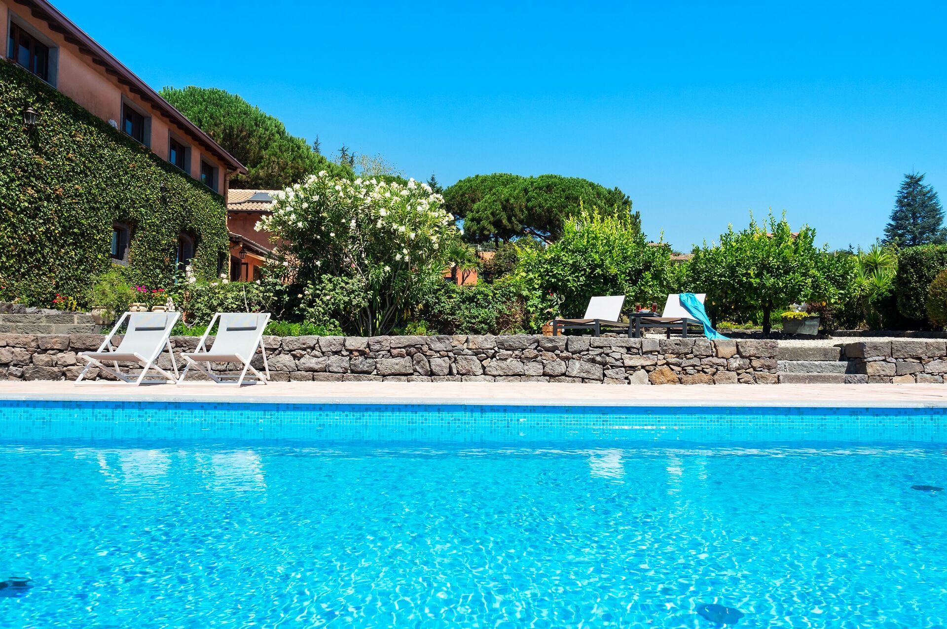 Villa Palmento Rosa is a fantastic villa vacation rental with private pool in Sicily on the slopes of Etna, between the characteristic hamlets of Pedara and Trecastagni.