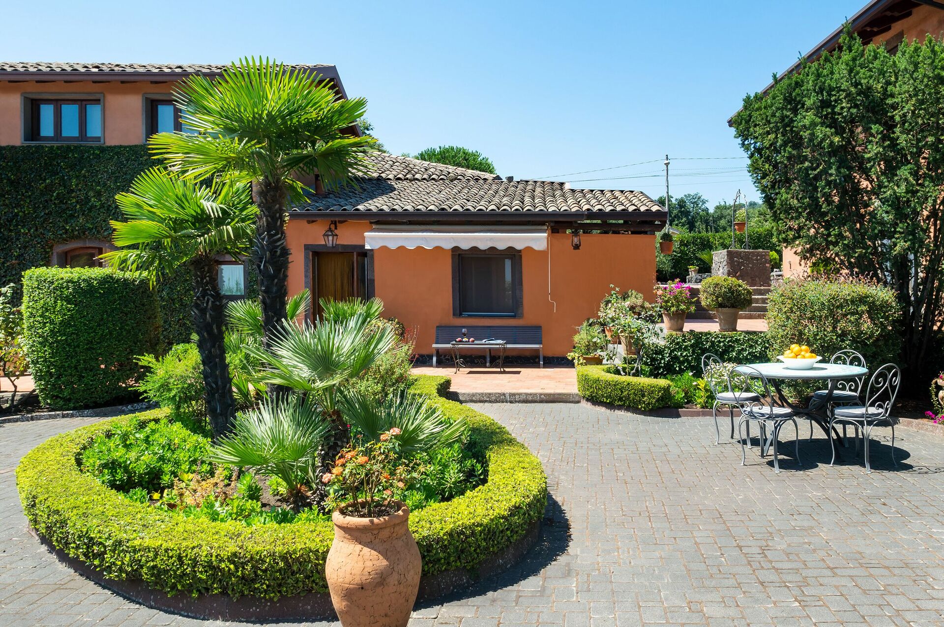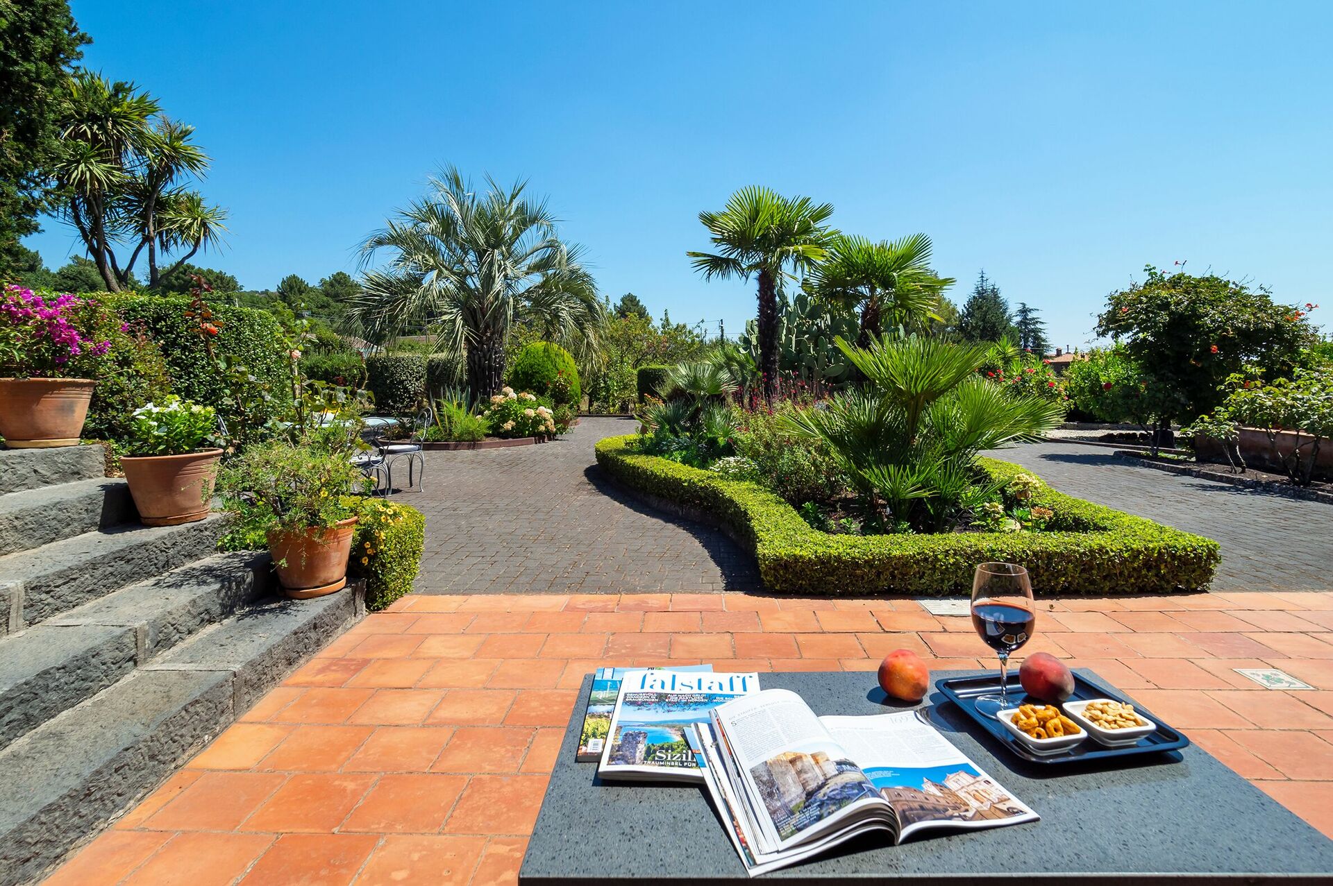Villa Palmento Rosa is ideal for families or groups of friends who desire a comfortable and relaxing stay in a tranquil, but not isolated, location. Here you can soak in the atmosphere and scents of the Sicilian countryside. It is also within easy reach of Etna Park and its charming villages, as well as the east coast’s famous locales.