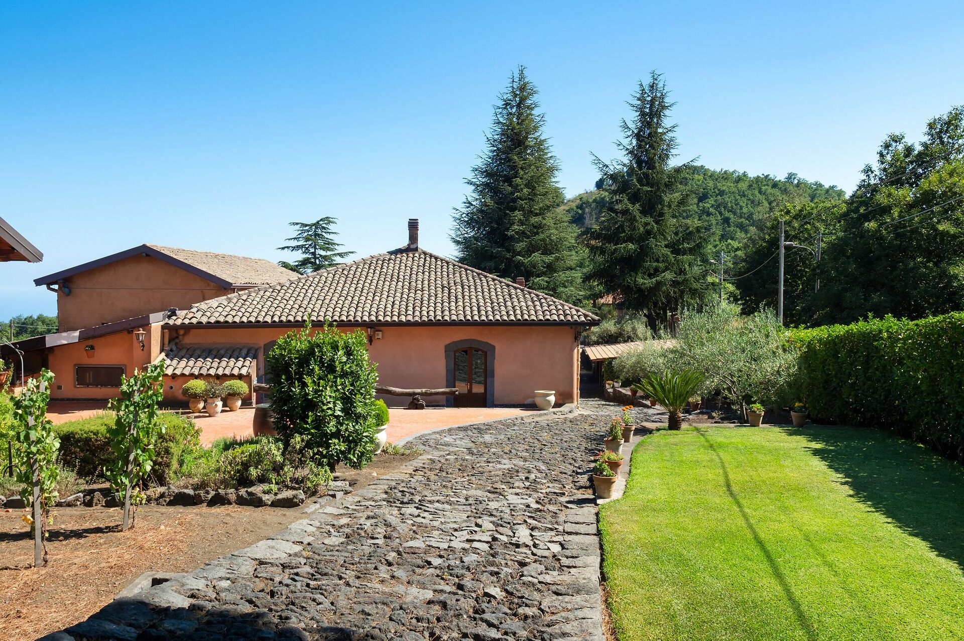 Distances: Pedara (shops of all kinds) 4 km away, Acireale (sea with rocky coast) 15 km, Etna (Zafferana Etnea) 17 km, Catania airport 32 km, Taormina 50 km, Syracuse 85 km away.