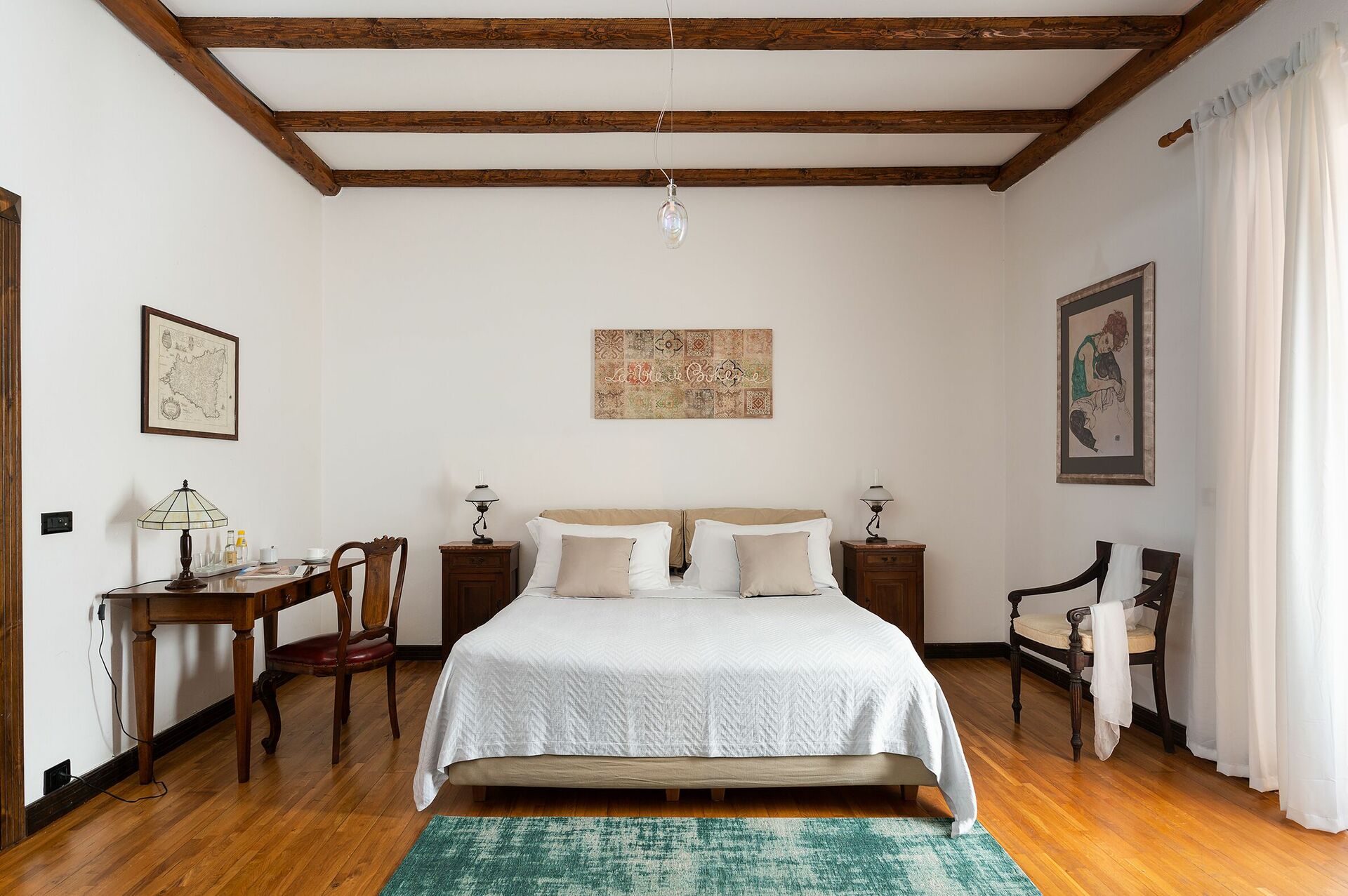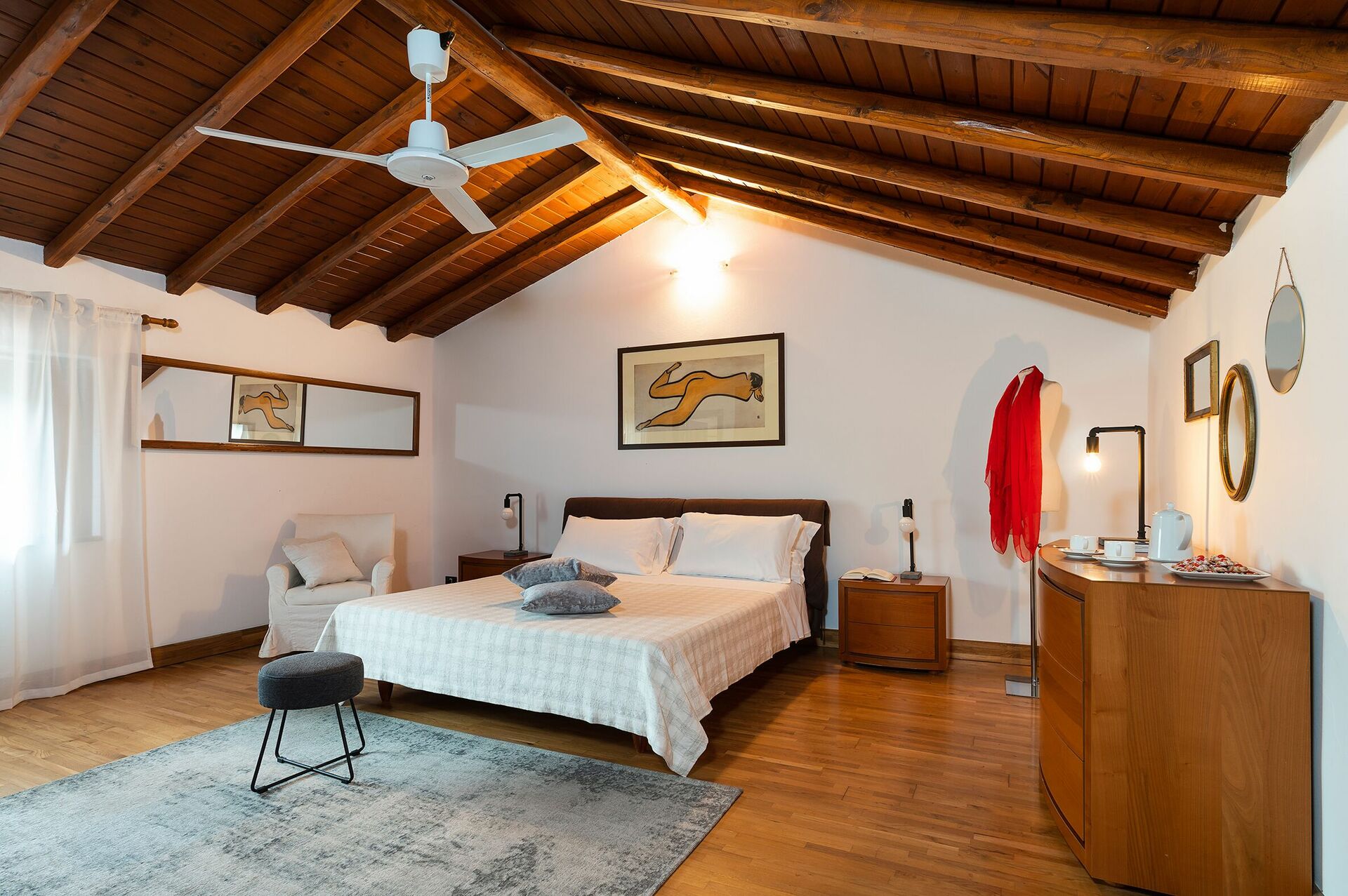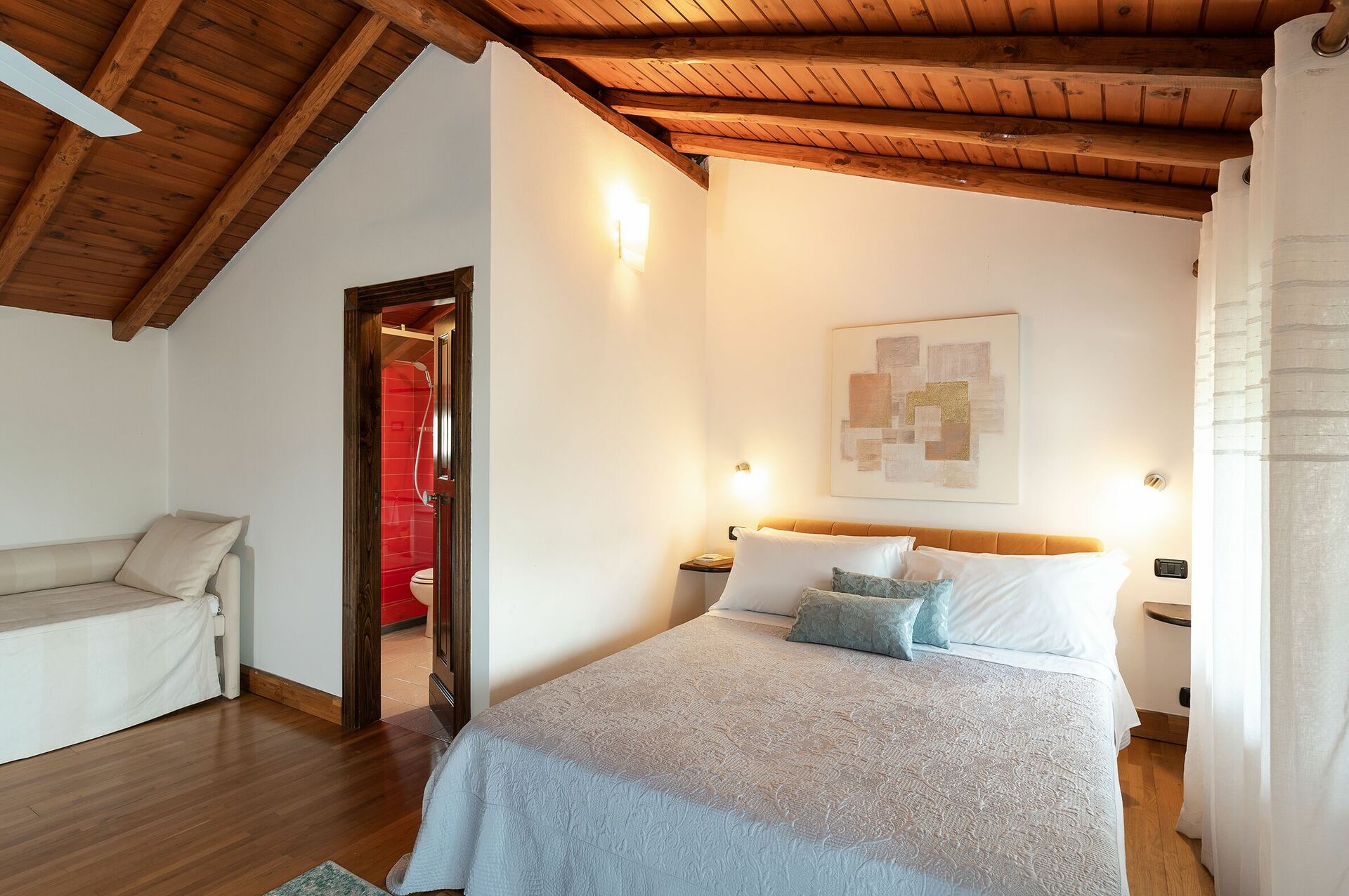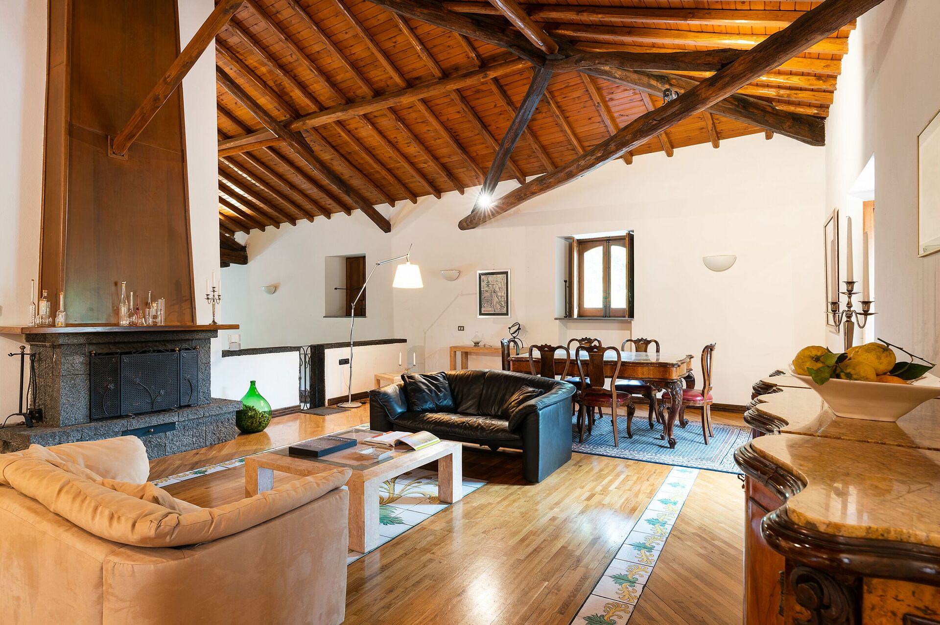 The owner has recently renovated Villa Palmento Rosa with the utmost care and love, maintaining its original style and spirit. Traditional architectural details have been preserved, such as the wooden beamed ceilings, terra cotta floors and lava flagstones.