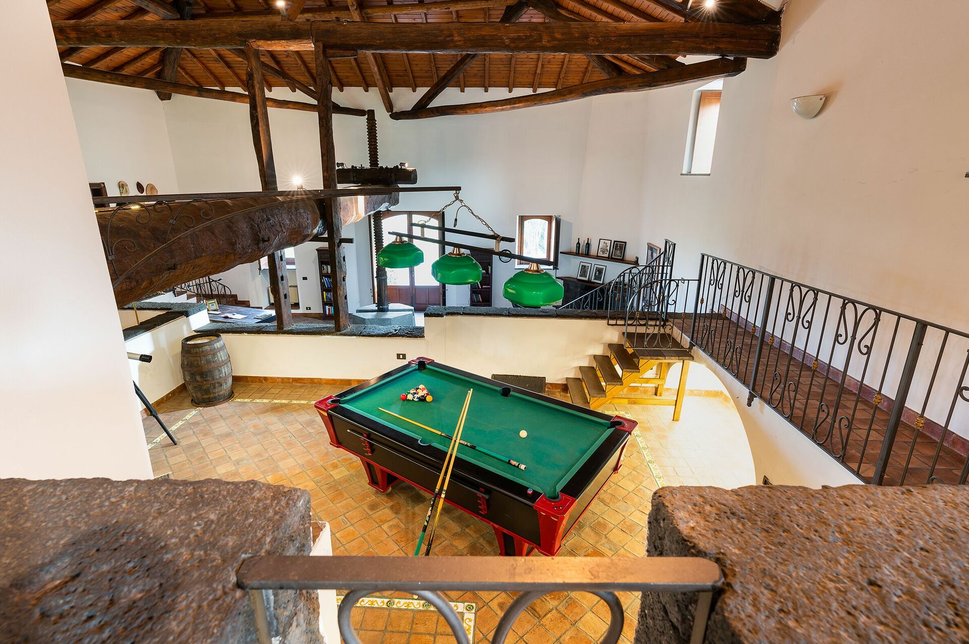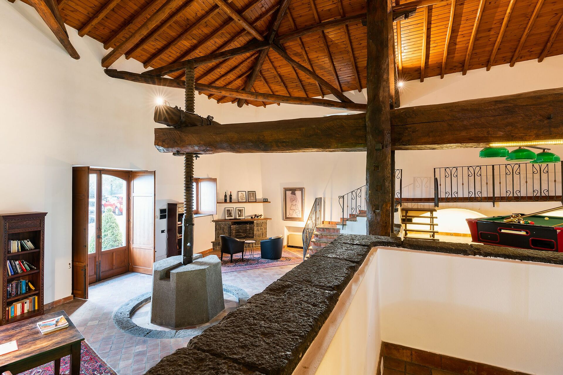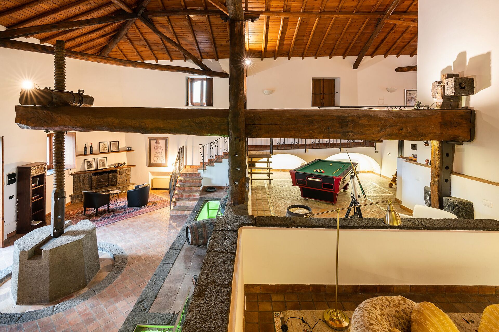 The split level house offers a spectacular, spacious living area in what was once the old winemaking room; a well-equipped modern kitchen; and four comfortable double bedrooms, each with private bathroom.