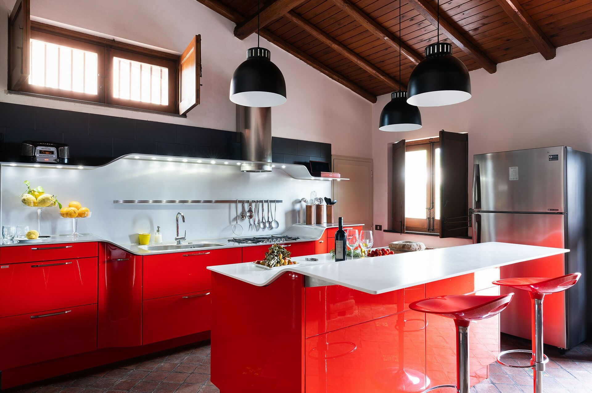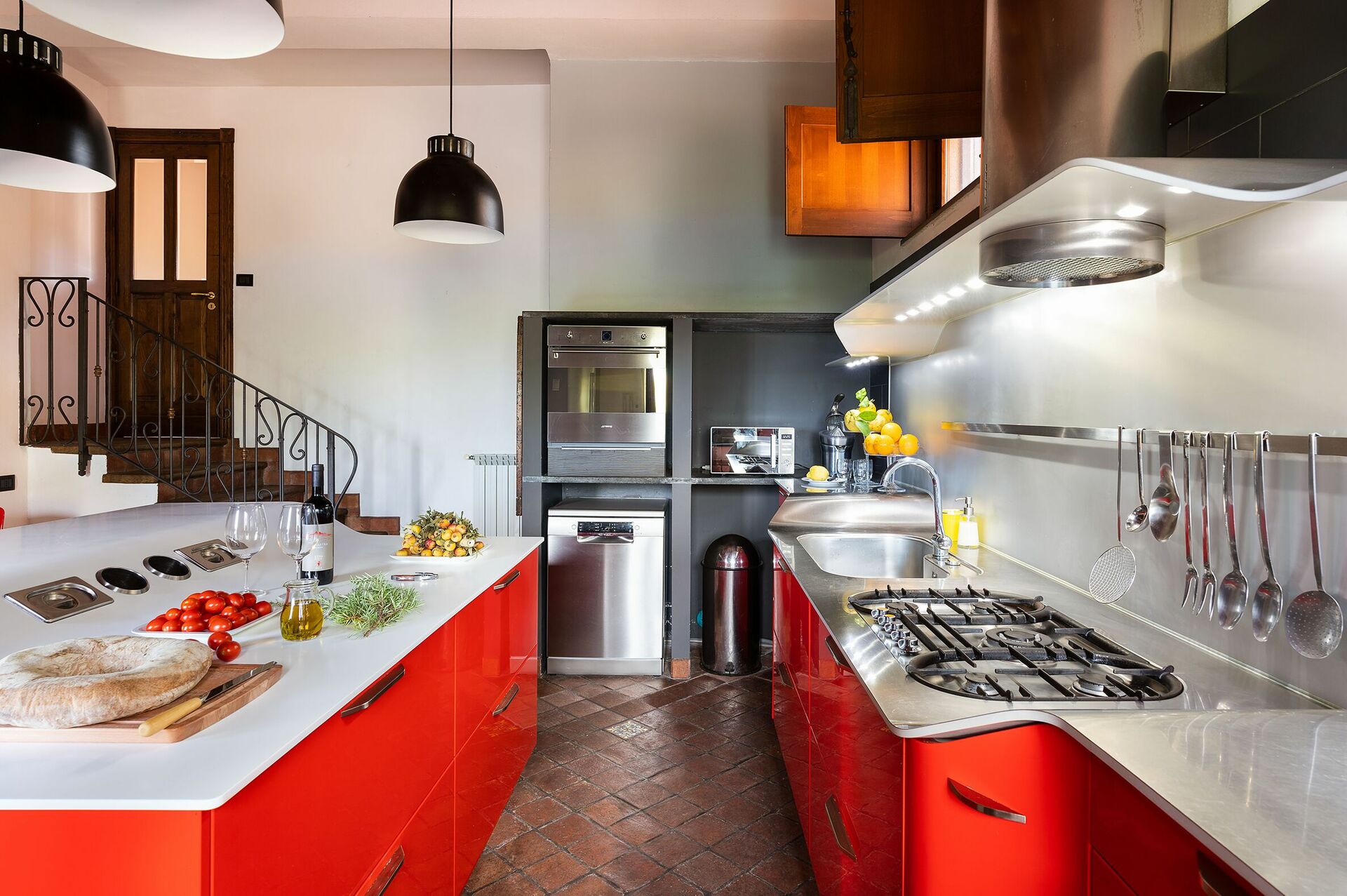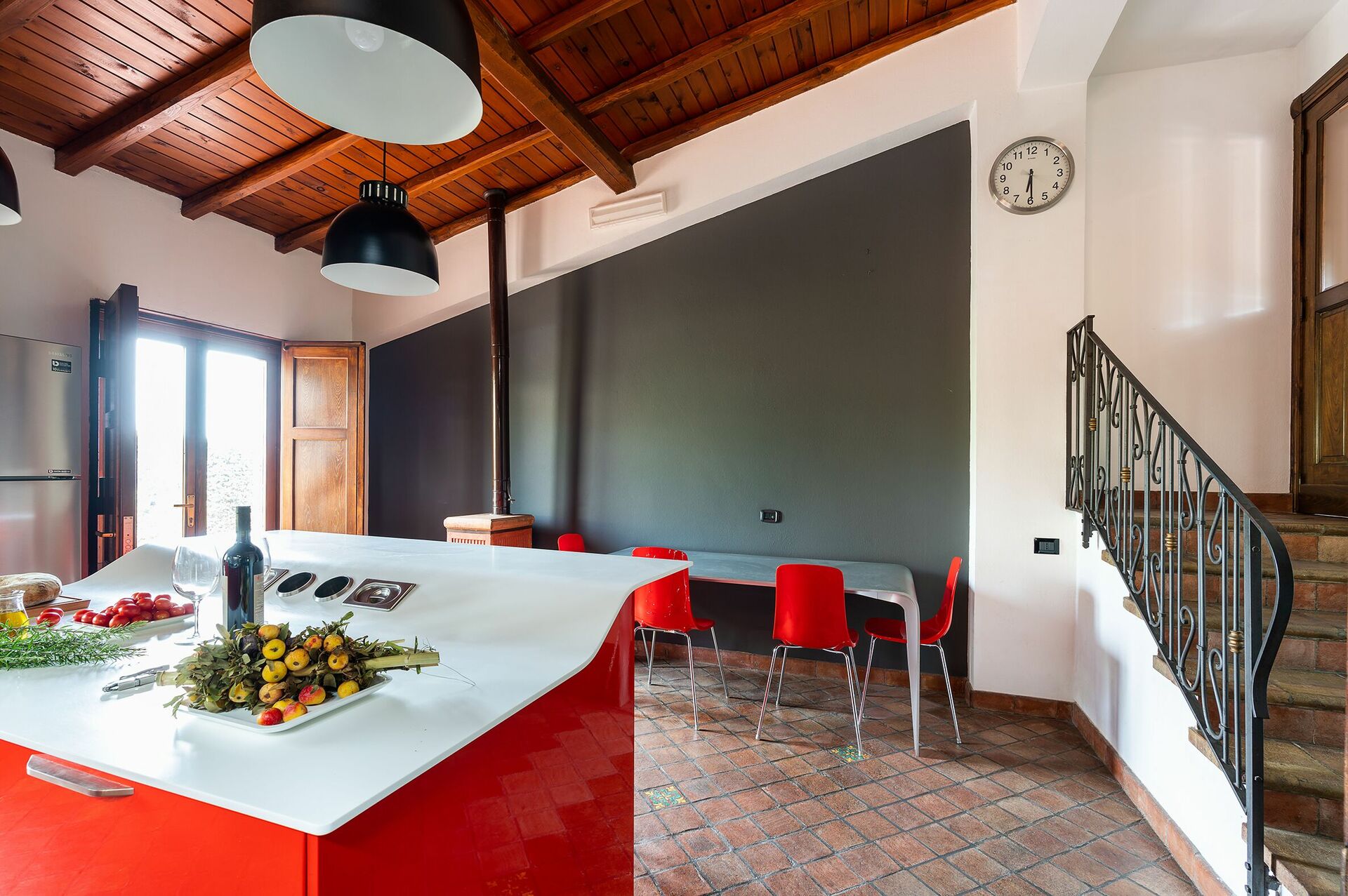 The split level house offers a spectacular, spacious living area in what was once the old winemaking room; a well-equipped modern kitchen; and four comfortable double bedrooms, each with private bathroom.