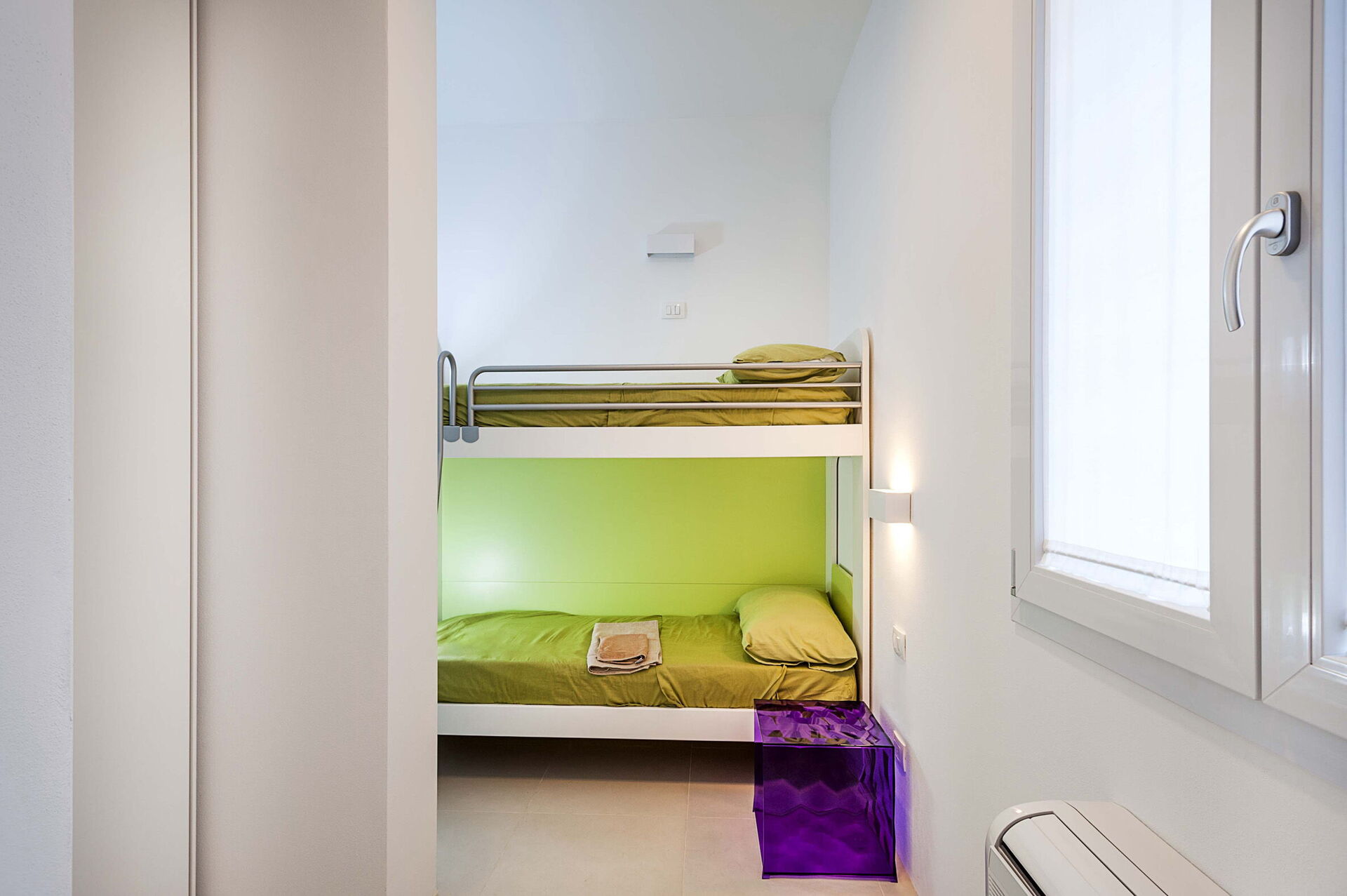 Begane grond: woonkamer met kitchenette (kookplaat, oven, koelkast, airconditioning, TV), 1 slaapkamer met tweepersoonsbed (airconditioning, klamboe), 1 slaapkamer met stapelbed (airconditioning, klamboe) , 1 badkamer met douche.