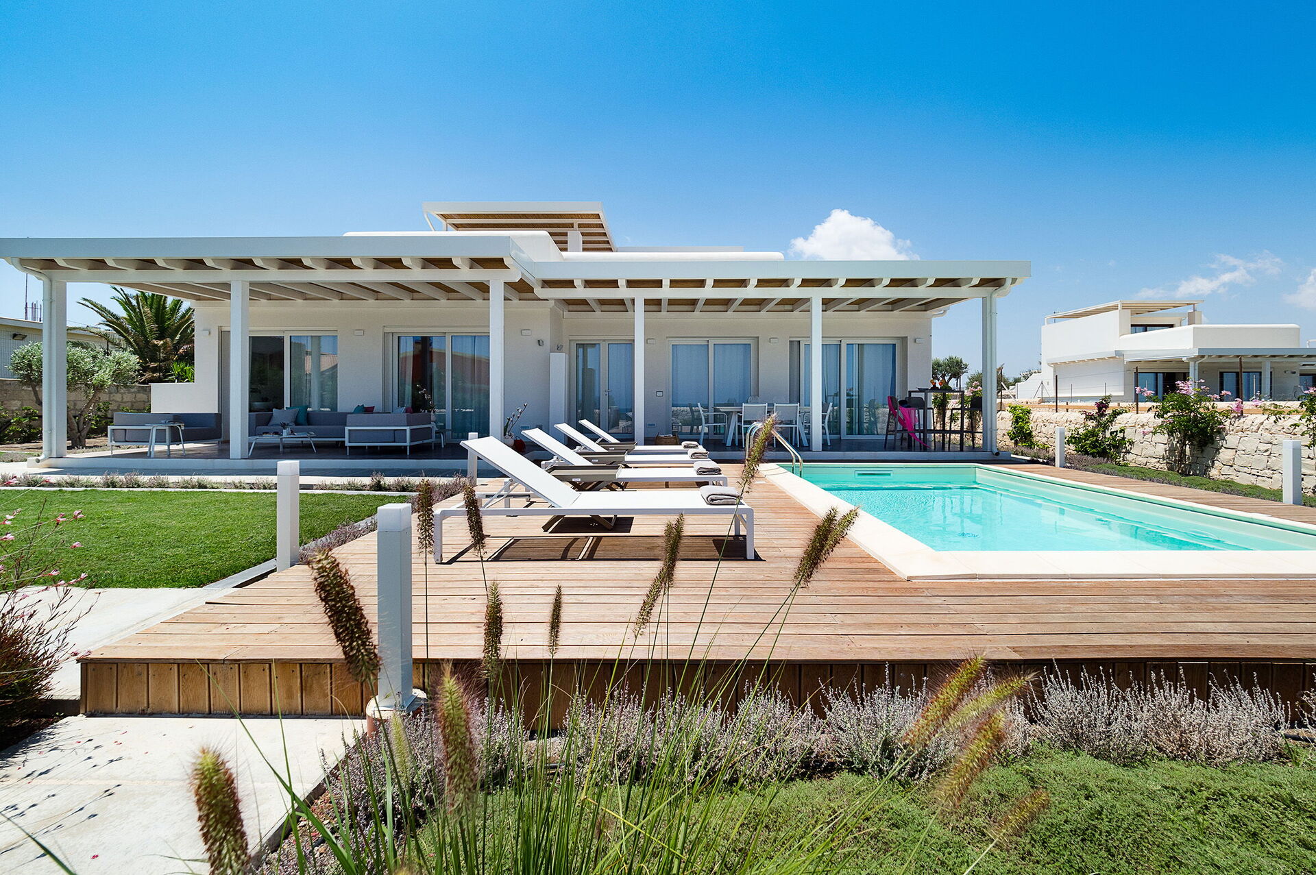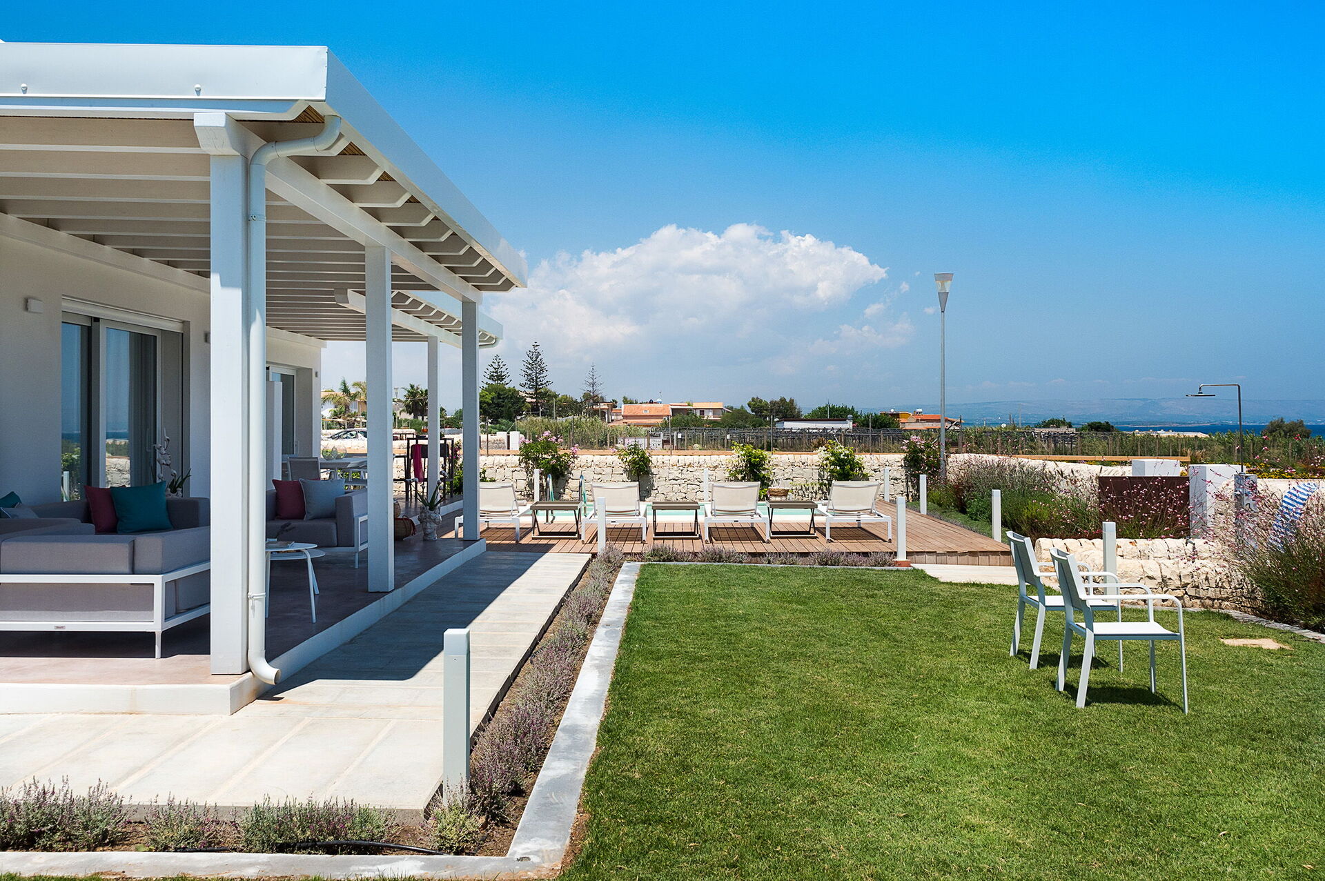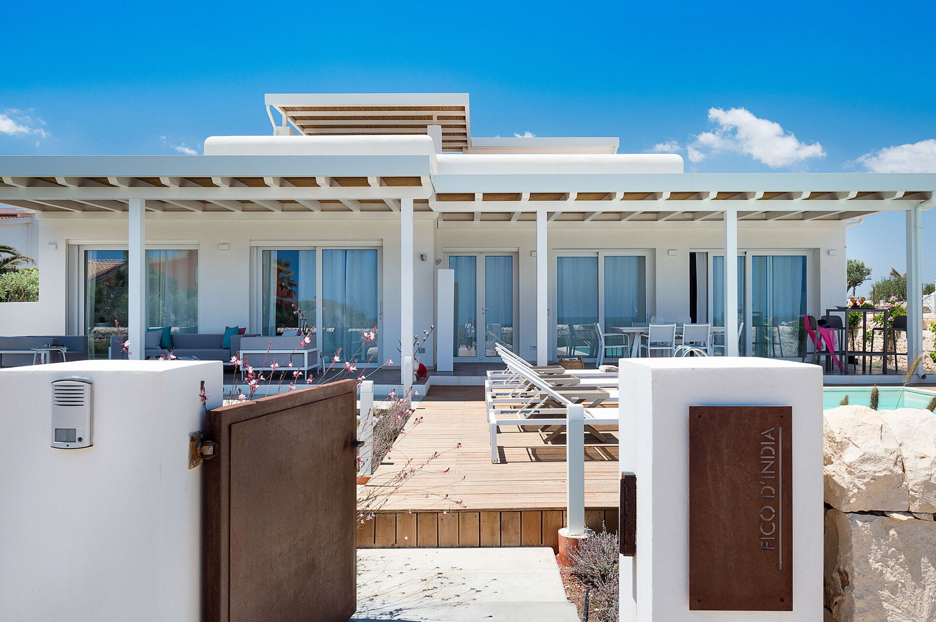 Villa San Lorenzo Fico d'India is een prachtige villa in mediterrane stijl op slechts een steenworp afstand van de zee in San Lorenzo, een populaire badplaats met een van de mooiste stranden van Sicilië.