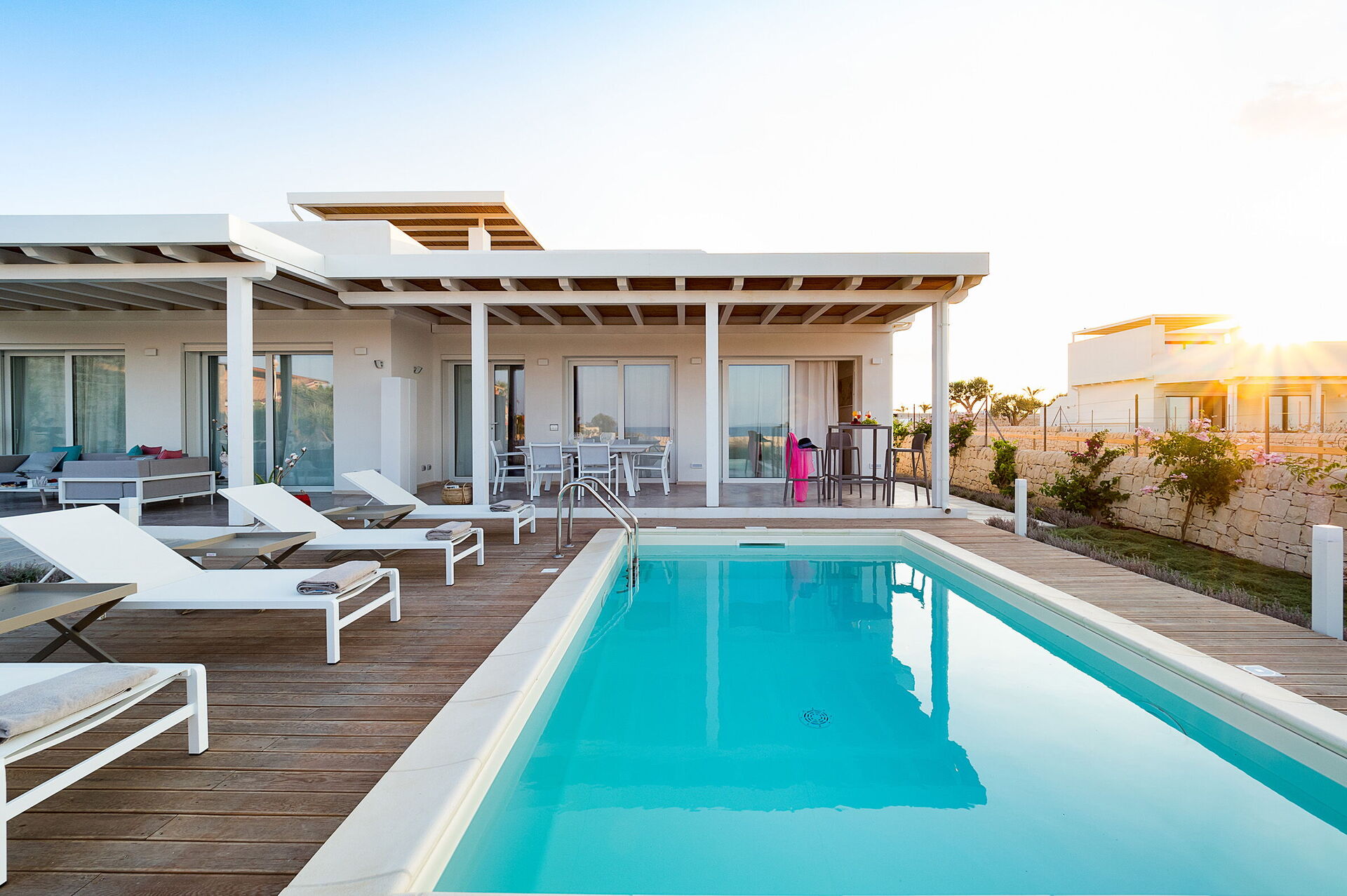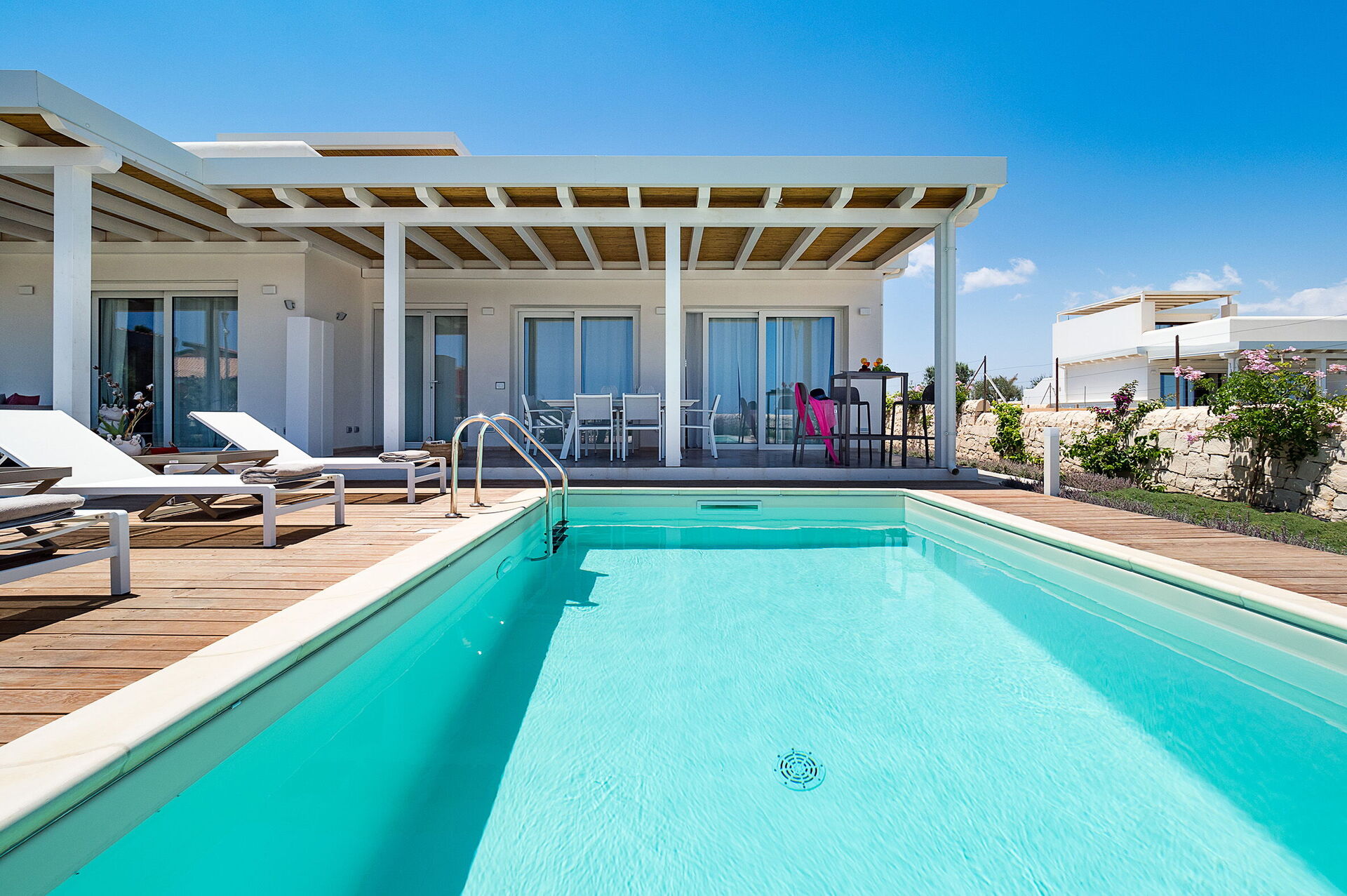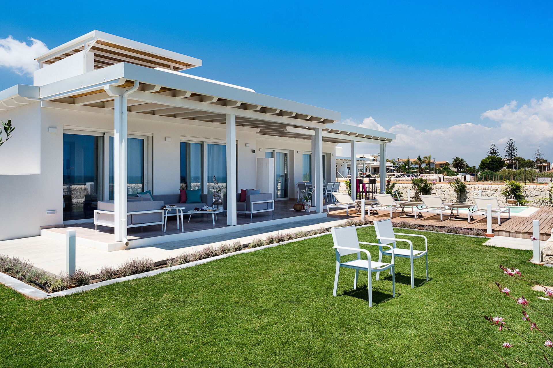 Villa San Lorenzo Fico d'India is een prachtige villa in mediterrane stijl op slechts een steenworp afstand van de zee in San Lorenzo, een populaire badplaats met een van de mooiste stranden van Sicilië.