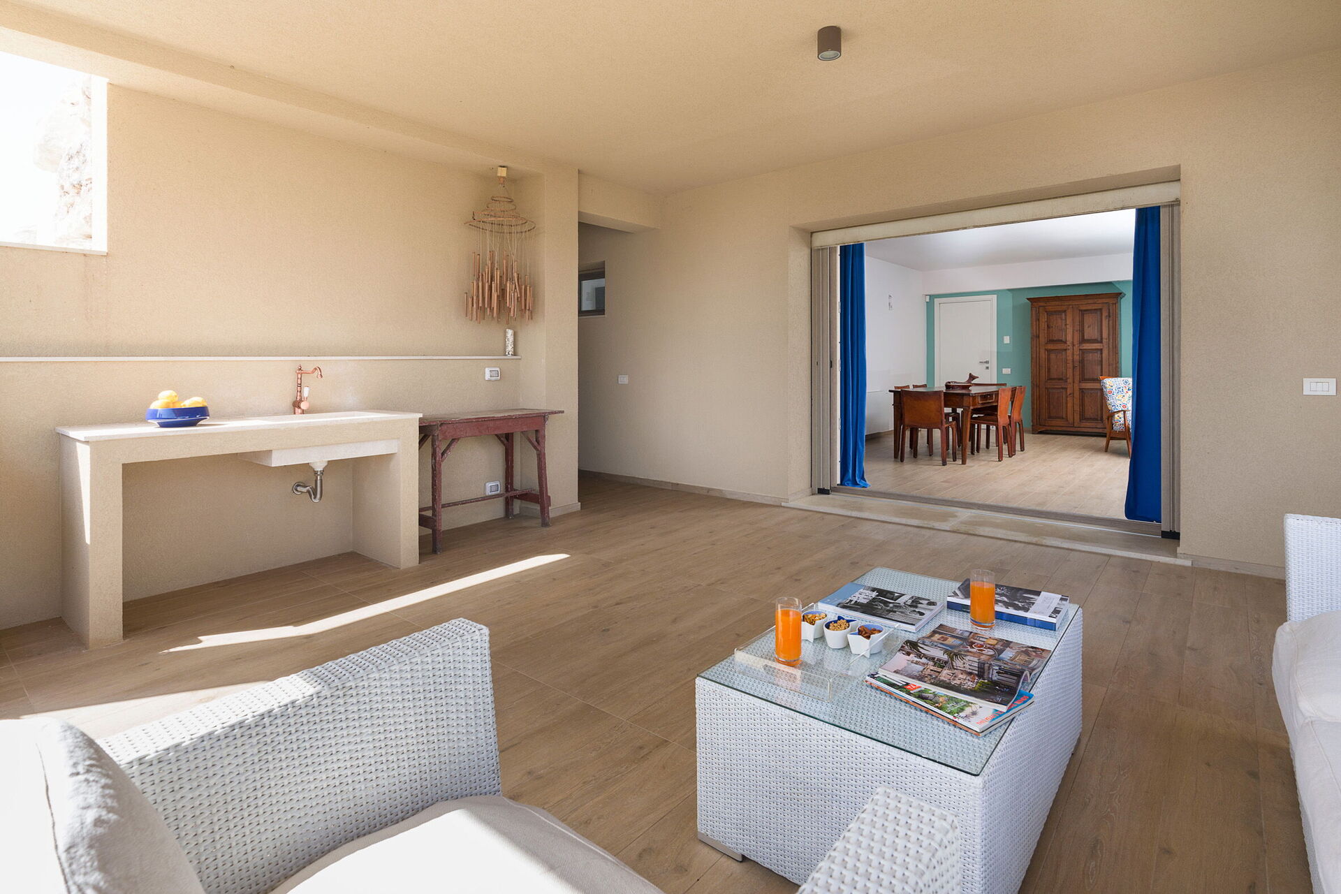 Het hoogtepunt van het pand is een groot terras met uitzicht op de zee en een ruimte om buiten te eten; vanaf hier kunt u ontspannen en eten terwijl u geniet van een fantastisch panoramisch uitzicht op het dorp Sampieri en de zee.