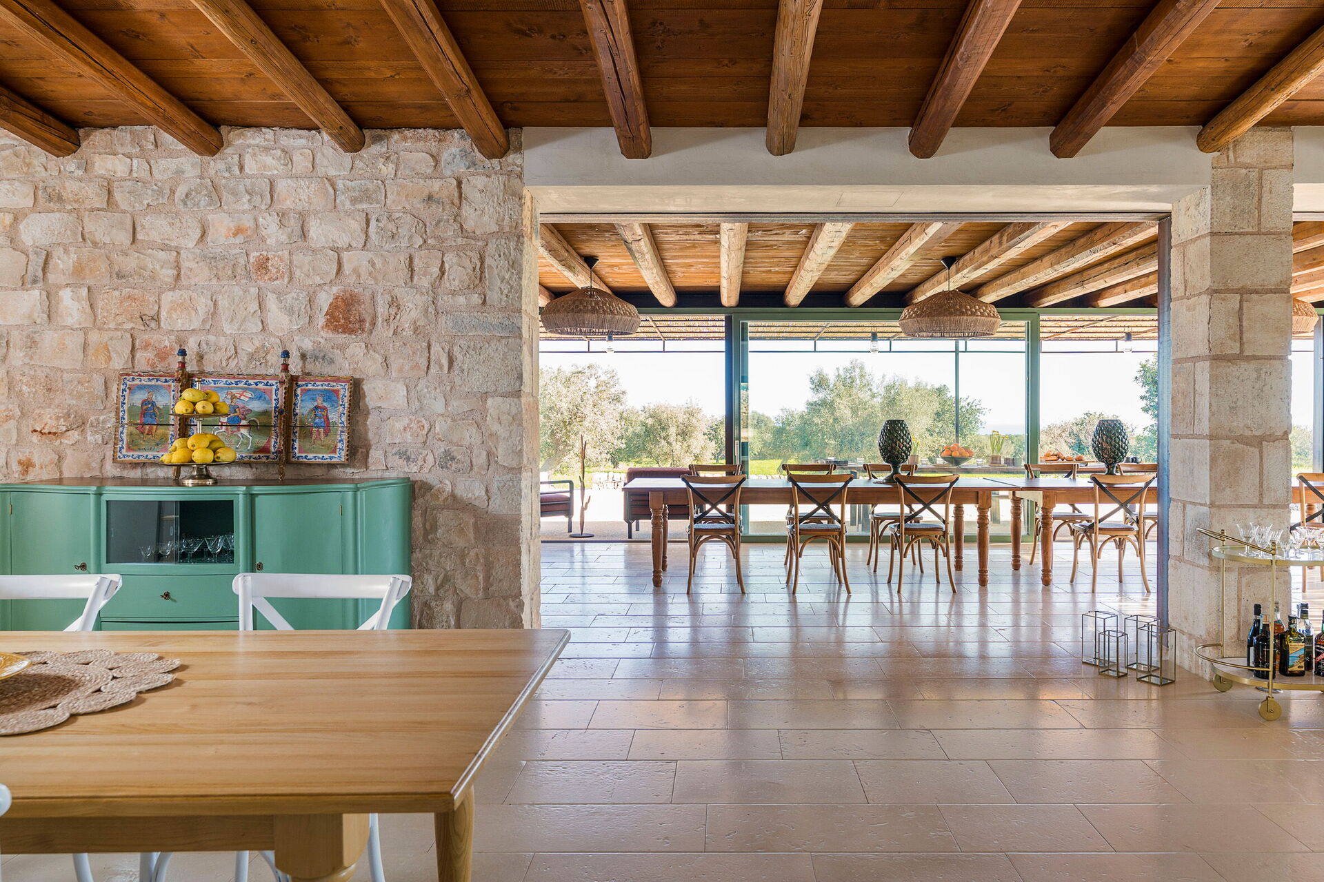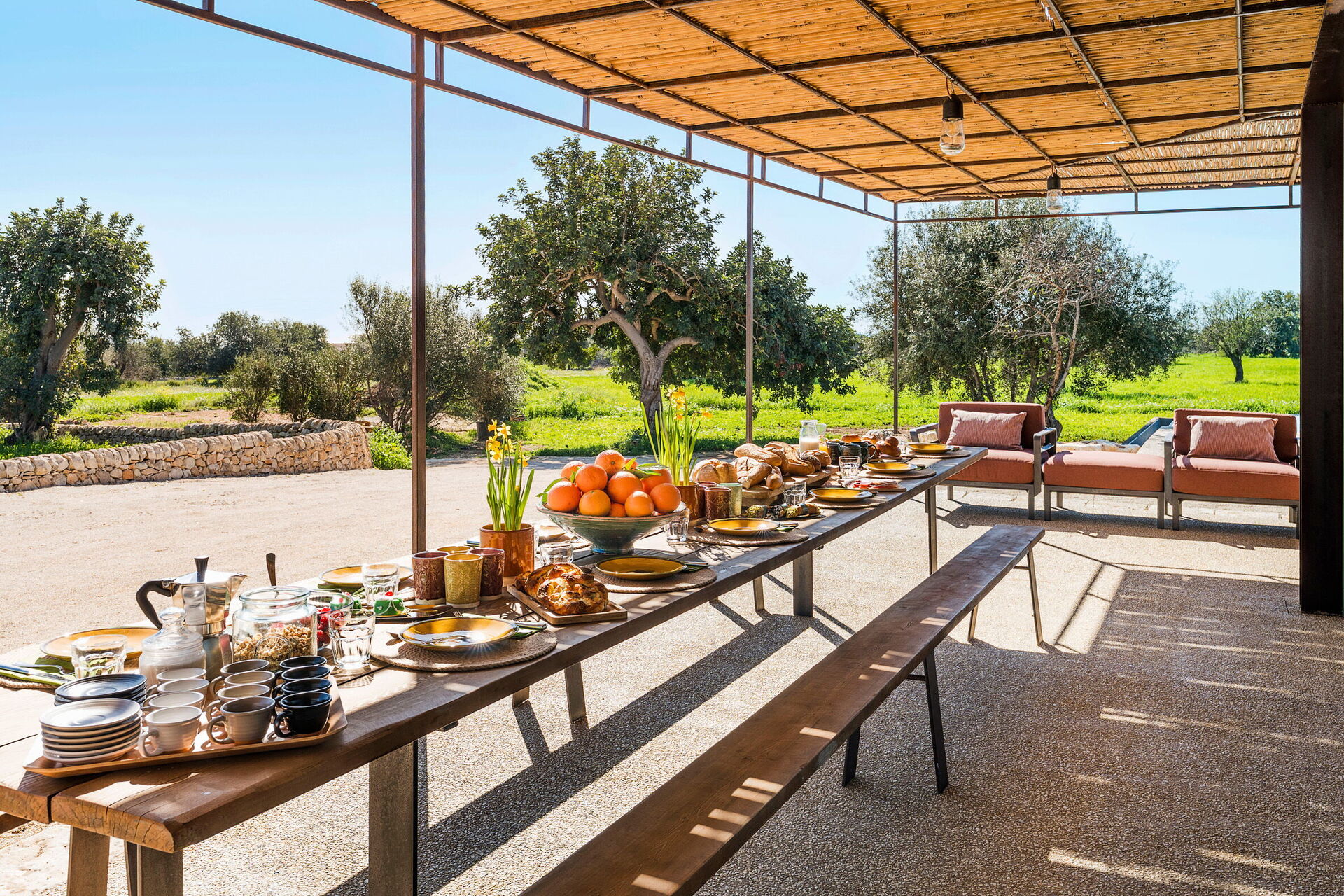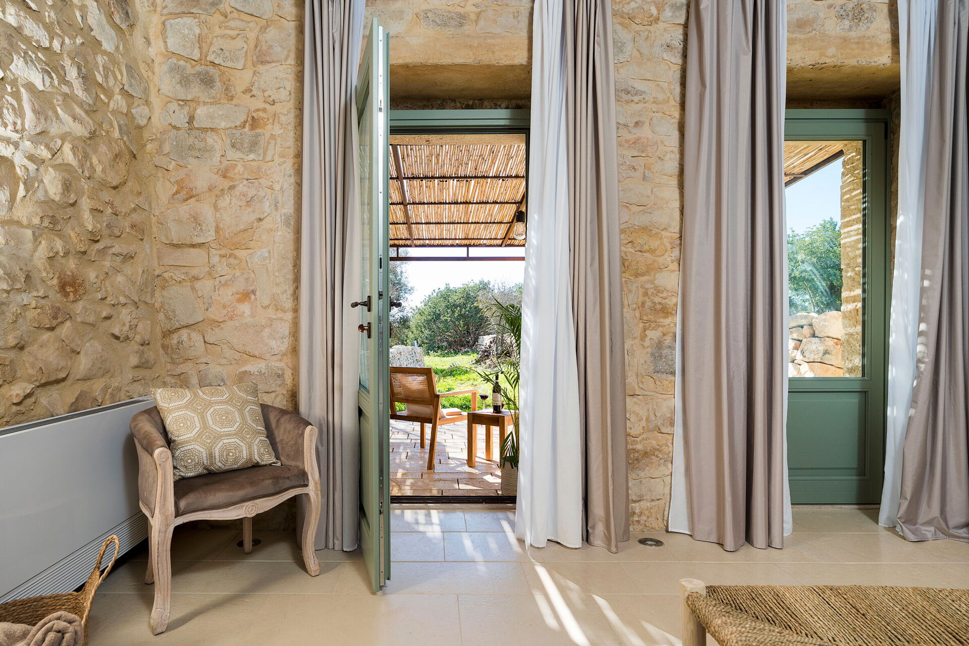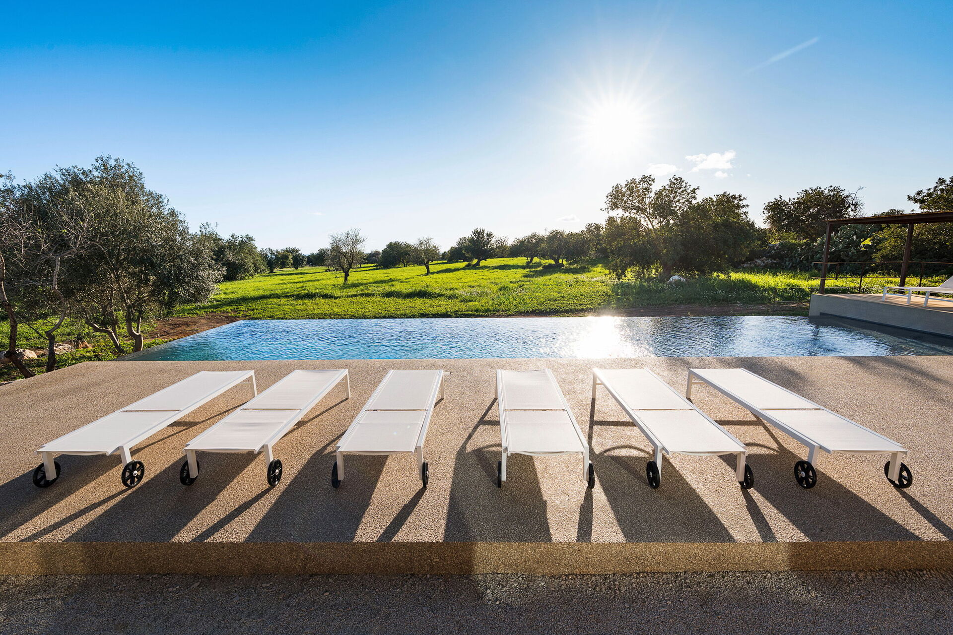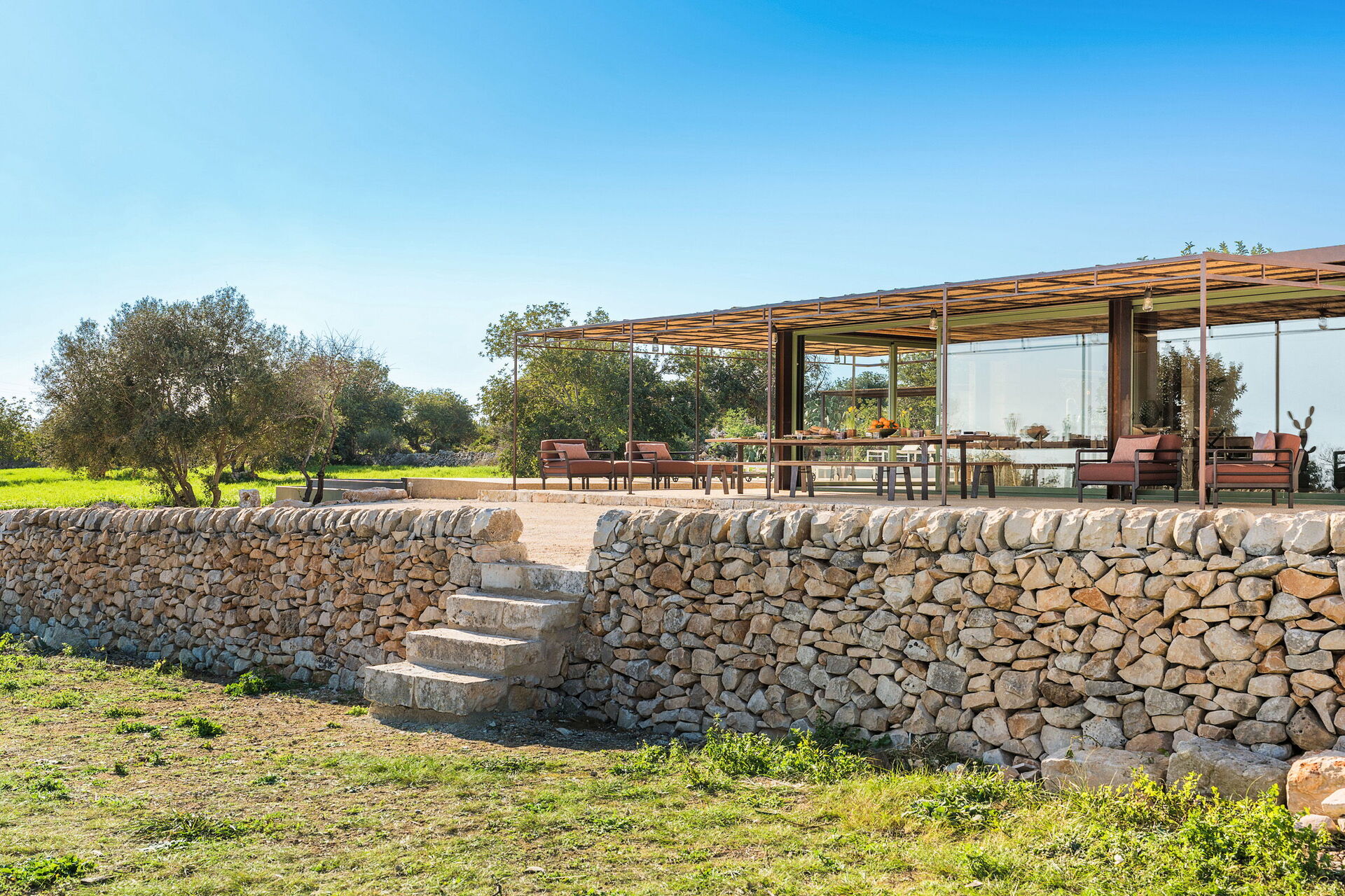 Het landgoed biedt veel buitenruimtes waar gasten tijd kunnen doorbrengen met familie of vrienden: buiten dineren, ontspannen bij het zoutwaterzwembad of op een ligbed met jacuzzi, en onvergetelijke momenten beleven in een schilderachtige omgeving onder de Siciliaanse zon.