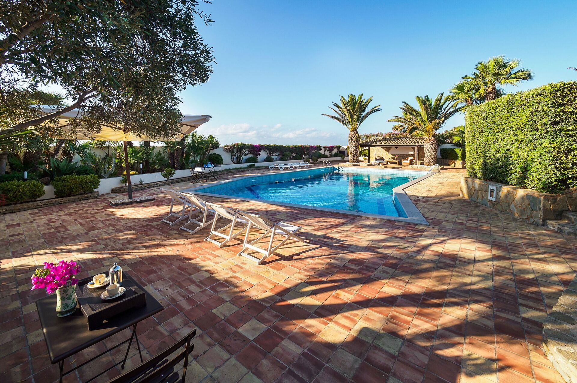 De vakantievilla beschikt over een goed onderhouden, weelderige tuin, een mooi zwembad met zonneterras en ruime, goed uitgeruste terrassen (barbecue en eethoek): dé perfecte plek om te ontbijten of buiten te eten.