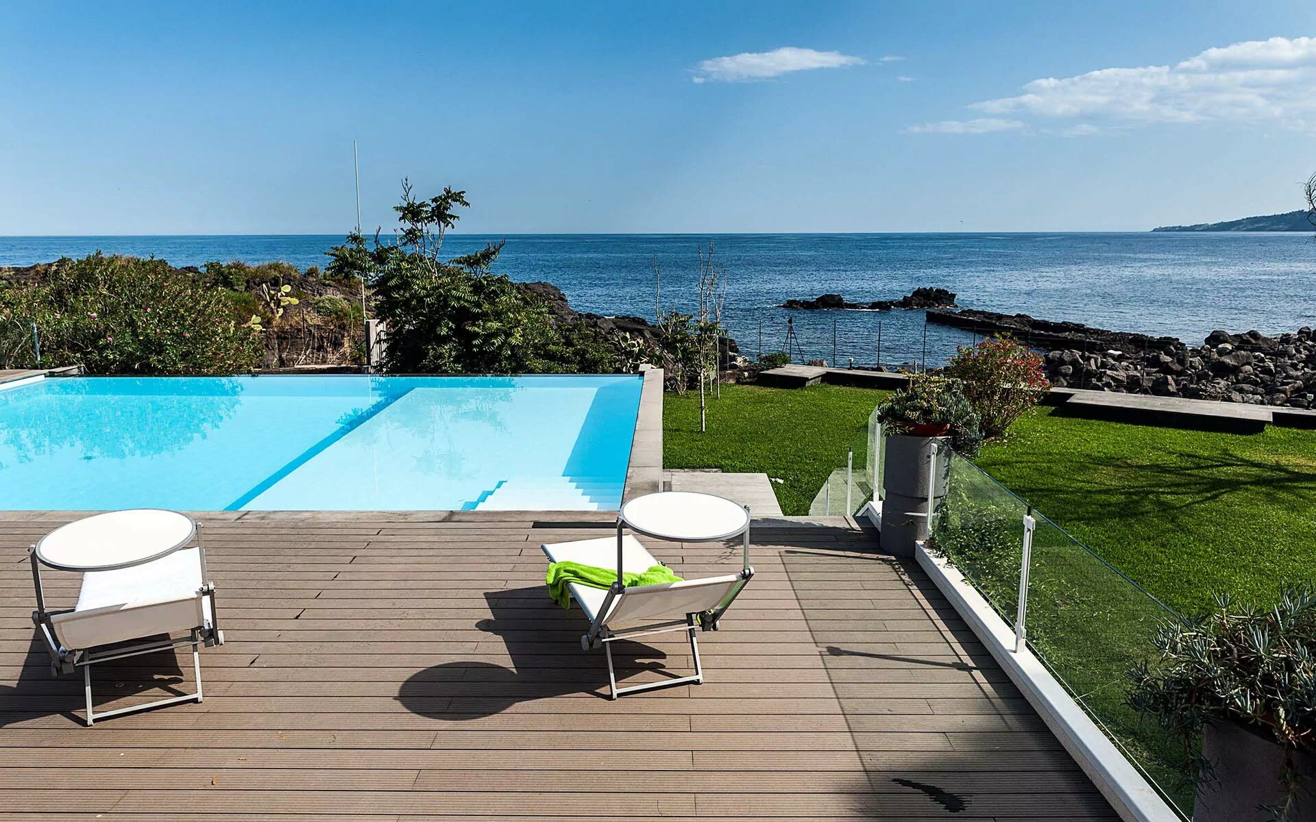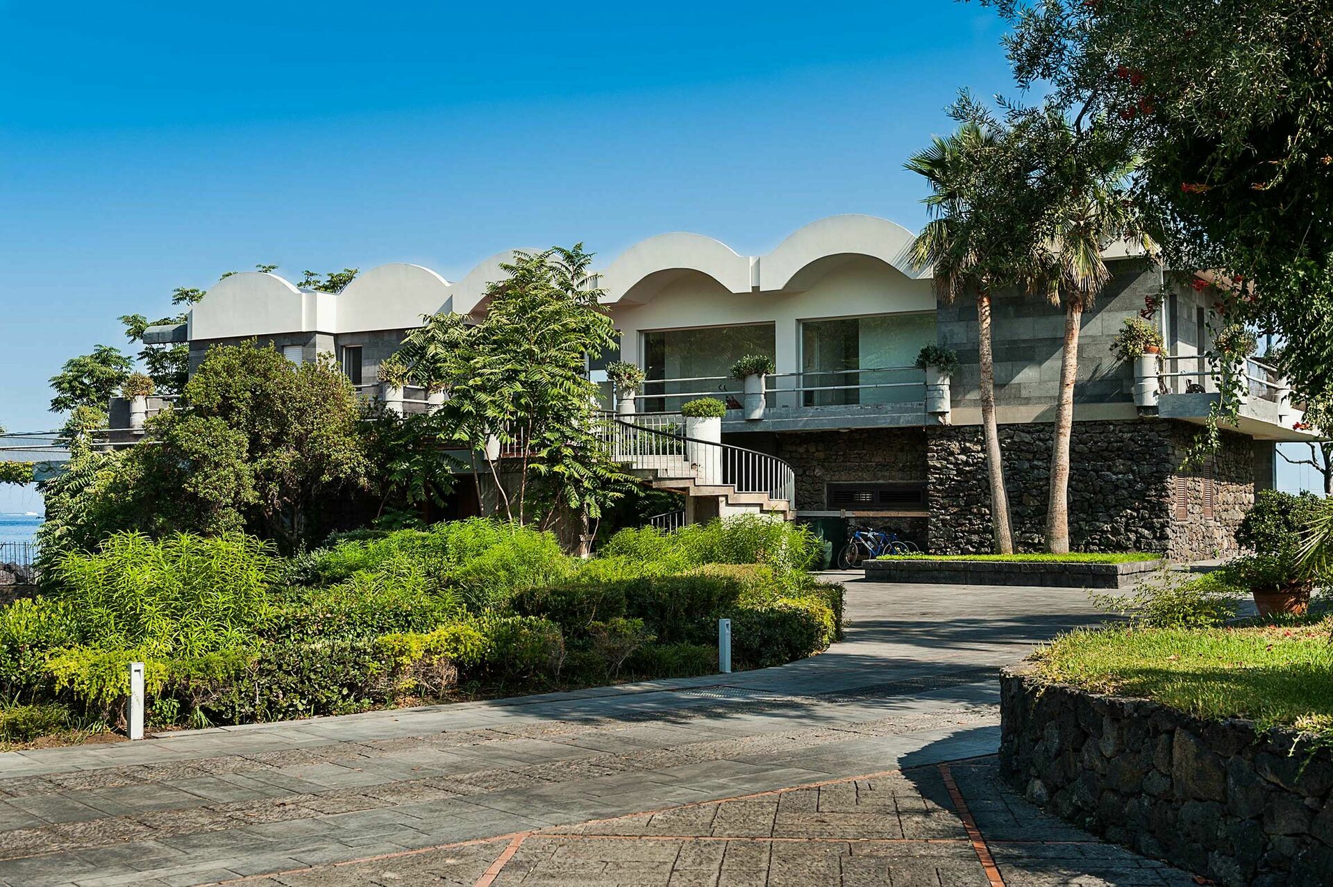 Het pand ligt op slechts een paar stappen van de rotsachtige kust en biedt directe toegang tot de zee. Er is ook een prachtig zwembad, evenals een grote, goed onderhouden tuin met gazon. De appartementen zijn smaakvol ingericht en bieden een ontspannen sfeer.