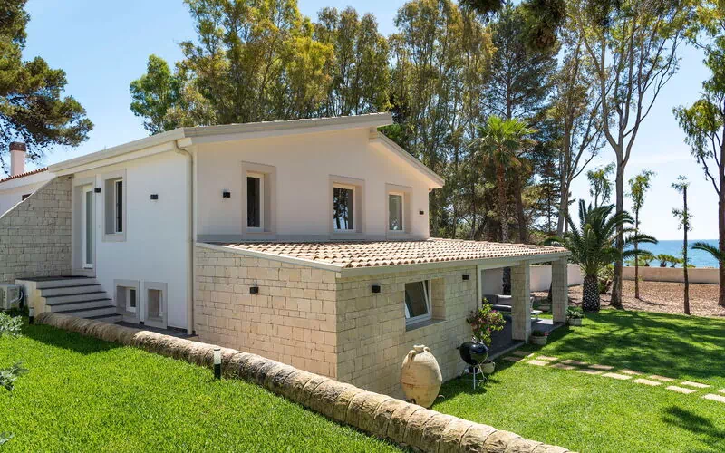 De villa voor twee gezinnen is volledig vrijstaand en privé. De exclusieve locatie op slechts enkele meters van de zee is uniek in zijn soort: vanuit de tuin is er directe toegang tot de kliffen en de Fanusa-kust, beroemd om zijn kristalhelder water en een buitengewone zeebodem rijk aan zeeleven.