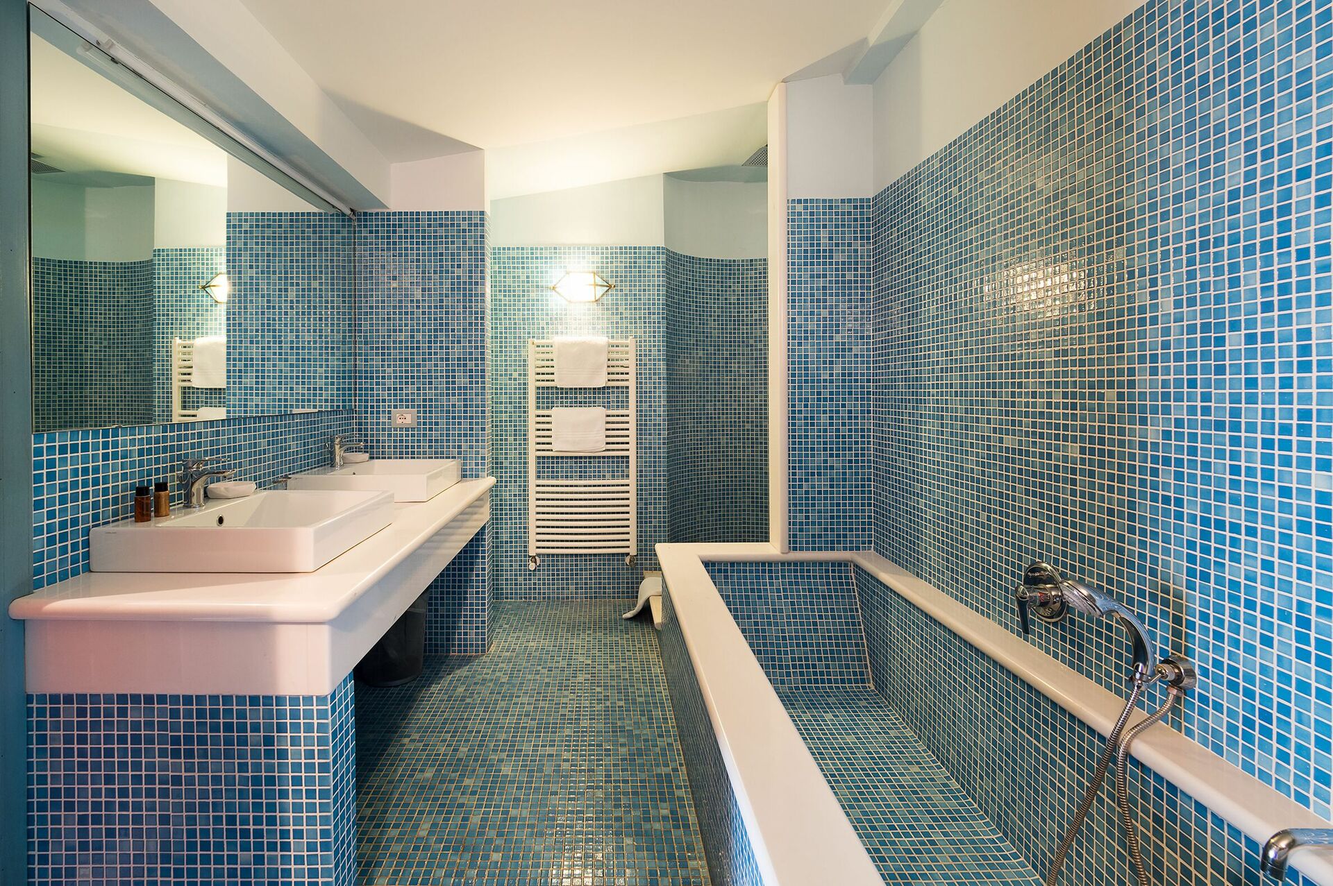 Eerste verdieping: 1 slaapkamer met tweepersoonsbed met en-suite douche en bad, 1 slaapkamer met tweepersoonsbed, 1 badkamer met douche, 1 slaapkamer met tweepersoonsbed met en-suite douche, 1 slaapkamer met twee eenpersoonsbedden met en-suite douche