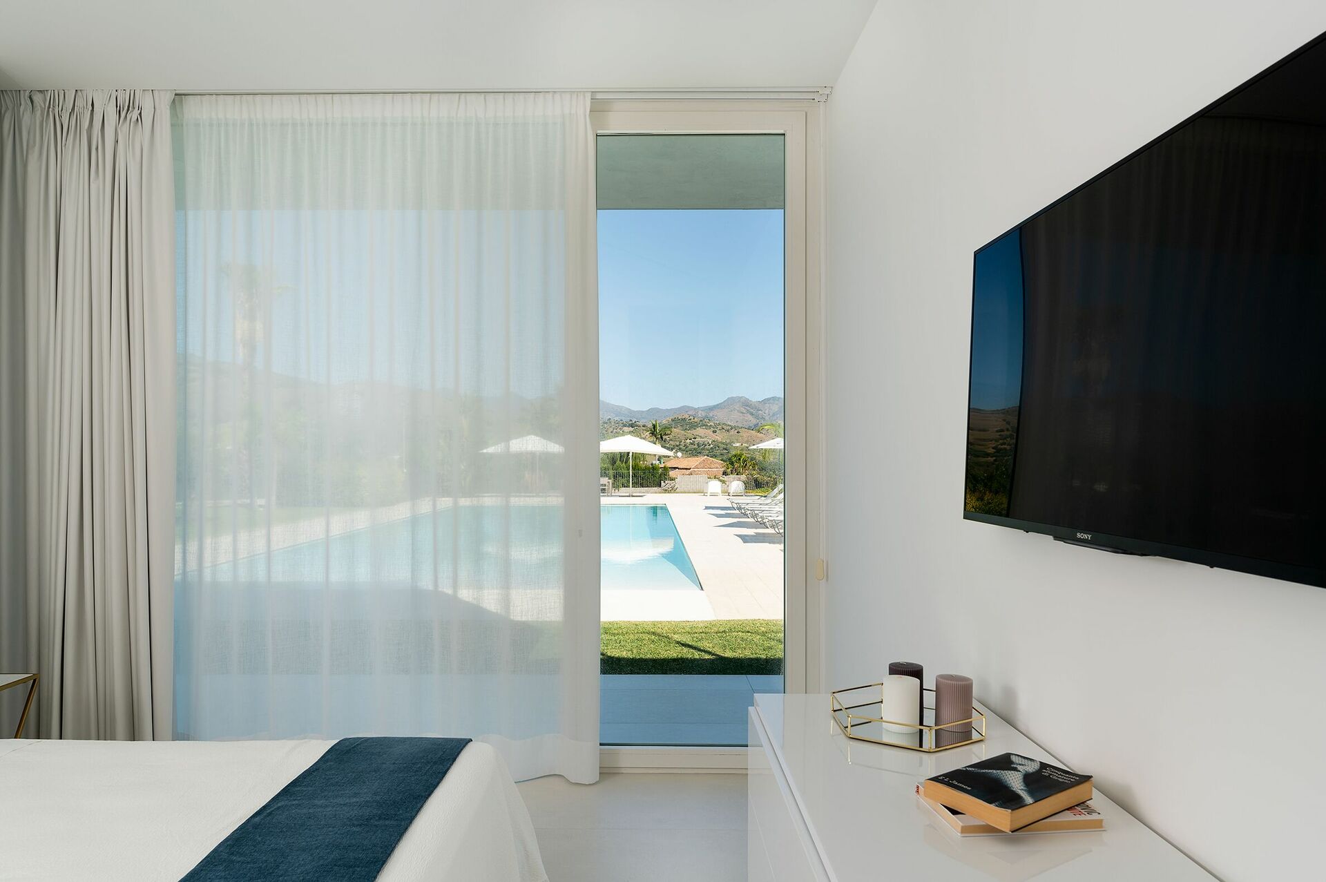 Deze exclusieve, nieuwgebouwde eigentijdse villa bestaat uit een hoofdhuis en een bijgebouw. Gebouwd in twee niveaus, heeft het landhuis een licht, gezellig interieur met grote glazen deuren die uitkomen op de tuin en het omringende landschap.