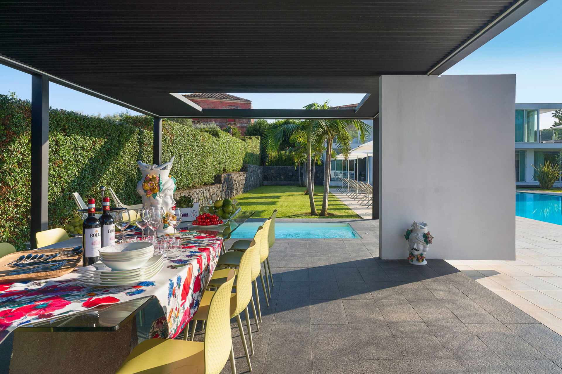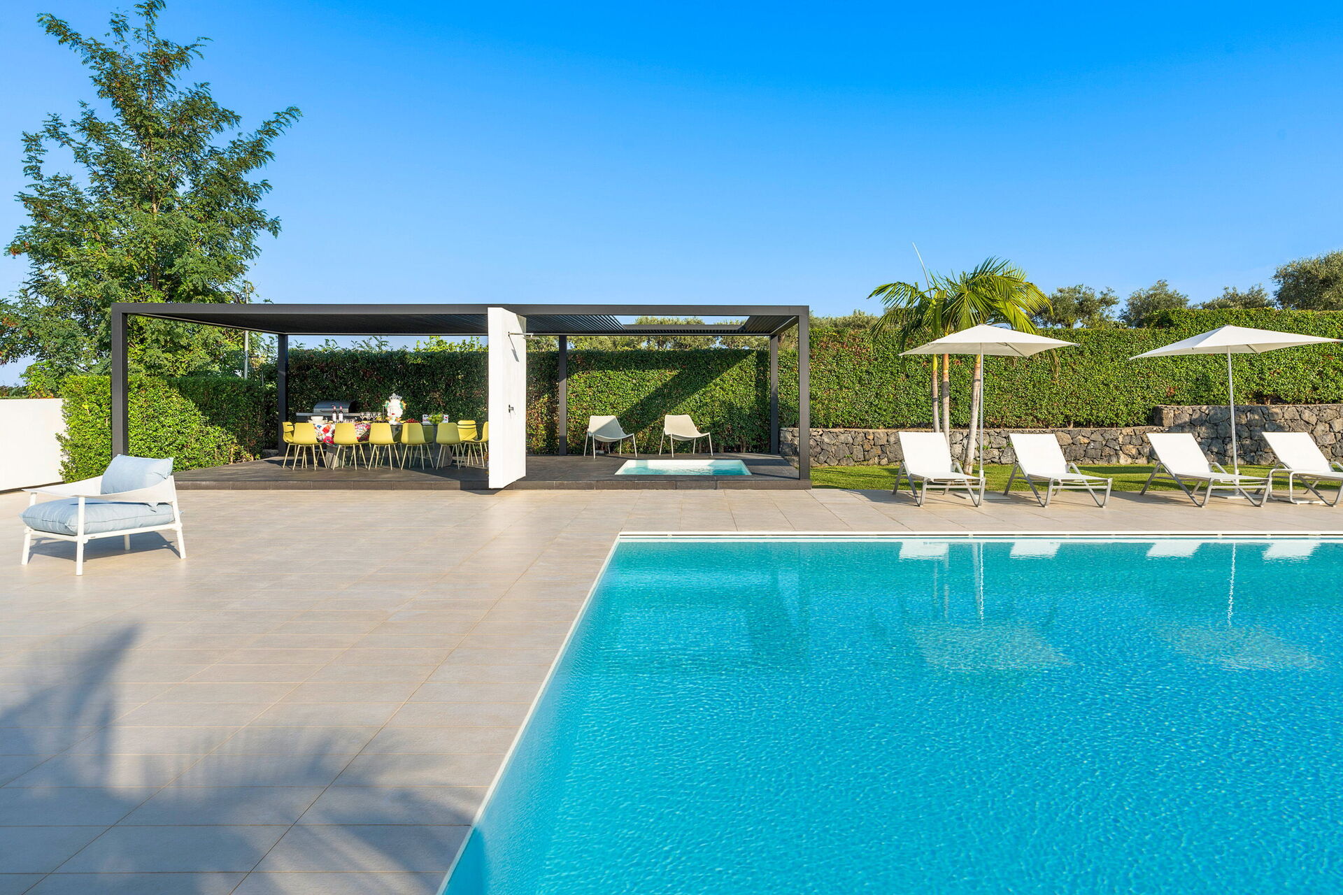Villa Greta is een luxe huurwoning met privé zwembad gelegen op Sicilië in de buurt van Taormina. Ideaal toevluchtsoord voor wie op zoek is naar een comfortabel, ontspannen verblijf. Deze accommodatie wordt omgeven door een prachtige tuin met gazon en biedt ruime terrassen en een groot zwembad.
