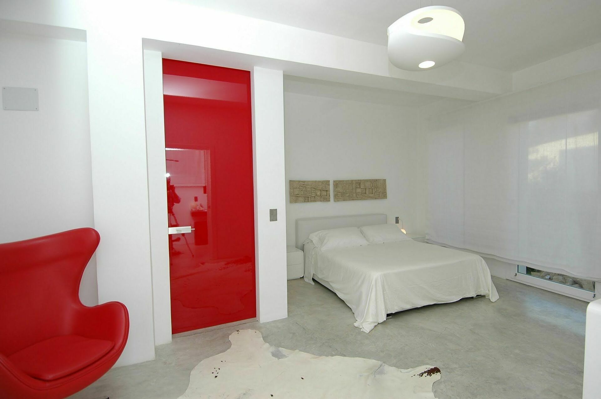 Deze vakantiewoning in modernistische stijl bevindt zich op één niveau en heeft een tuin rondom, terwijl de puur witte structuur onmiddellijk de aandacht van de bezoekers trekt.