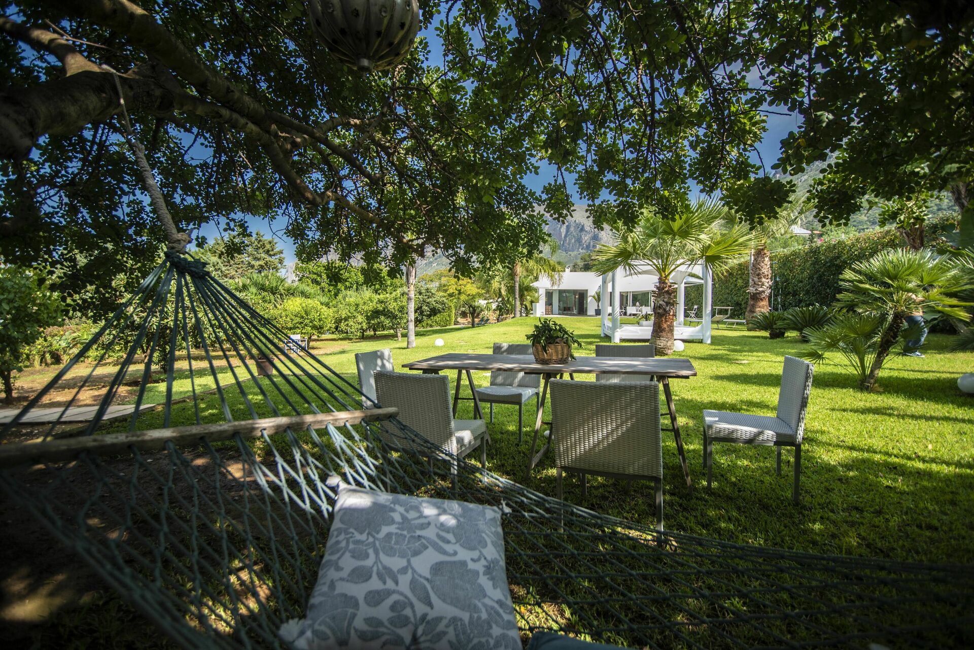 In een hoek van de tuin wordt de barbecueplaats omringd door de mediterrane maquis en in de eetkamer kunt u genieten van heerlijke Siciliaanse gerechten in direct contact met de natuur.