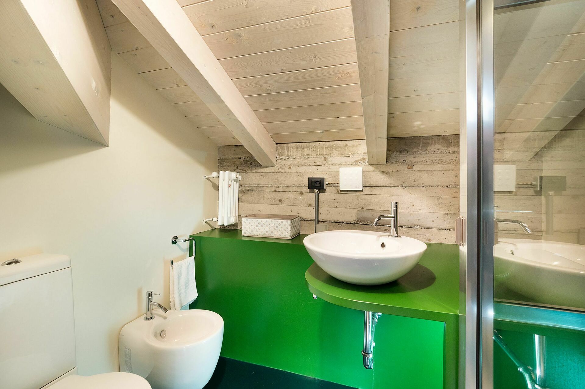 Begane grond: 1 suite met tweepersoonsbed (op de zolder) en eenpersoonsslaapbank, 1 badkamer met douche.