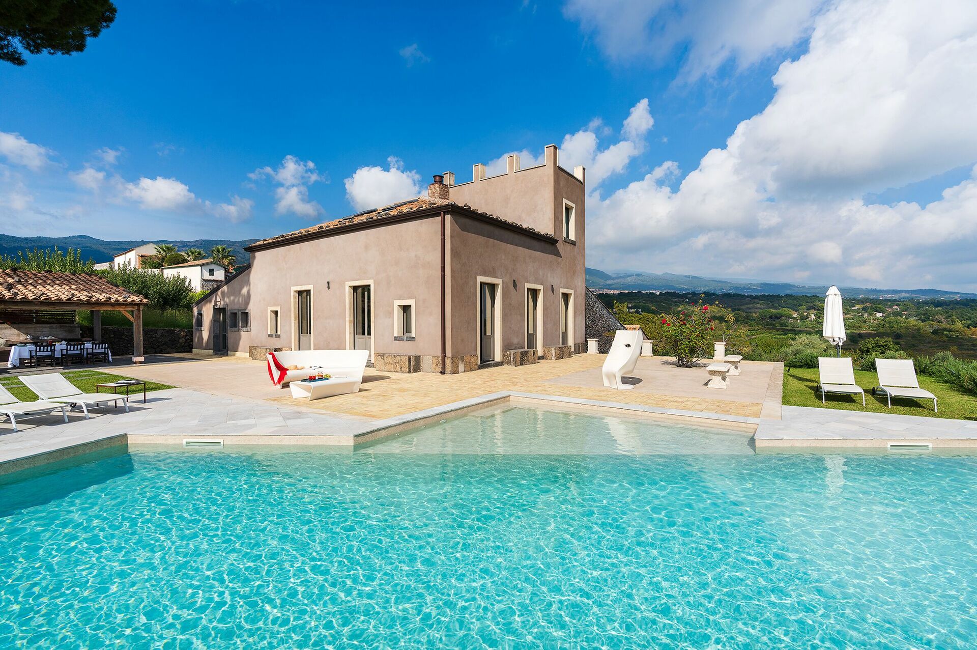 Villa Torre Etnea is een oude landelijke boerderij die onlangs is gerestaureerd en omgebouwd tot een fantastische privéwoning. Omlijst door de unieke natuurlijke omgeving van de Etna met zijn wijngaarden, boomgaarden en lage stenen muren, beschikt het pand over een geweldig zoutwaterzwembad met panoramisch uitzicht, grote en goed uitgeruste terrassen, een prachtige tuin met aromatische planten en een prachtige spa met jacuzzi, Turks bad, sauna, belevingsdouche en zoutgrot.