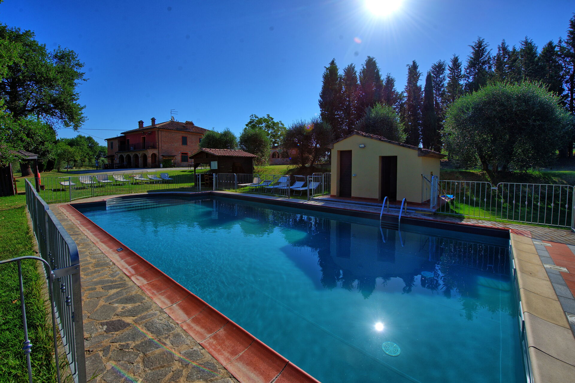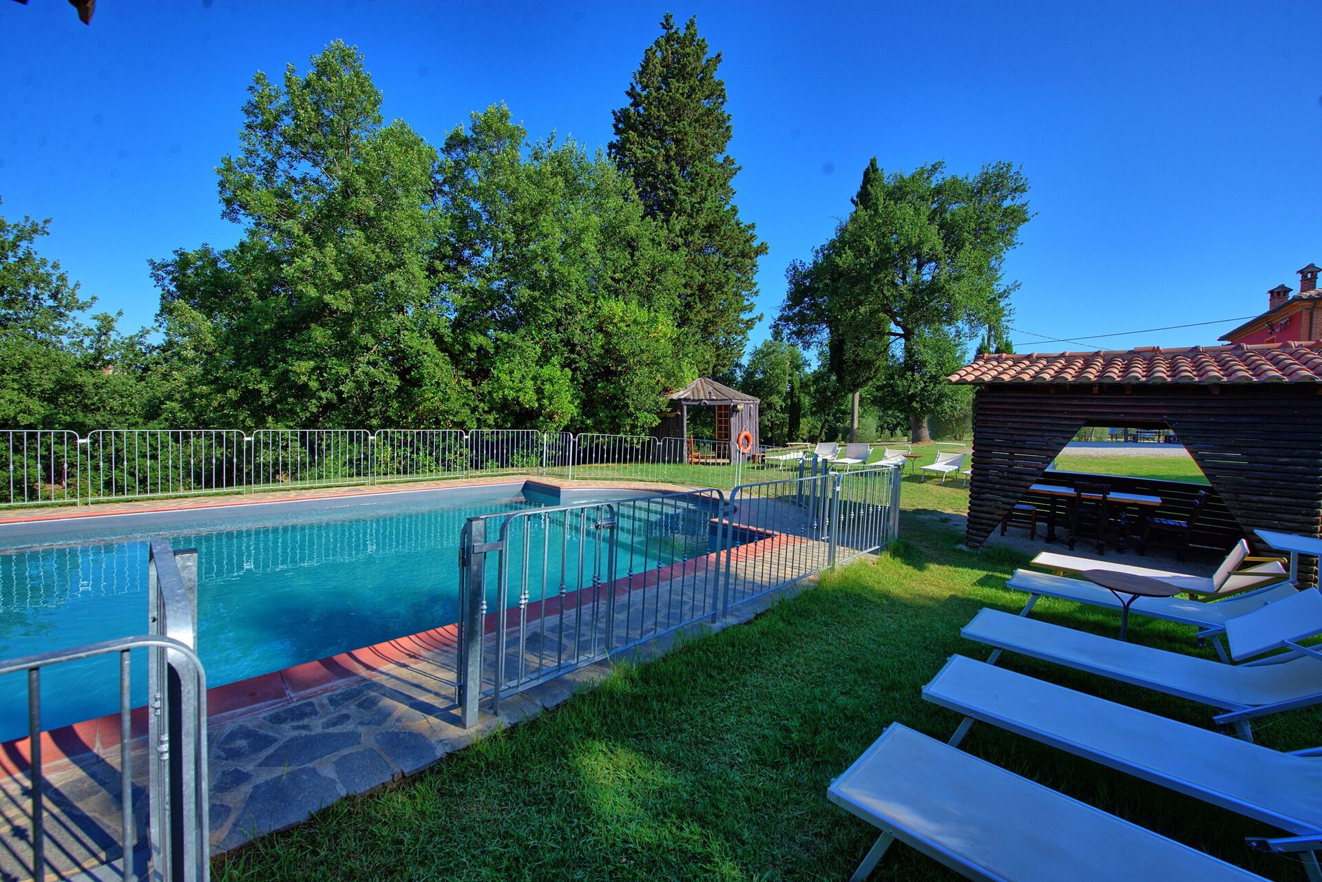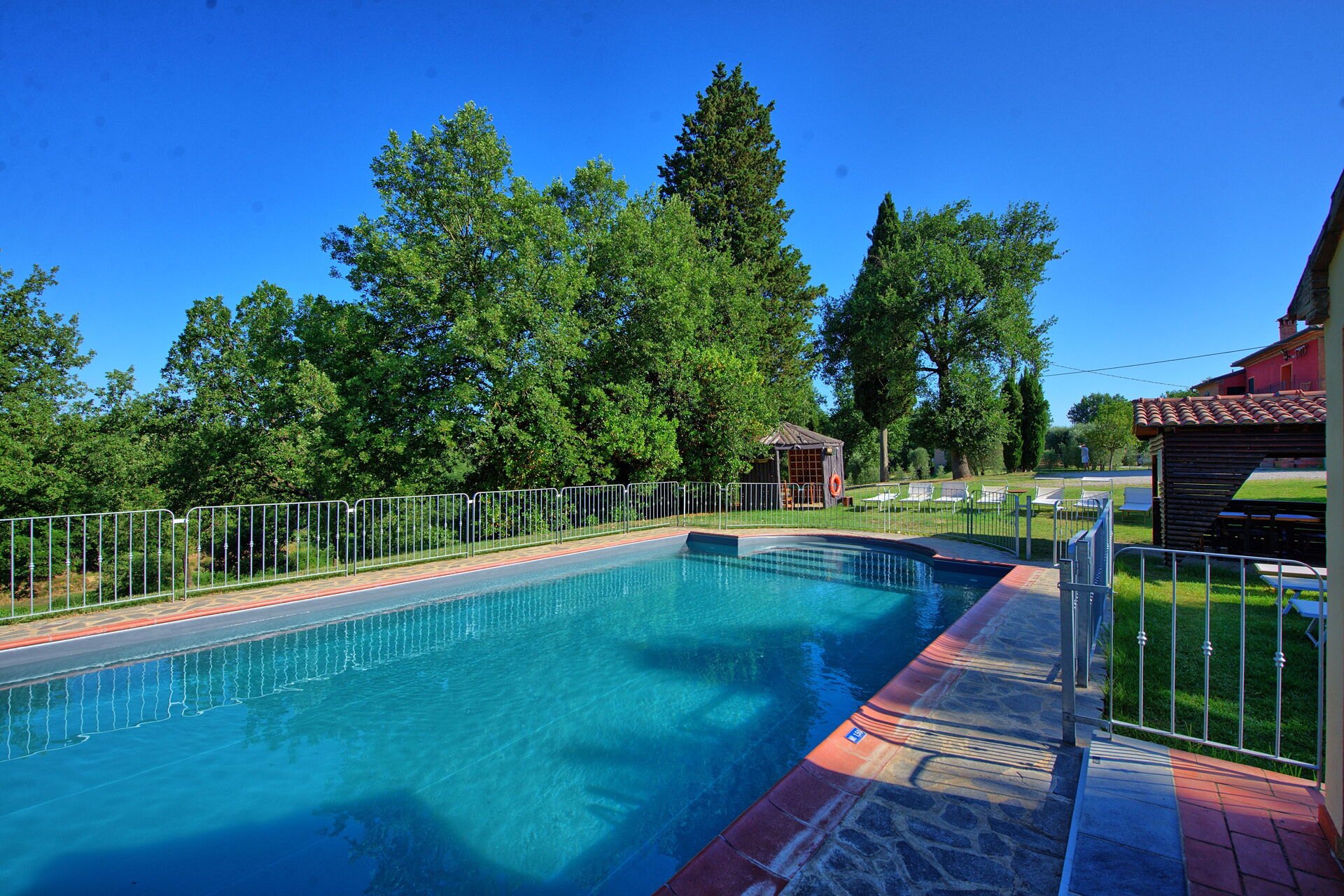 Piscina bellissima e giardino curato.