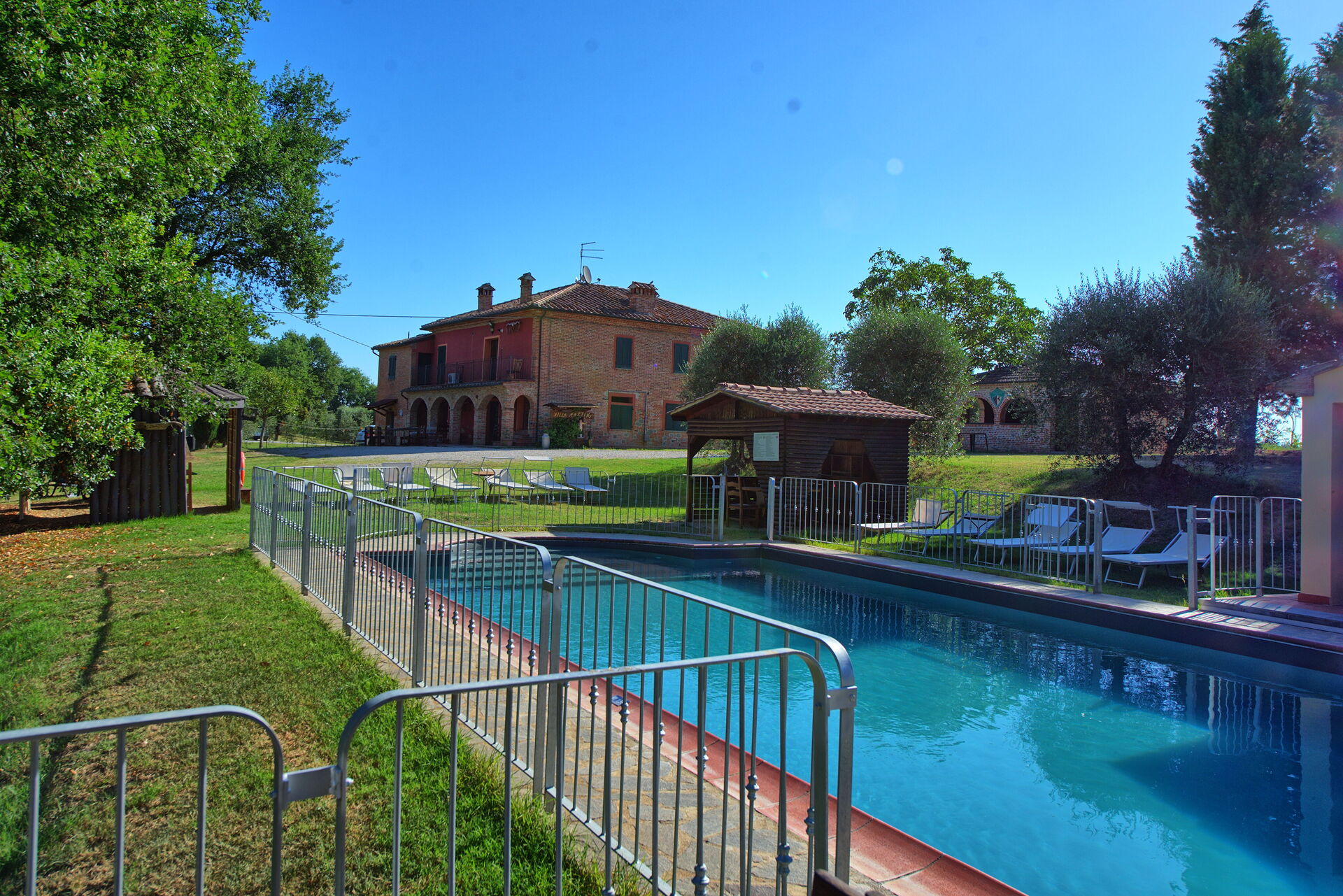 eravamo 16... casa perfetta per ritrovarsi con gli amici e condividere una esperienza nella campagna toscana.... grande camino con cucina e salone... il biliardino che ci ha fatto divertire, il ping pong vicino alla piscina. il grande giardino e la posizione splendida. siamo stati a Lucignano a piedi ed a Marciano ... posti stupendi. E' una vera casa di campagna